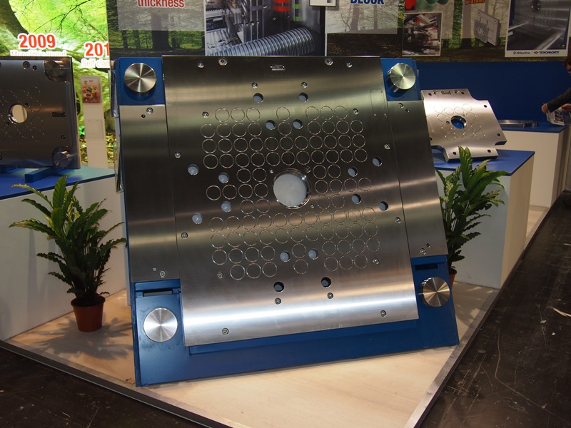 8. Для удобства пользования экран сенсорного управления теперь 10,5 дюйма. Новинки от Piovan: 9. Настоящий прорыв сделал Piovan в области весового дозирования - новая, и по-настоящему инновационная конструкция весовых дозаторов серии Quantum позволяют значительно быстрее очищать дозатор, не оставляя ни гранулы материала, запатентованный дизайн смесителя стопроцентно перемешивает материал. 10. Техномагнете представила очередную новинку - магнитные плиты нового поколения PressTec Grip. Они не только с той же большой силой крепят пресс-формы, но обладают функцией самофиксации на плитах ТПА при помощи магнитного контура, создаваемого на тыльной стороне новых магнитных плит. При этом толщина плит снижена до 37 мм - непревзойдённый результат. Поэтому с плитами PressTec Grip достигается ещё более жёсткое крепление к термопластавтомату. Поверхность магнитных плит Tecnomagnete тардиционно монолитная без латунных вставок или эпокстидной смолы.