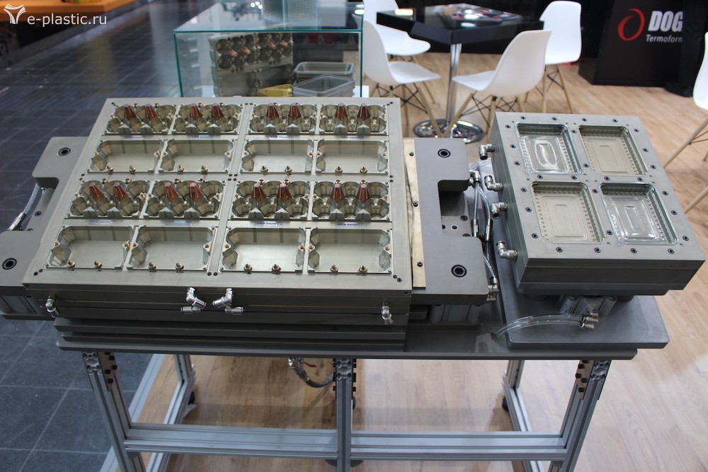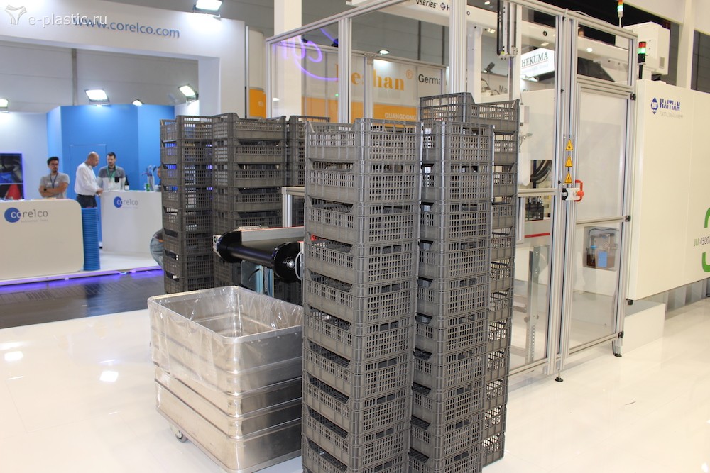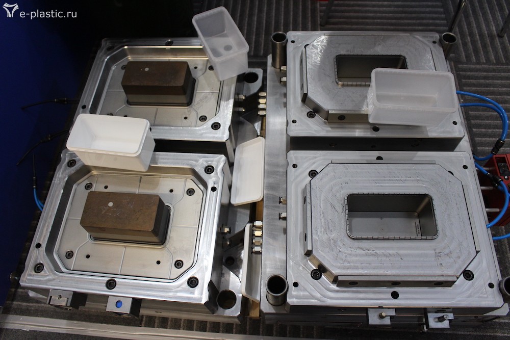 Ящики от Хатьян. "ТПА без особенностей, покрывающий 98% потребностей в литье". У Энгель Ящики от Хайдлмаера остывают и усаживаются на четырехгнездной матрице, далее штабелируются KUKA Порционная тарелка от Tederic (вверх ногами)))