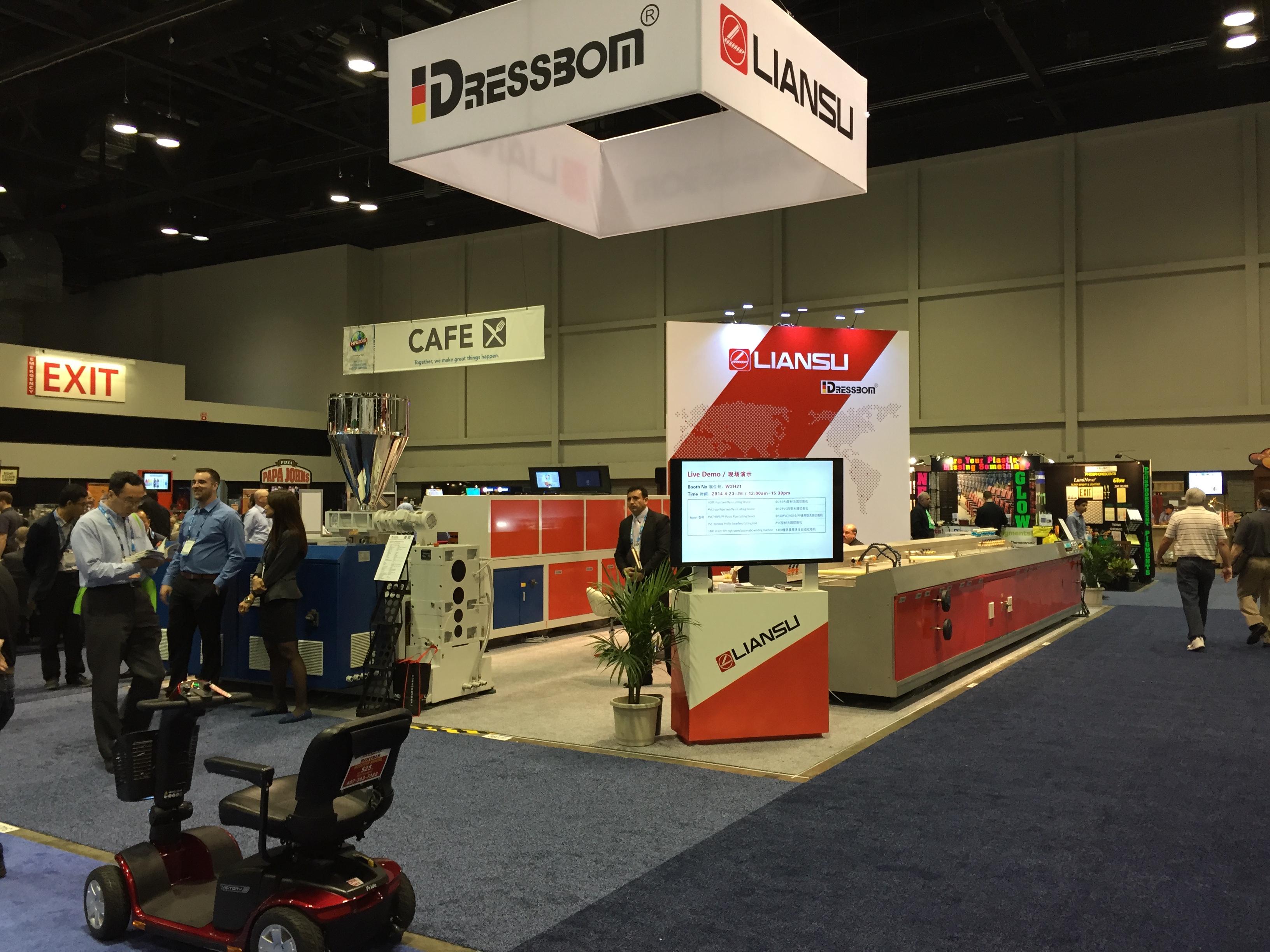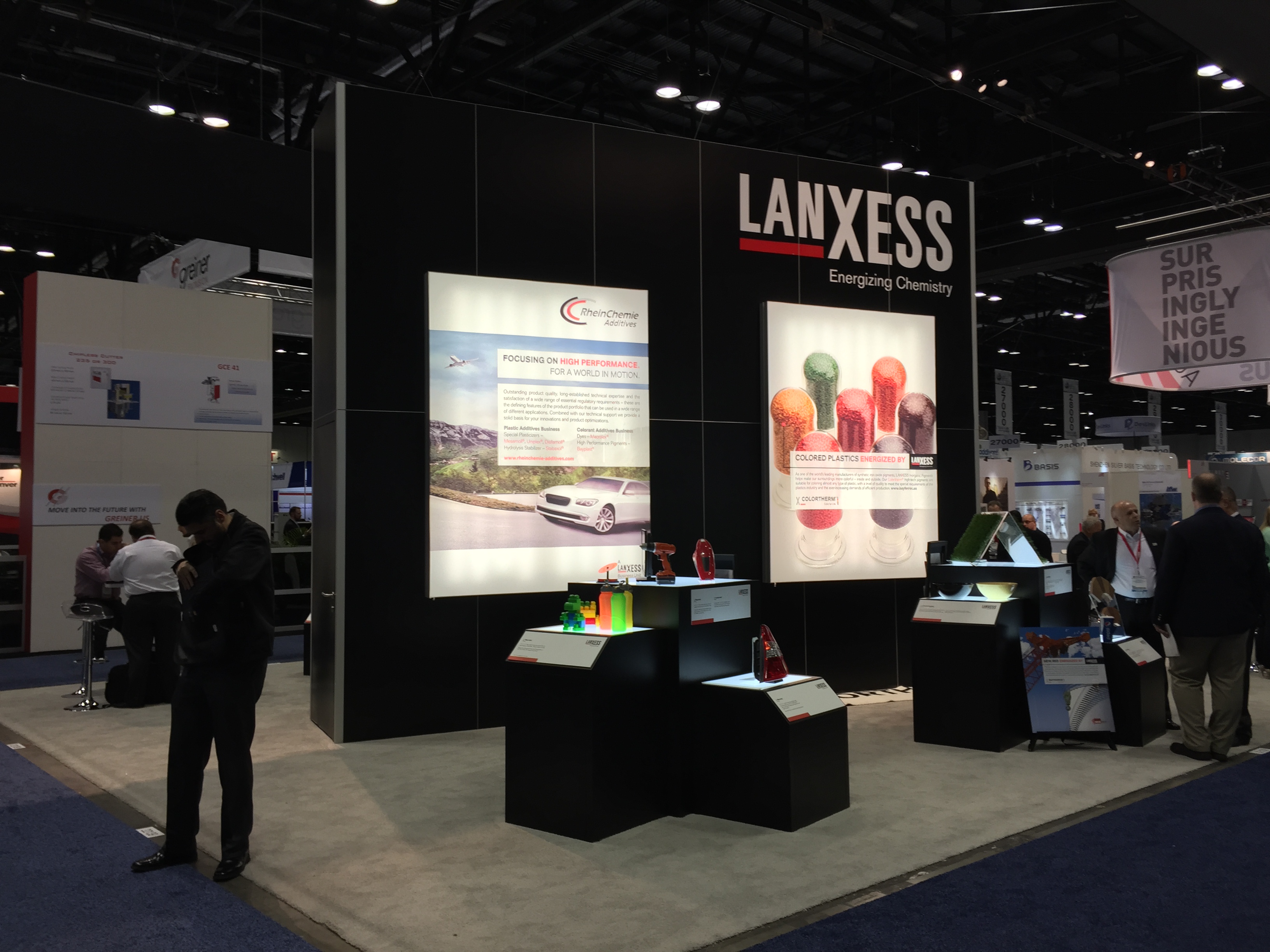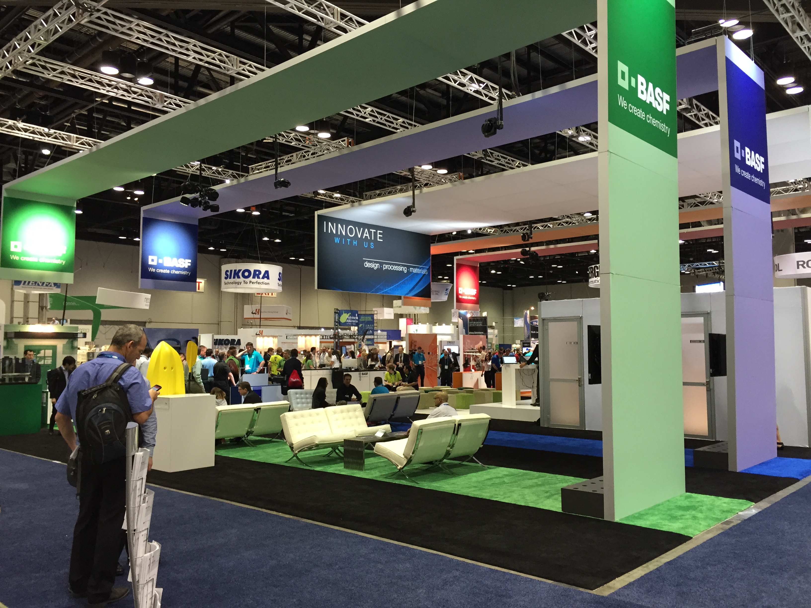 Еще одной особенностью выставки в Орландо стало незначительное участие производителей сырья, его компонентов, аддитивов, красителей и т.п. Неизвестно, с чем это связано, видимо с особенность местного рынка, где все на виду, но сырьевые компании заняли меньшую часть Южного павильона, а в общей массе их долю можно оценить едва ли в 20%. Как мы и предполагали, следов российских сырьевиков, на американской выставке, в отличии от Китая и Дюссельдорфа, обнаружить не удалось. Хотя мировые лидеры, безусловно были, большой стенд, как всегда выстроил BASF, люди из Stirolution были везде, даже соседями автора по автобусу, а компания Dow на домашней выставке открыла целый отдельный зал своих достижений. Еще удивила компания Braskem, объявившая себя «мировым лидером в термопластах», чего мы не можем ни подтвердить, ни опровергнуть.