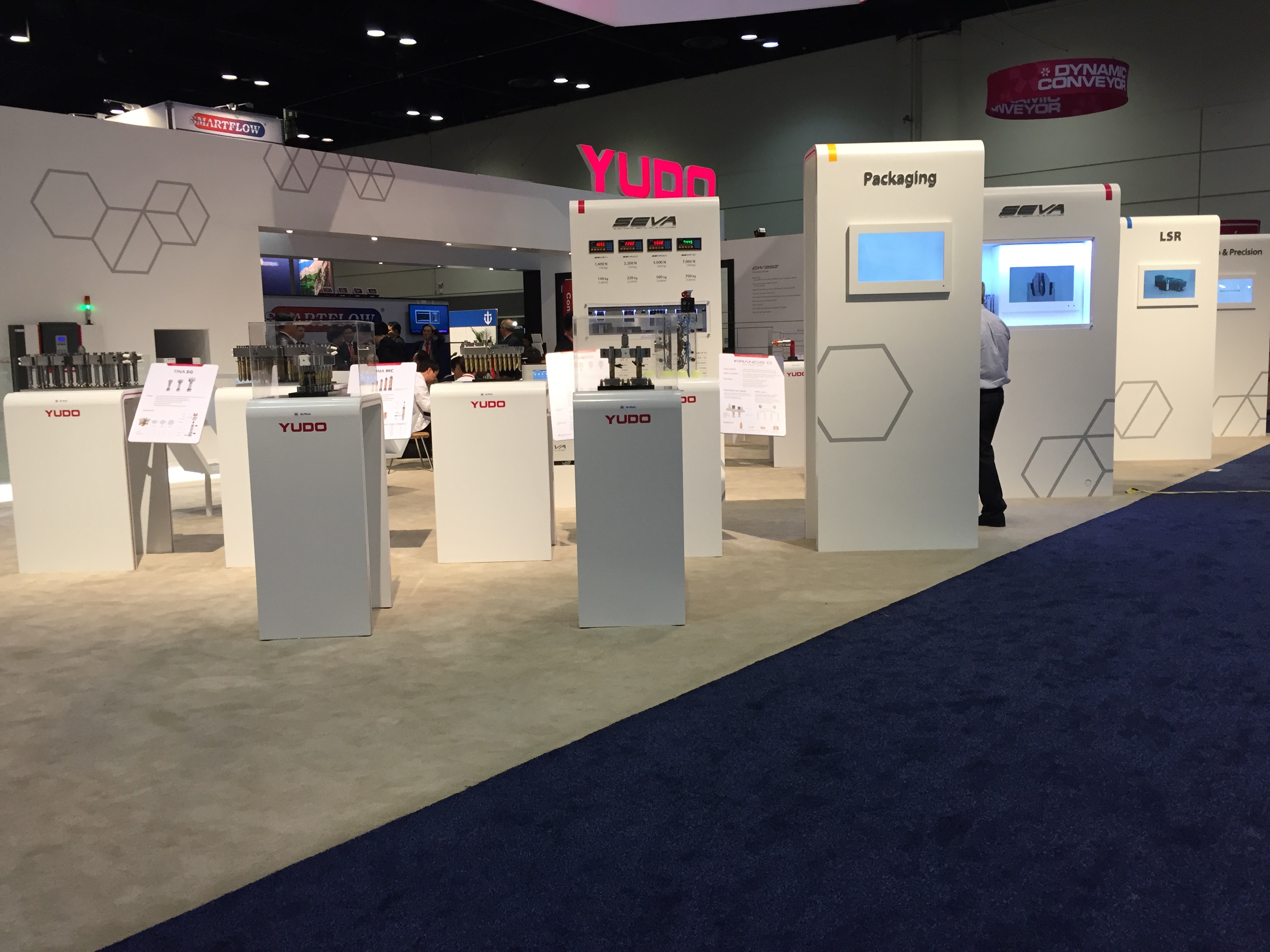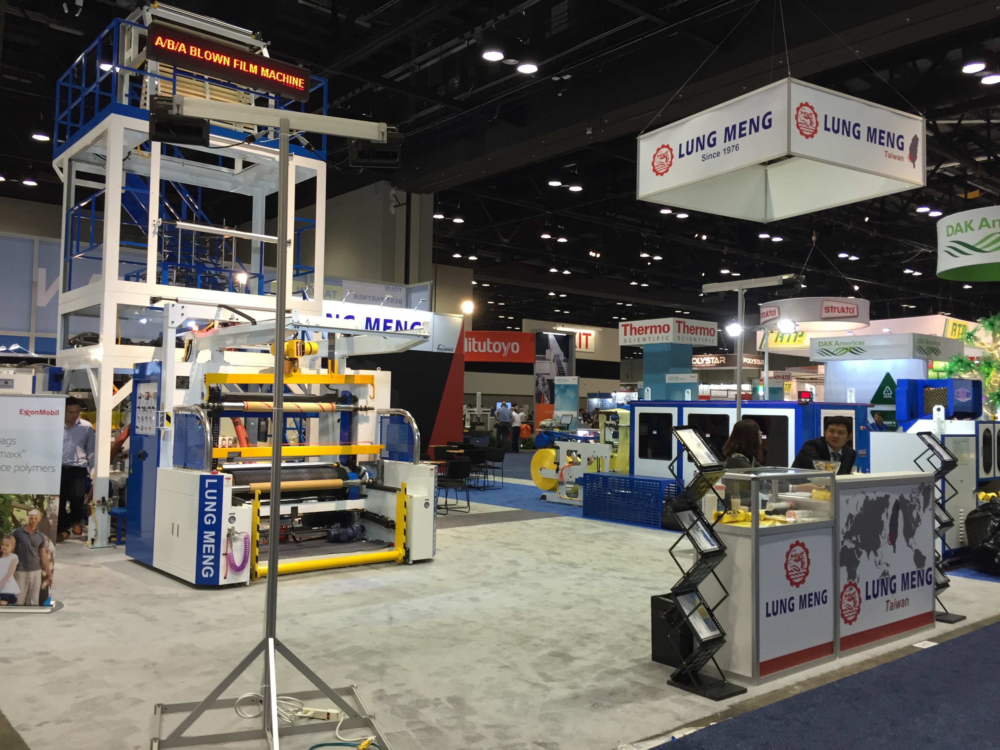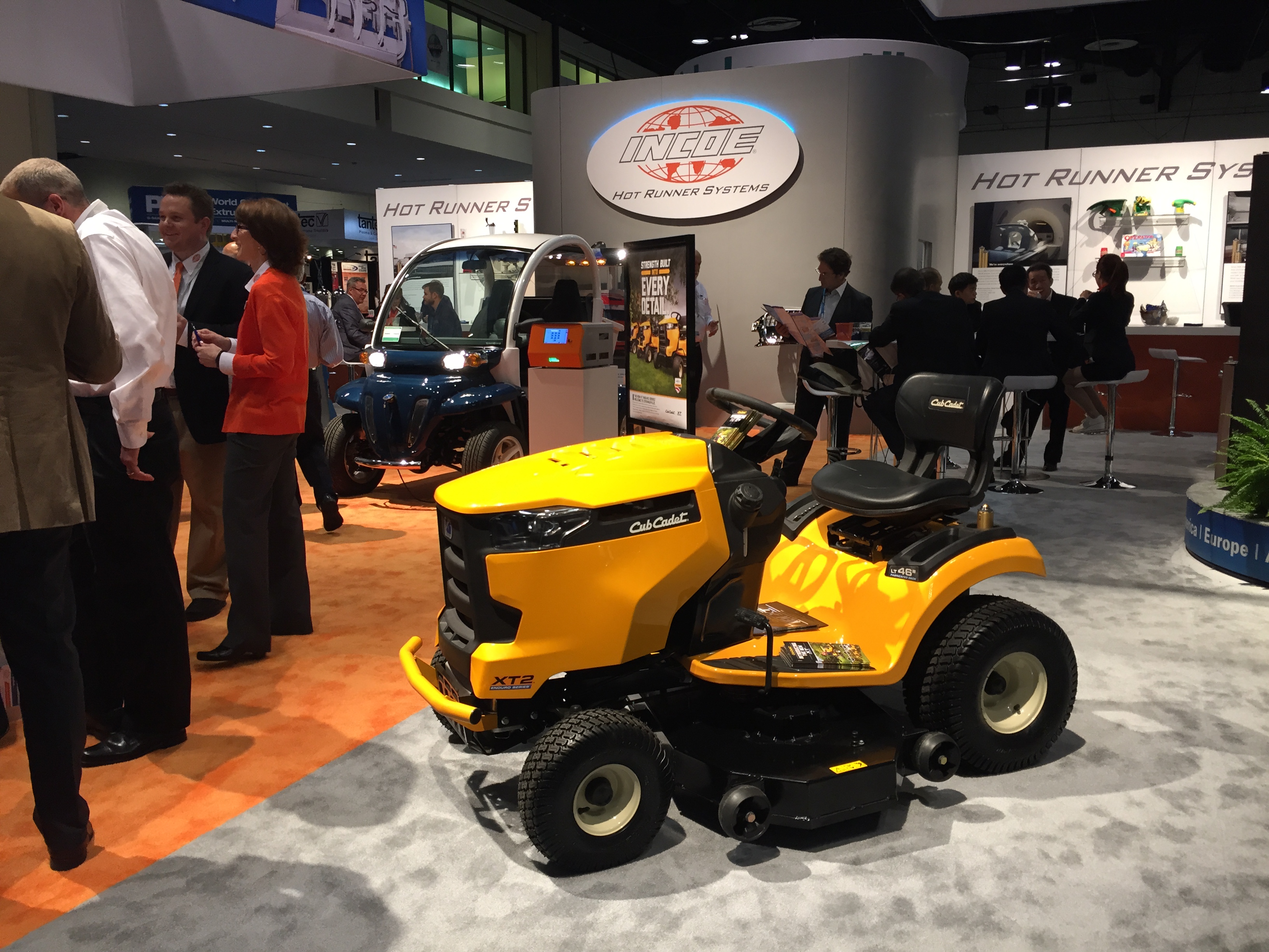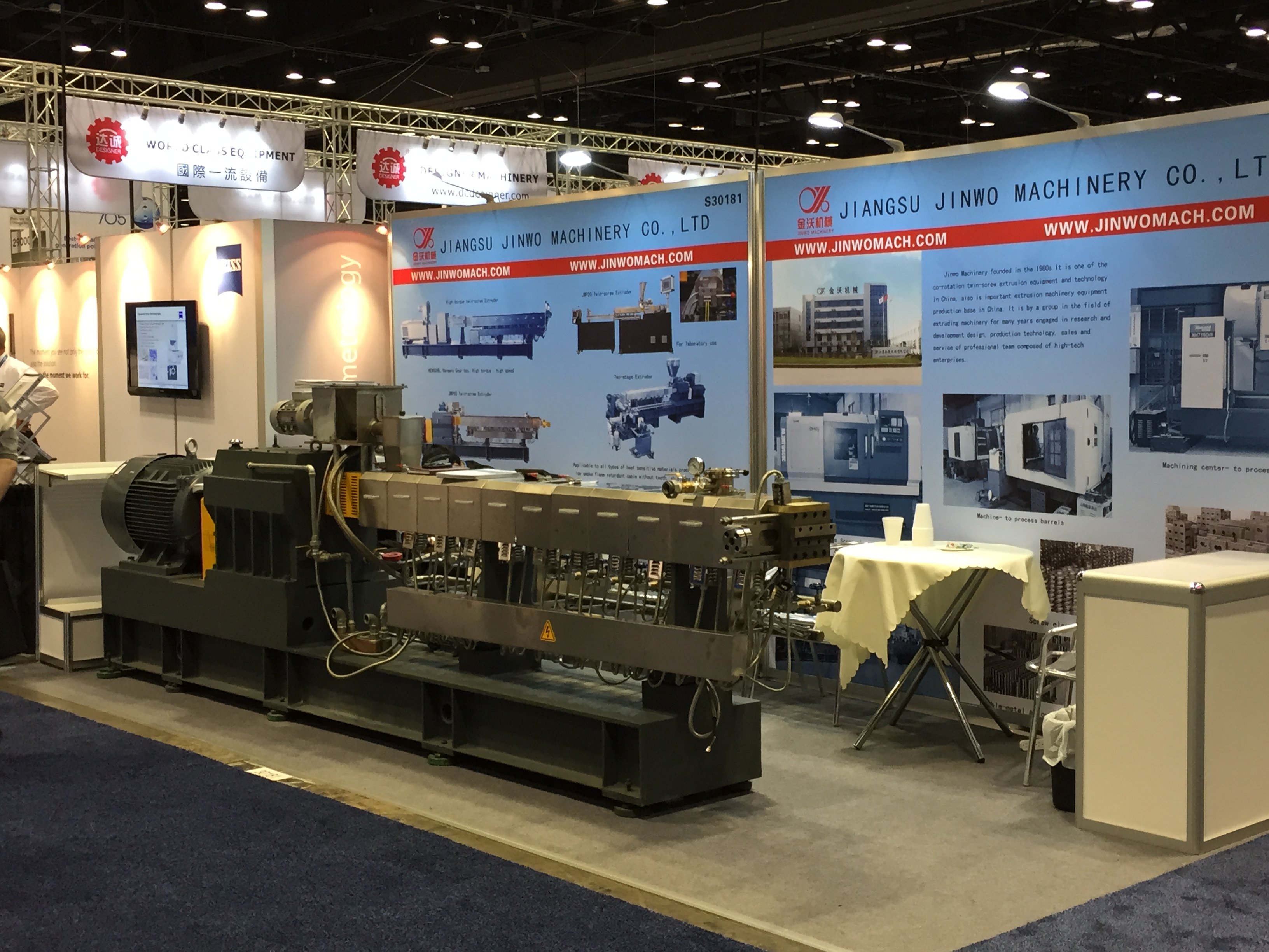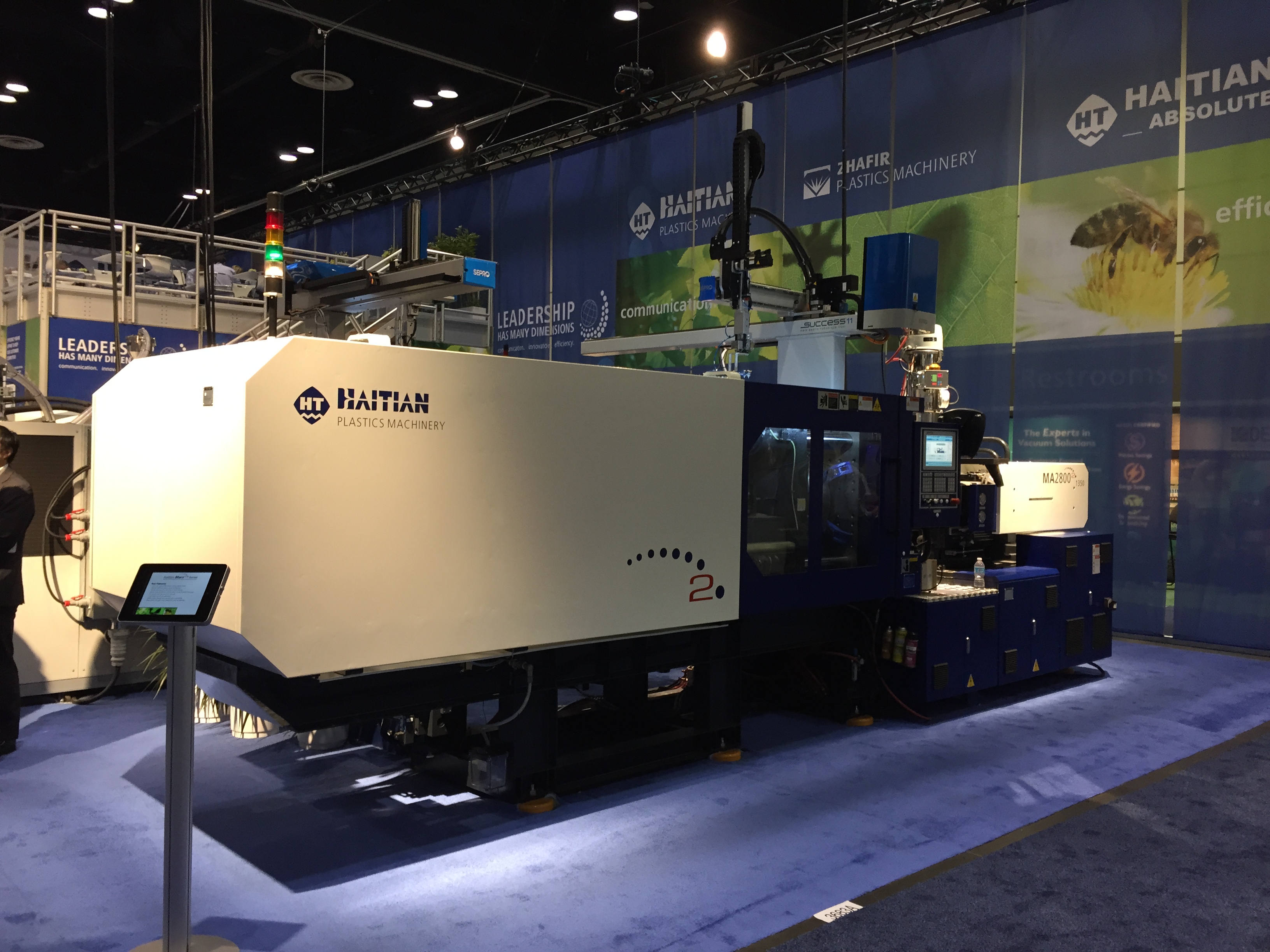 Вообще, системы для литья ПЭТ являются одной их изюминок выставки NPE. Не только признанные лидеры Husky, SIPA, но и некоторые американские компании и даже итальянская Sacmi показали свои большие линии по выпуску преформ. А вот китайцы ничего подобного не привезли. Слабое представительство китайских компаний, как в литье, так и в экструзии, и во всем остальном – еще одна особенность выставки NPE. Взглянув в каталог, можно увидеть множество китайских названий, но стенды их, как правило, маленькие и без оборудования. Даже такие монстры, как Haitian в литье и Liansu, Jwell в экструзии, выставились довольно скромно. Haitian (кстати вместе с Zhafir) на стенде своего агента (! – да у них нет своего представительства в США) разместил несколько машин, но ни одной новинки, всё известное еще с Chinaplas2014 и K2013. Однако господин Франц (старший) присутствовал и бойко раздавал интервью. Не так много было и производителей оснастки – экструзионщики вообще затерялись, а местных производителей литьевых форм успешно вытеснили европейцы из Португалии, Германии и Италии (евро-то нынче дешев!) и китайцы с тайваньцами. Из производителей горячеканальных систем бал правили местные компании, вроде Incoe, Synventive, ну и мировой лидер YUDO из Кореи, куда же без нее.