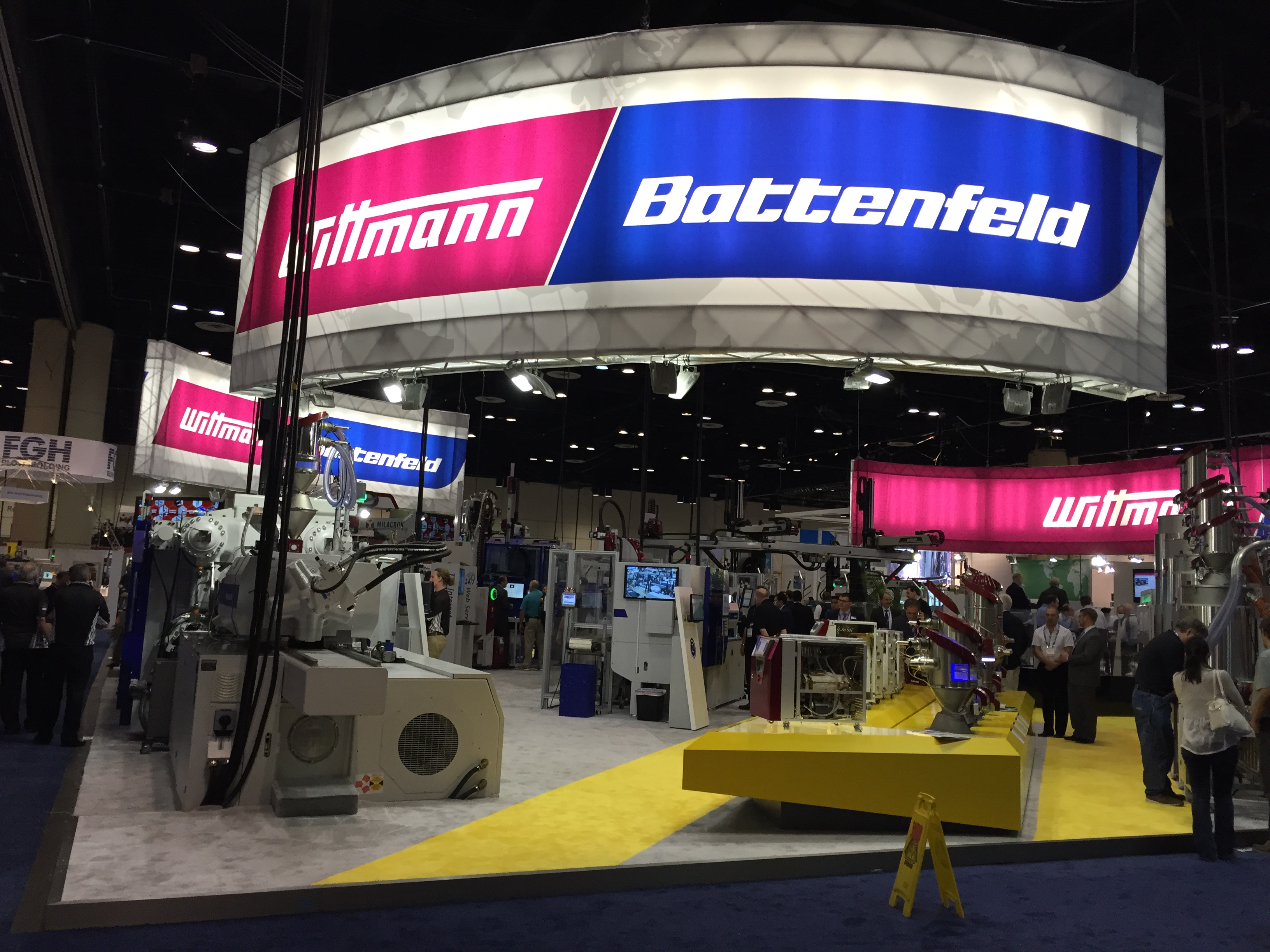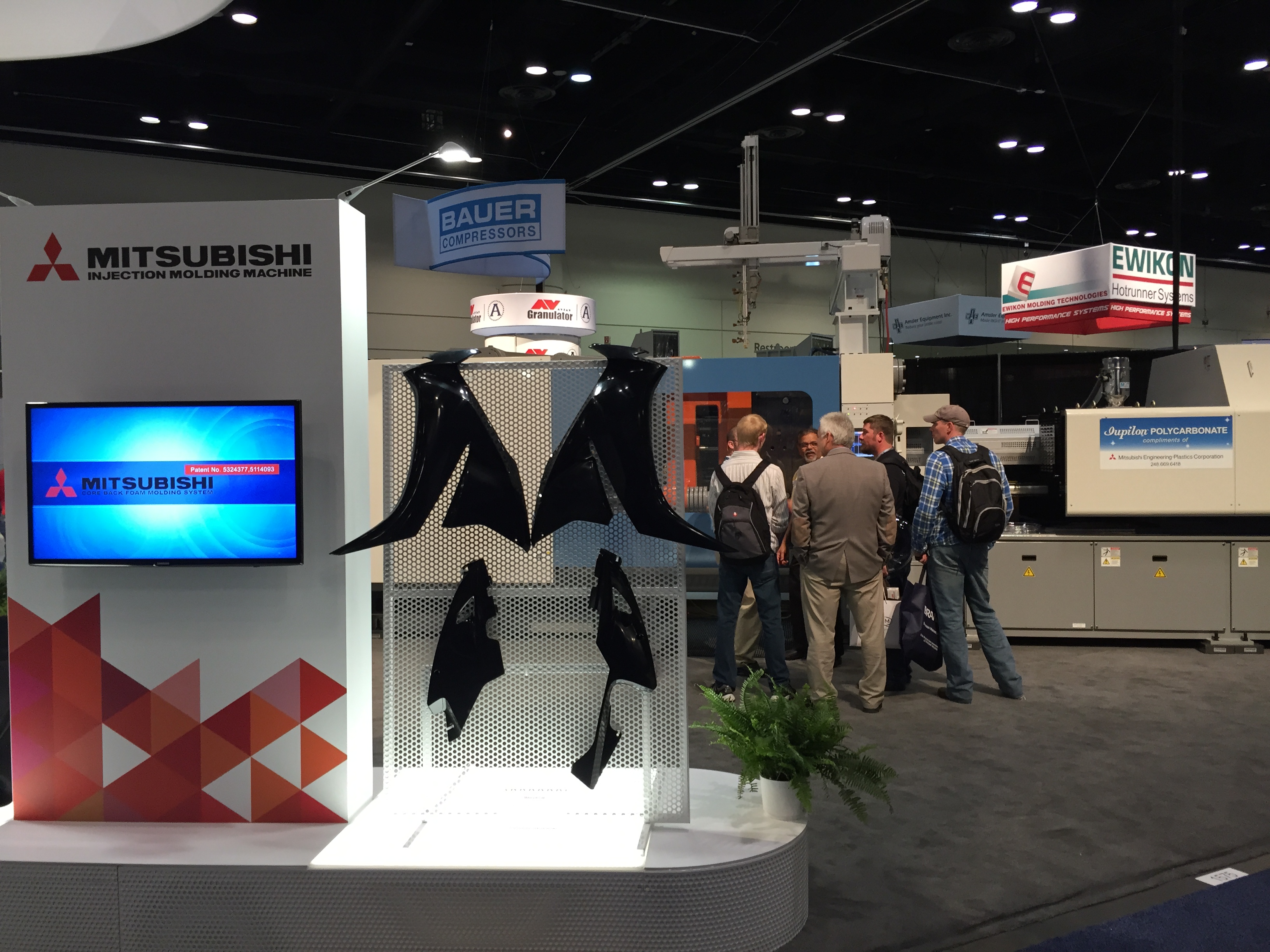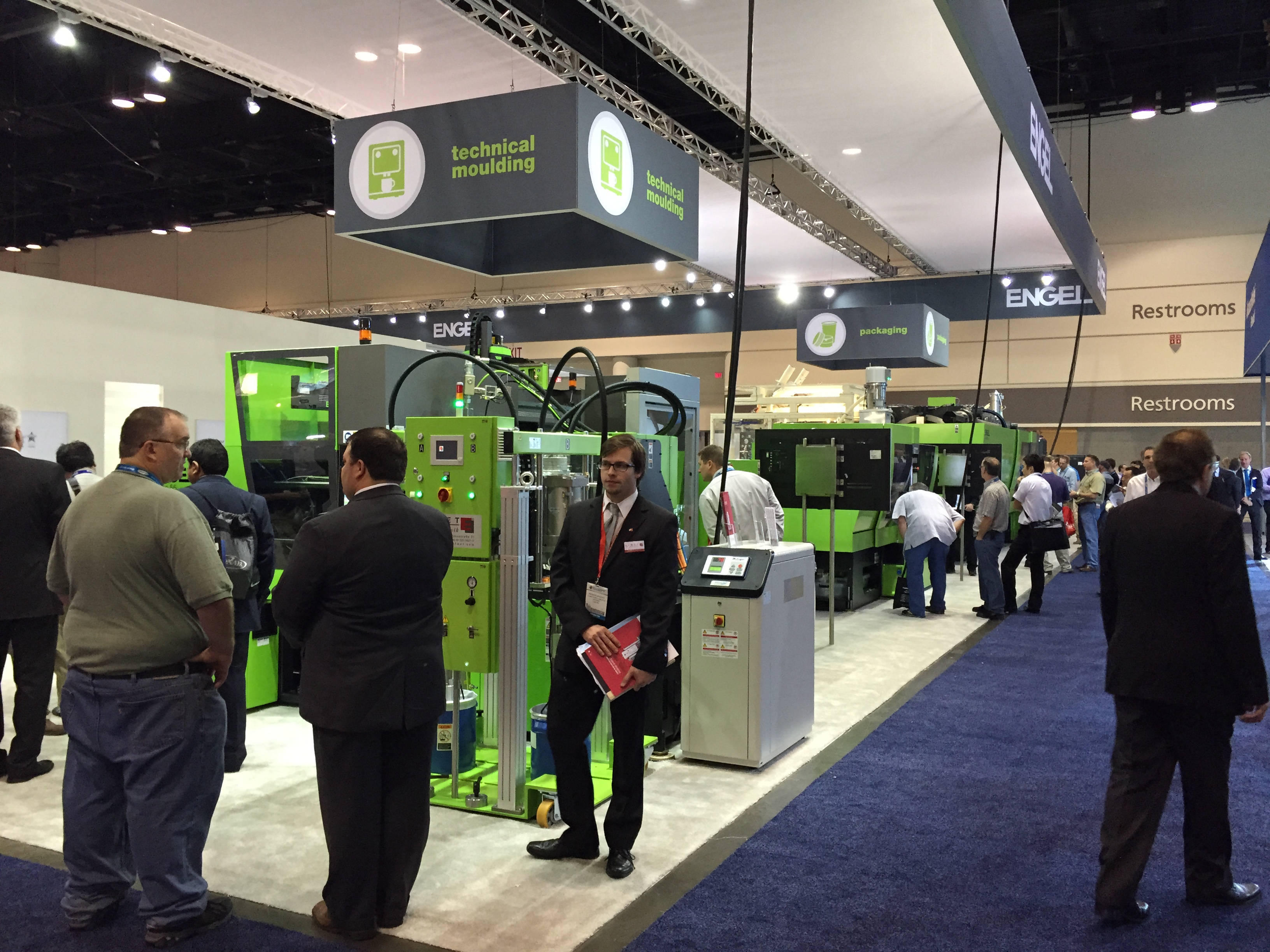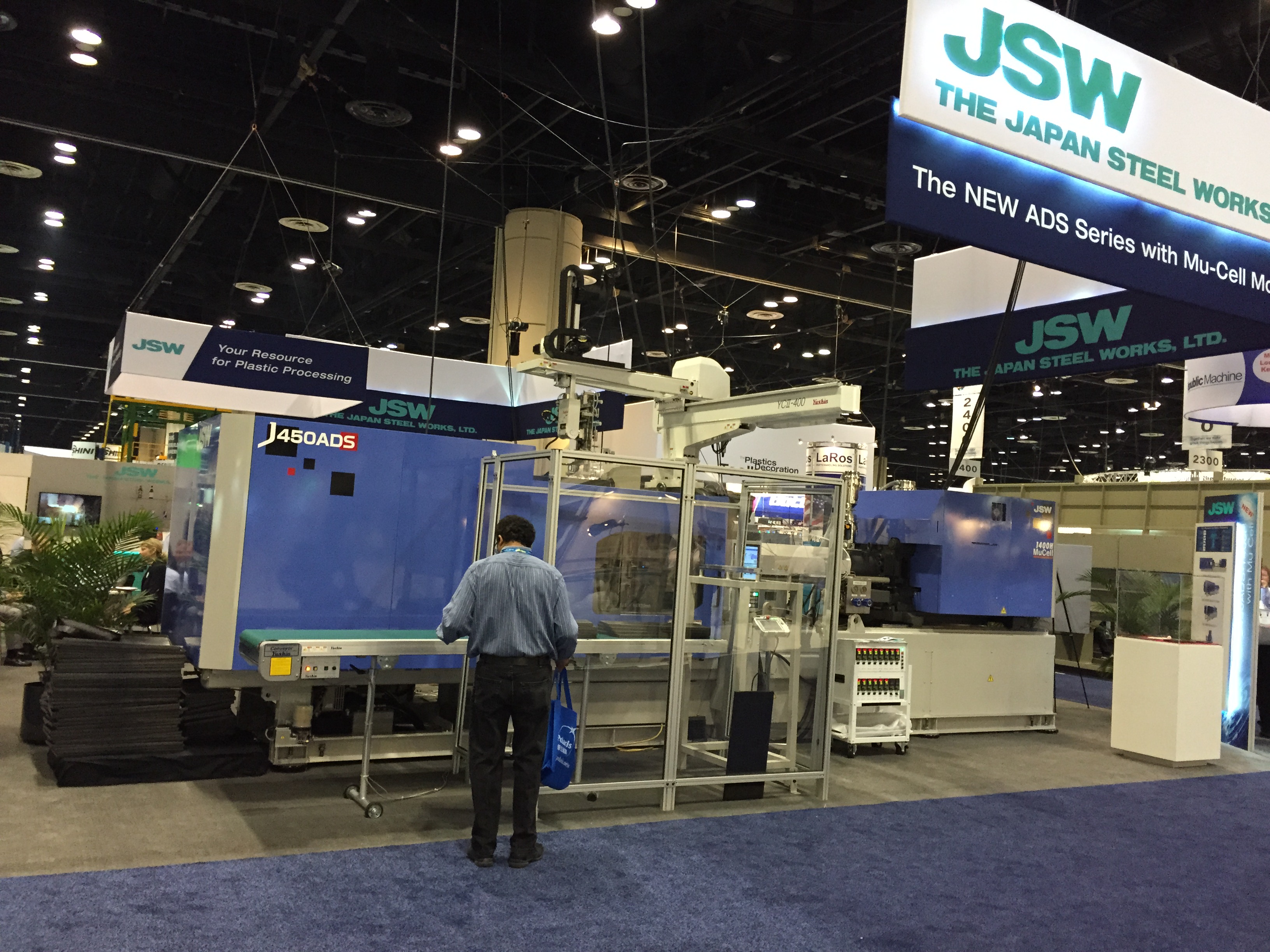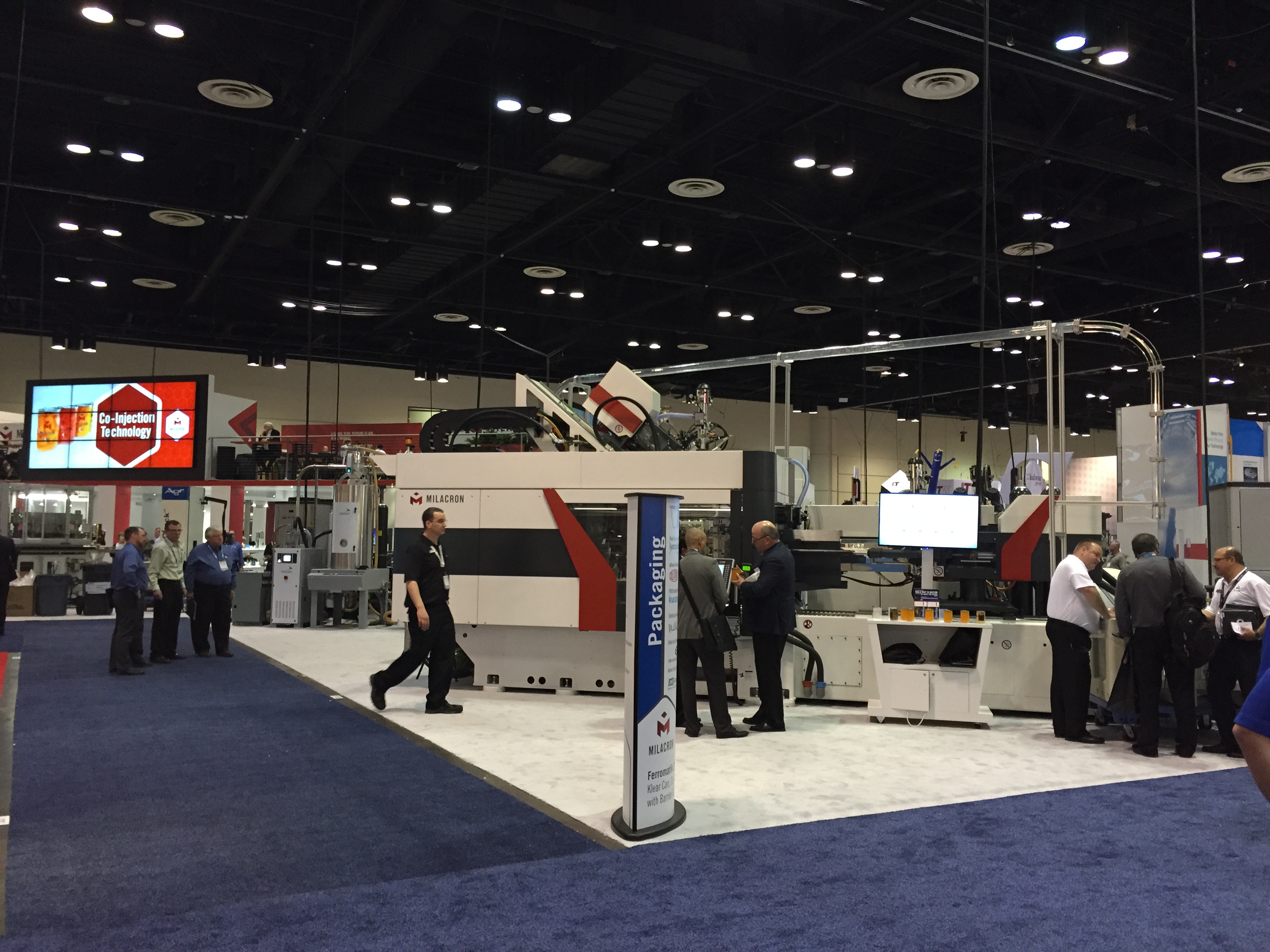 Наполнение выставки NPE в корне отличается от российских аналогов. Во-первых очень, ну очень много оборудования. Есть и гигантские машины, многослойные пленочные линии, ТПА со смыканием в 500-1000 тонн вполне себе норма. Бросается в глаза, что как минимум половина участвующих компаний неизвестна у нас (нам неизвестна, уважаемые читатели, конечно, знают побольше). Кто бы мог подумать, что Canon, знаменитая фотоаппаратами, принтерами и т.п. имеет серьезные интересы в пластиковой индустрии и выставила гигантский стенд на NPE. А гвоздем всей выставки, главным спонсором и ньюсмейкером стала американская компания Milacron, имеющая гигантский стенд в 25 000 кв.футов. Учитывая, что вся выставка чуть более 1 млн кв. футов, несложно вычислить, что стенд Милакрона занимает более 2% от всех выставочных площадей. Что в России и СНГ знают о компании Milacron? Знают, что она есть. Возможно, знают что она делает ТПА Ferromatik (вроде как до сих пор продает в РФ фирма «АБ Универсал», выдувные машины Uniloy (неизвестно кто продает), может быть слышали, что в холдинг с недавних пор входит DME (ее компоненты продают все подряд) и с новейшего времени – MoldMasters (известна благодаря компании «Портмолд»). Между тем, Милакрон делает удивительные, во многом не имеющие аналогов машины. Одна такая находится в компании «Ай-пласт» - льет вспененные изделия при низком давлении, множество по всему миру установлено бикомпонентных ТПА с одним шнеком типа «моносэндвич», разработанного в «нулевых» годах Милакроном. Сейчас американцы выходят с гиганскими системами для литья ПЭТ-преформ и многим чем другим, и уж на местном рынке точно потеснят конкурентов.