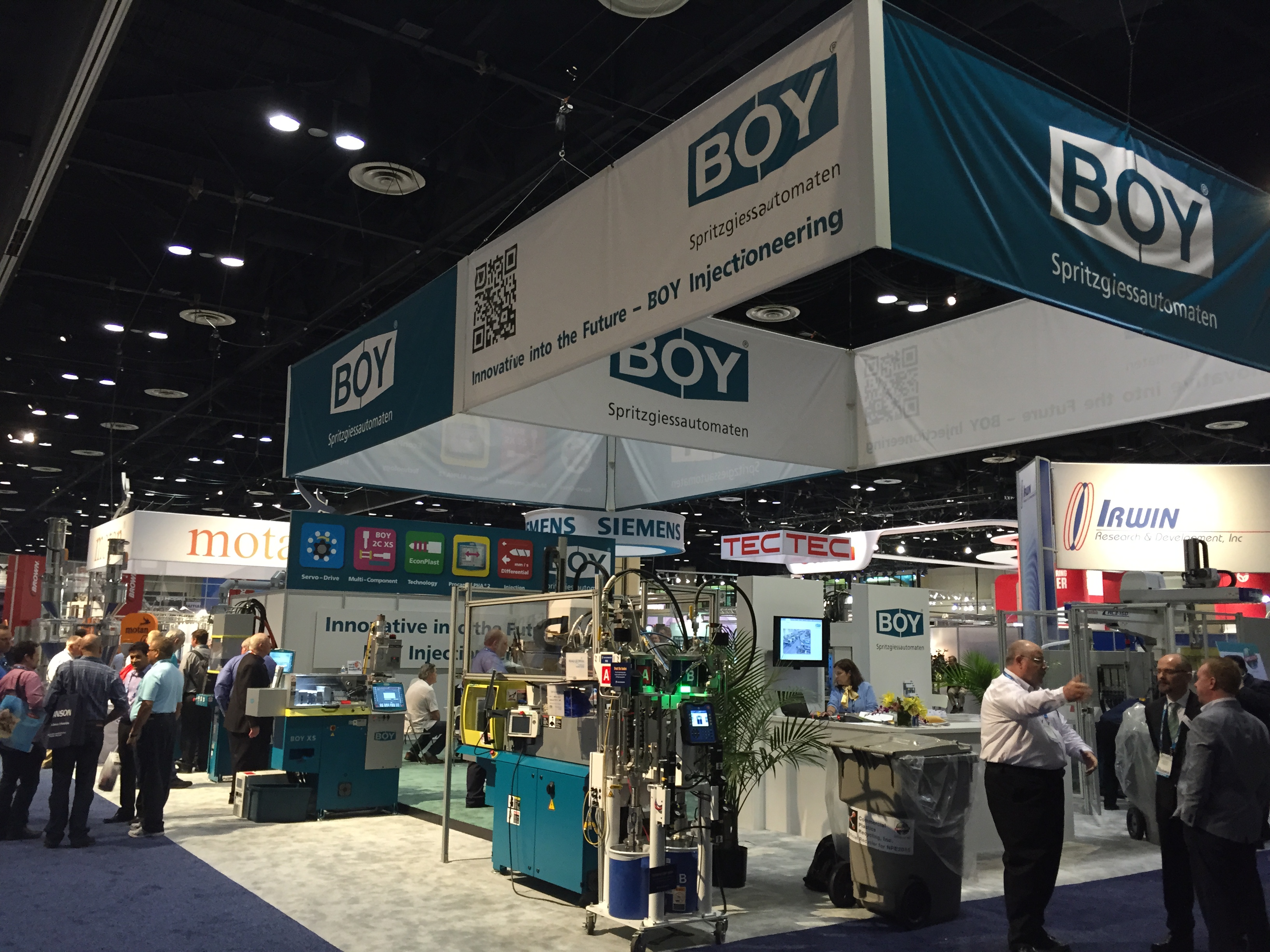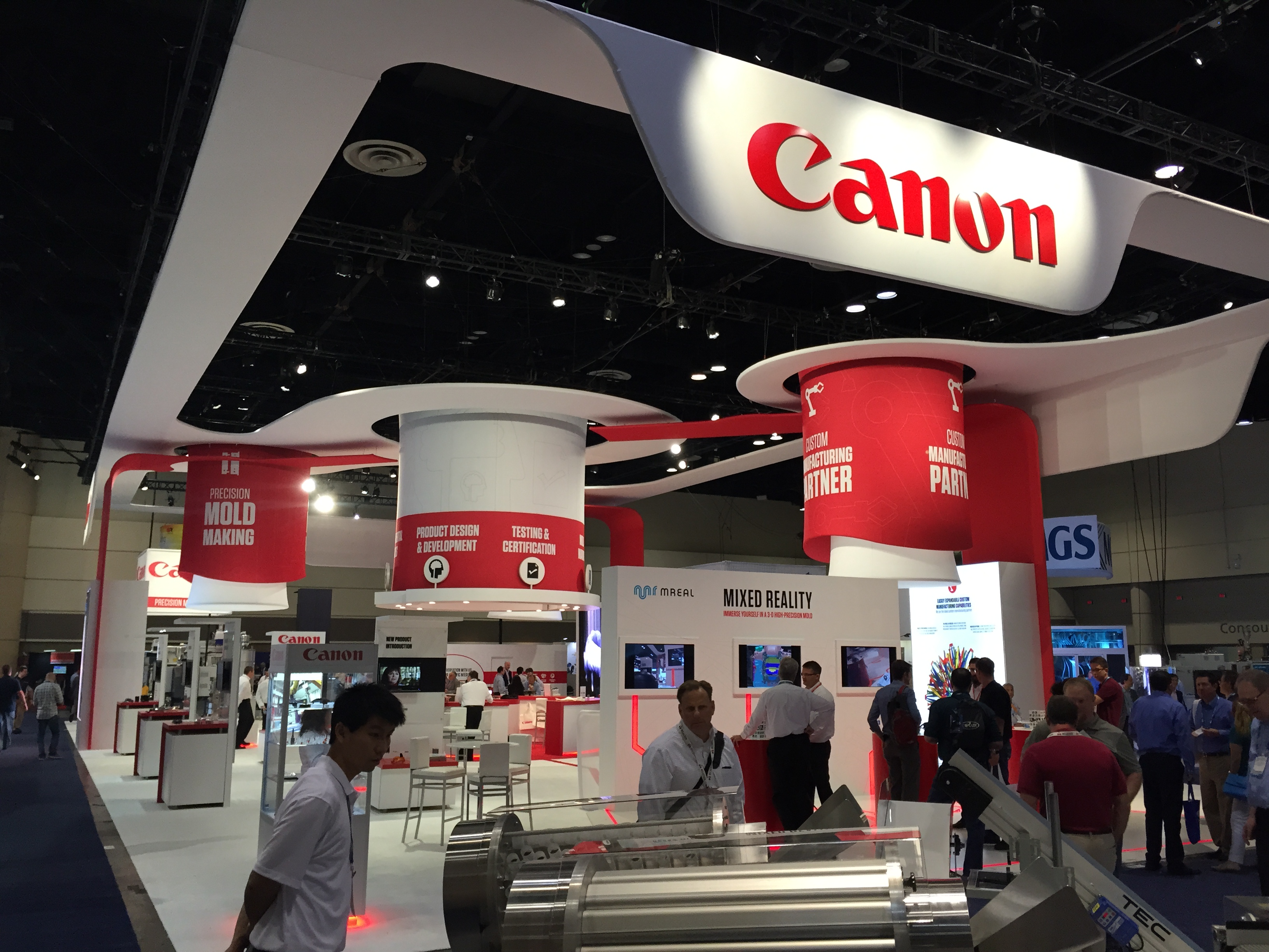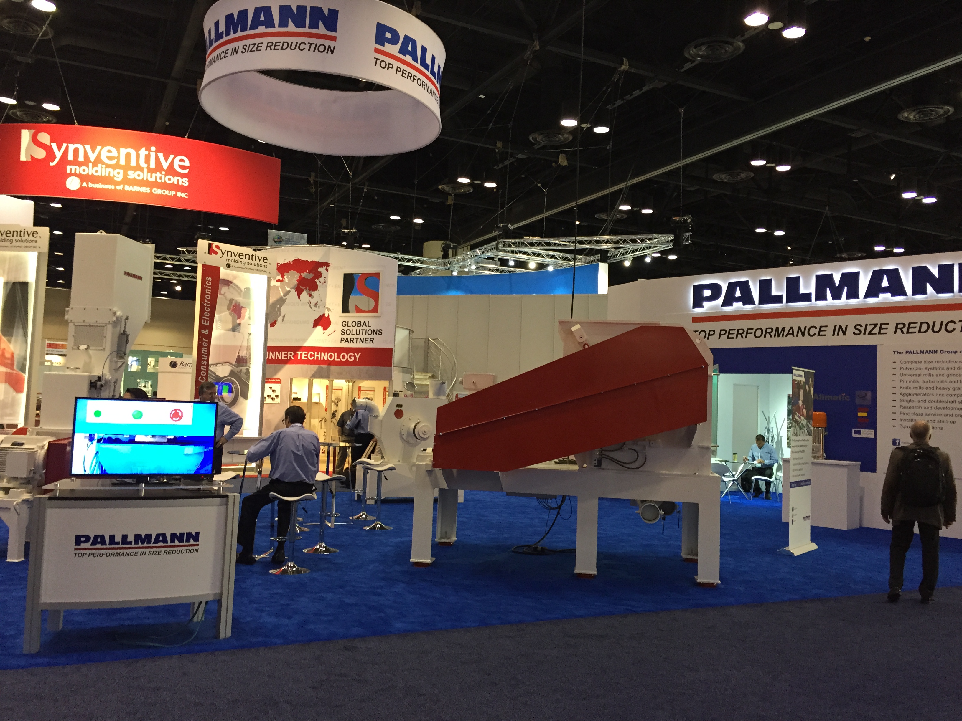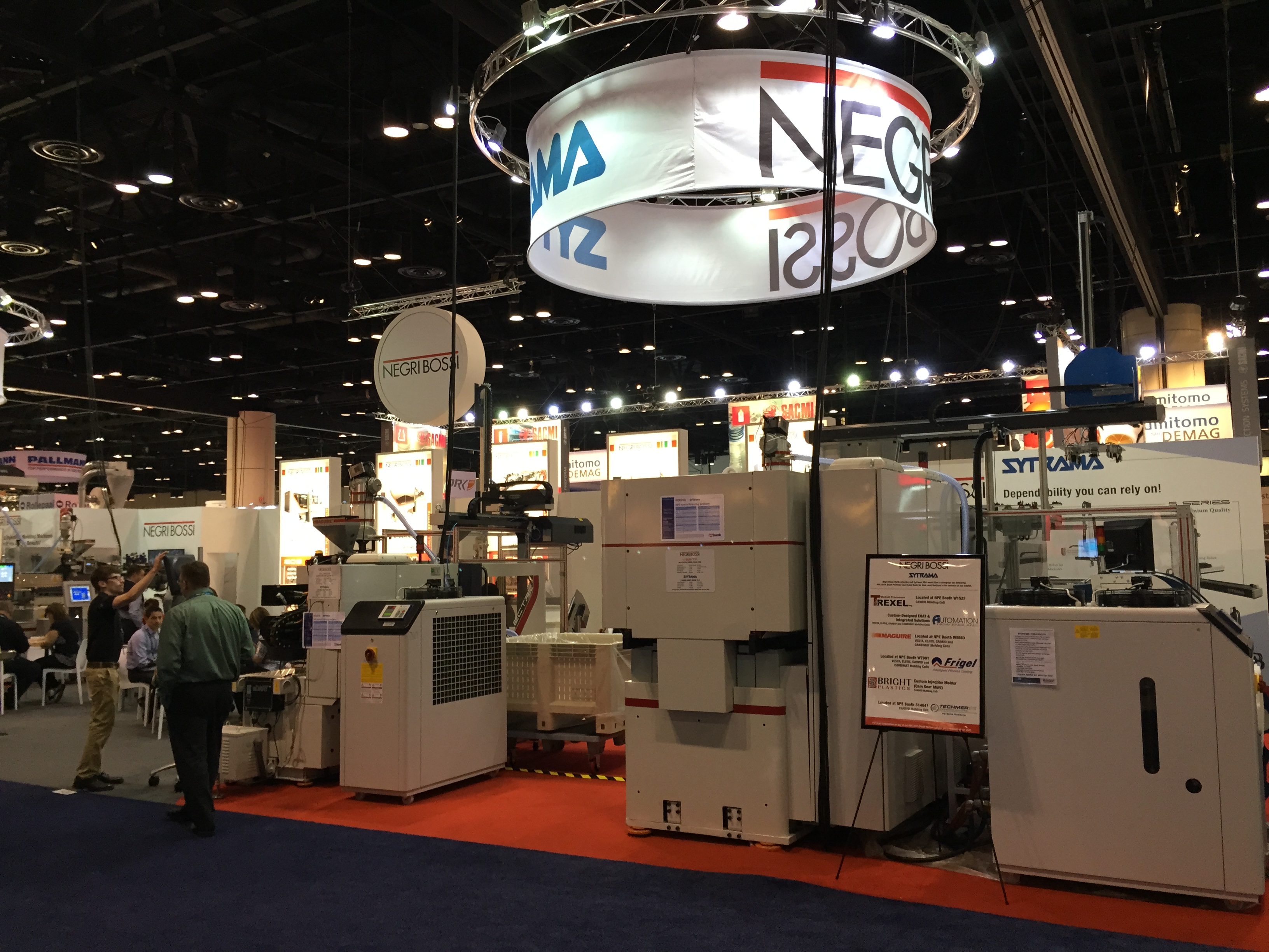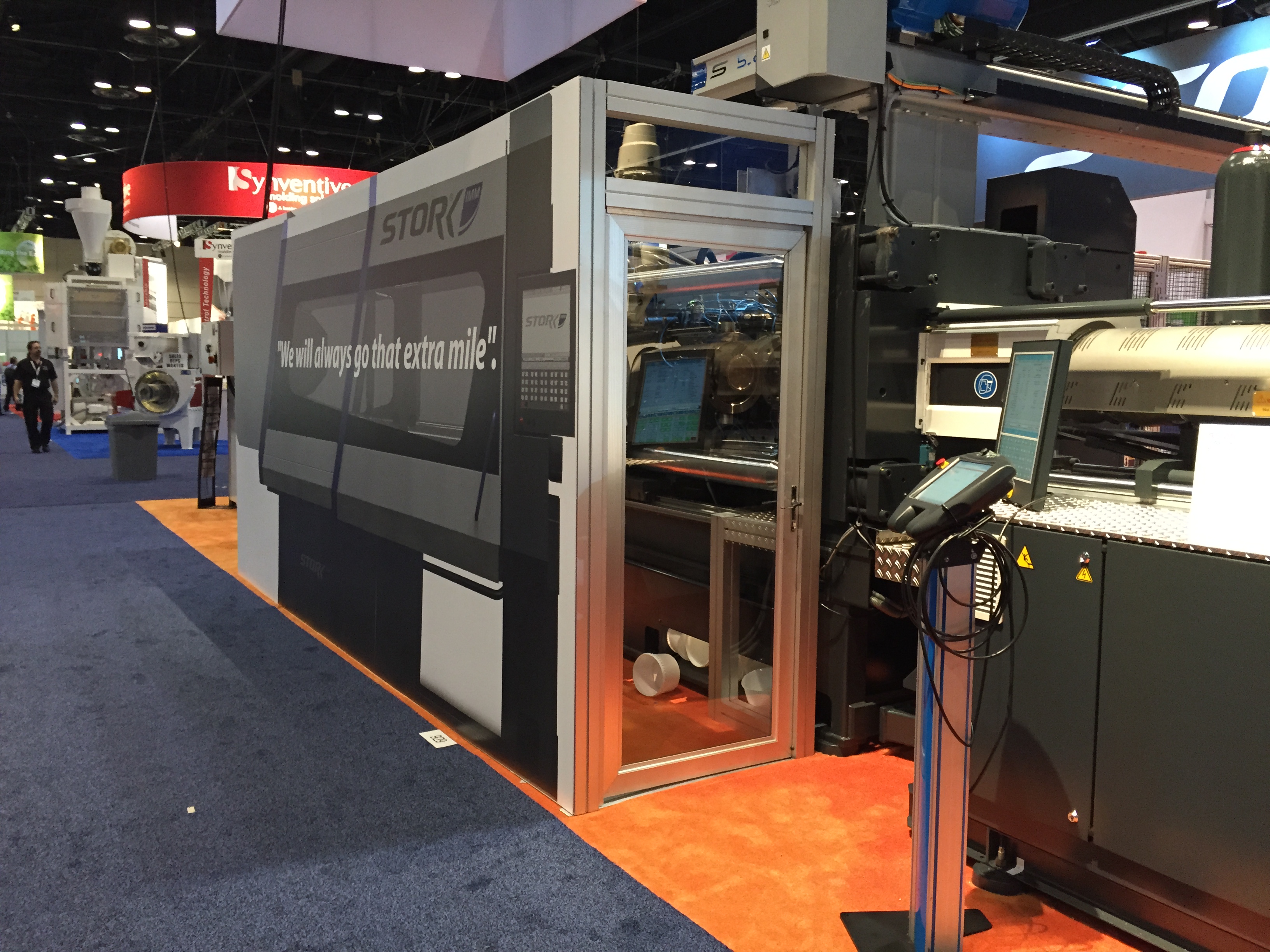 Наполнение выставки NPE в корне отличается от российских аналогов. Во-первых очень, ну очень много оборудования. Есть и гигантские машины, многослойные пленочные линии, ТПА со смыканием в 500-1000 тонн вполне себе норма. Бросается в глаза, что как минимум половина участвующих компаний неизвестна у нас (нам неизвестна, уважаемые читатели, конечно, знают побольше). Кто бы мог подумать, что Canon, знаменитая фотоаппаратами, принтерами и т.п. имеет серьезные интересы в пластиковой индустрии и выставила гигантский стенд на NPE. А гвоздем всей выставки, главным спонсором и ньюсмейкером стала американская компания Milacron, имеющая гигантский стенд в 25 000 кв.футов. Учитывая, что вся выставка чуть более 1 млн кв. футов, несложно вычислить, что стенд Милакрона занимает более 2% от всех выставочных площадей. Что в России и СНГ знают о компании Milacron? Знают, что она есть. Возможно, знают что она делает ТПА Ferromatik (вроде как до сих пор продает в РФ фирма «АБ Универсал», выдувные машины Uniloy (неизвестно кто продает), может быть слышали, что в холдинг с недавних пор входит DME (ее компоненты продают все подряд) и с новейшего времени – MoldMasters (известна благодаря компании «Портмолд»). Между тем, Милакрон делает удивительные, во многом не имеющие аналогов машины. Одна такая находится в компании «Ай-пласт» - льет вспененные изделия при низком давлении, множество по всему миру установлено бикомпонентных ТПА с одним шнеком типа «моносэндвич», разработанного в «нулевых» годах Милакроном. Сейчас американцы выходят с гиганскими системами для литья ПЭТ-преформ и многим чем другим, и уж на местном рынке точно потеснят конкурентов.