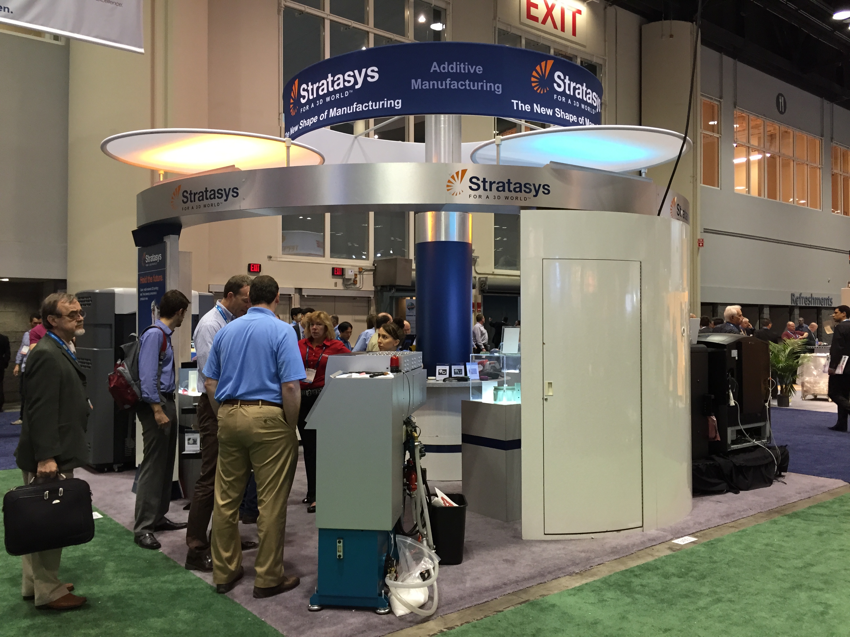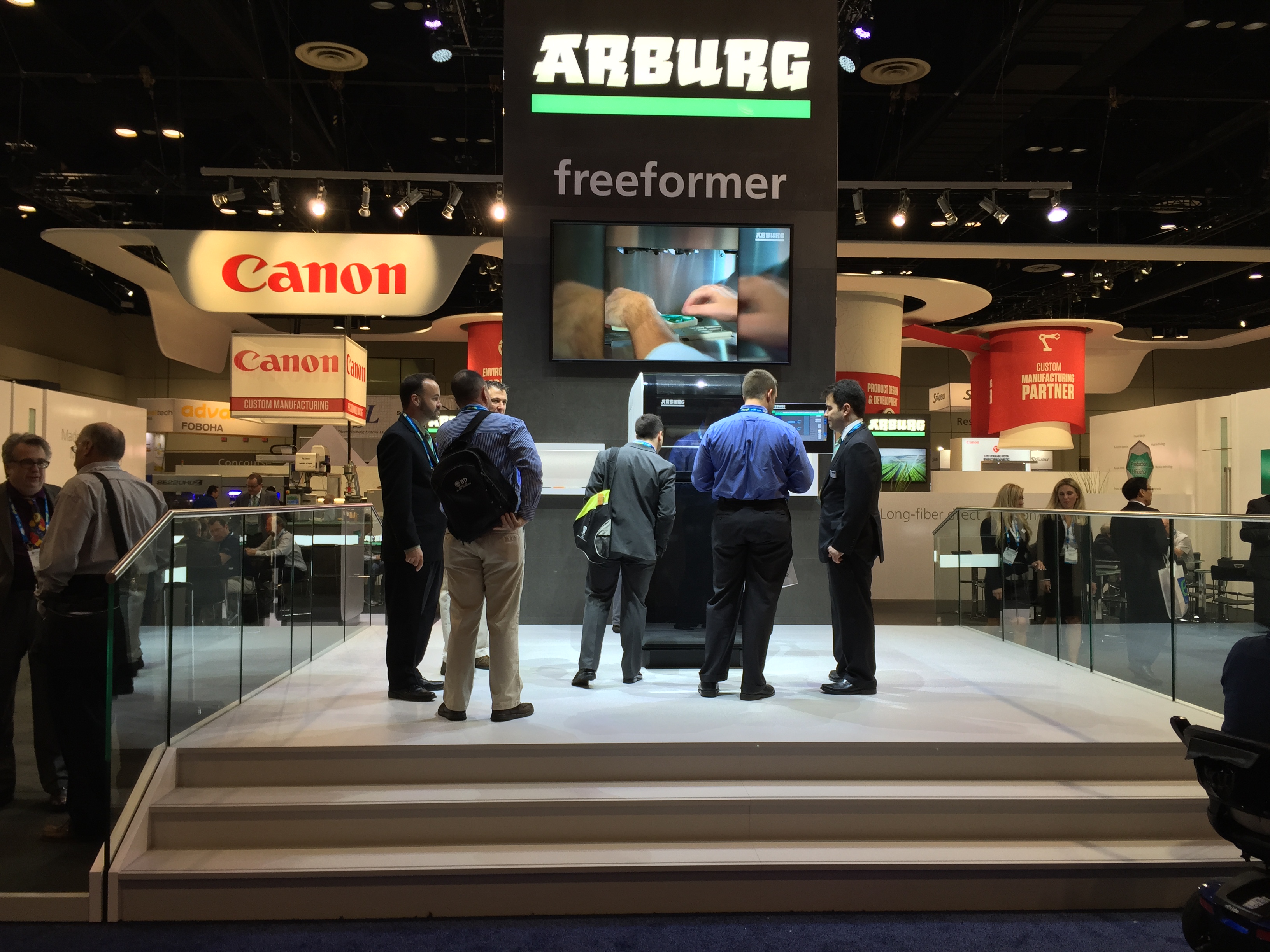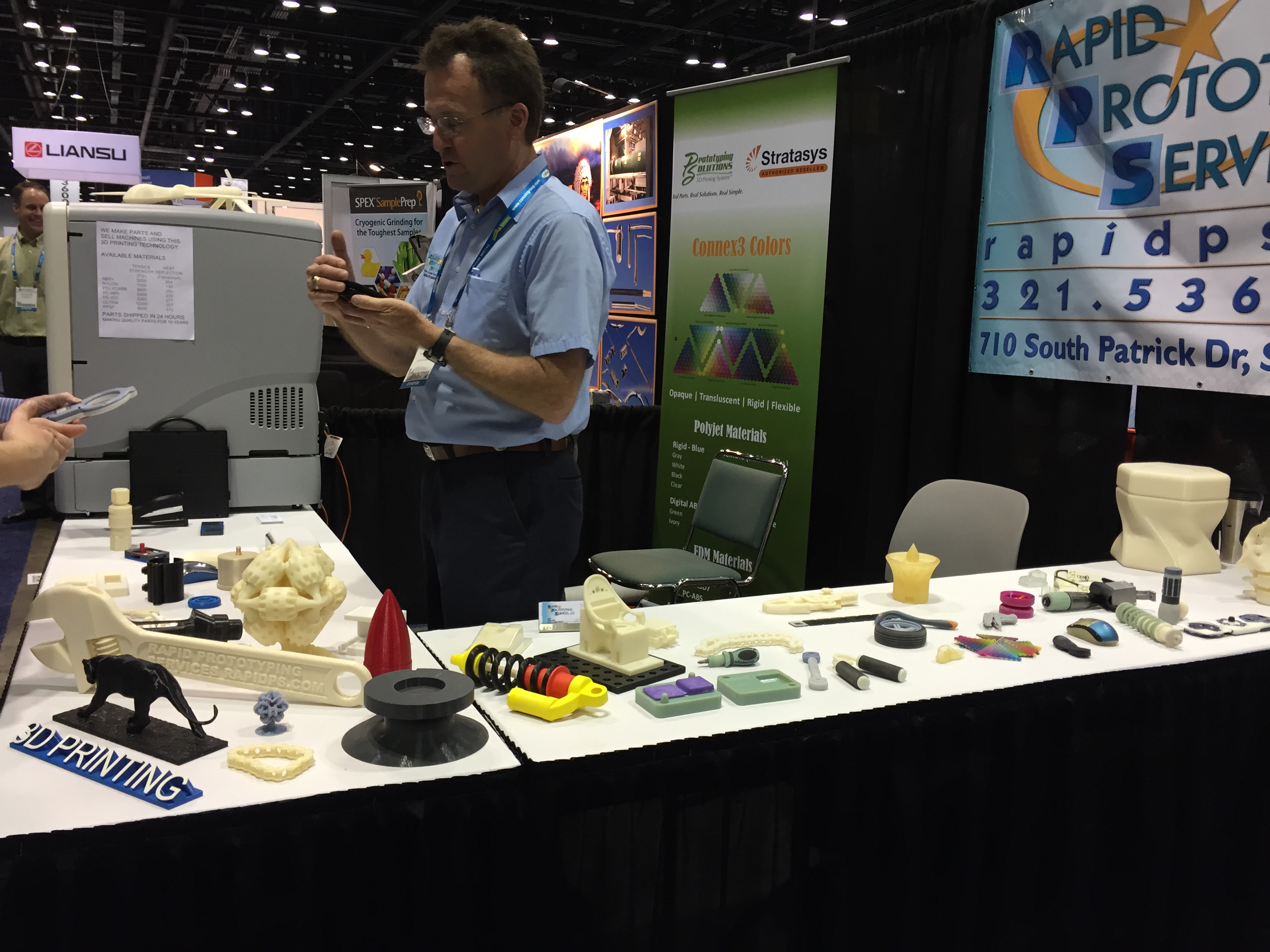 Важна и тема 3D печати. Раздутая в последние годы «новая техническая революция», похоже, понемногу сдувается. Технология пока так и не выросла из детских штанишек печати ради удовольствия и точечных промышленных применений в очень ограниченных сферах. Сектор трехмерной печати на выставке NPE был очень мал, однообразен и не пользовался популярностью. Самыми крупными экспозициями отметились американо-израильская Stratasys (второй мировой гигант 3D Systems на это соревнование не пришел), которая печатала закладные для литья на ТПА Milacron на одноименном стенде и Arburg, по традиции показавший уже до боли знакомый свой «порыв» по имени Freeformer, также не пользовавшийся большим успехом у посетителей.