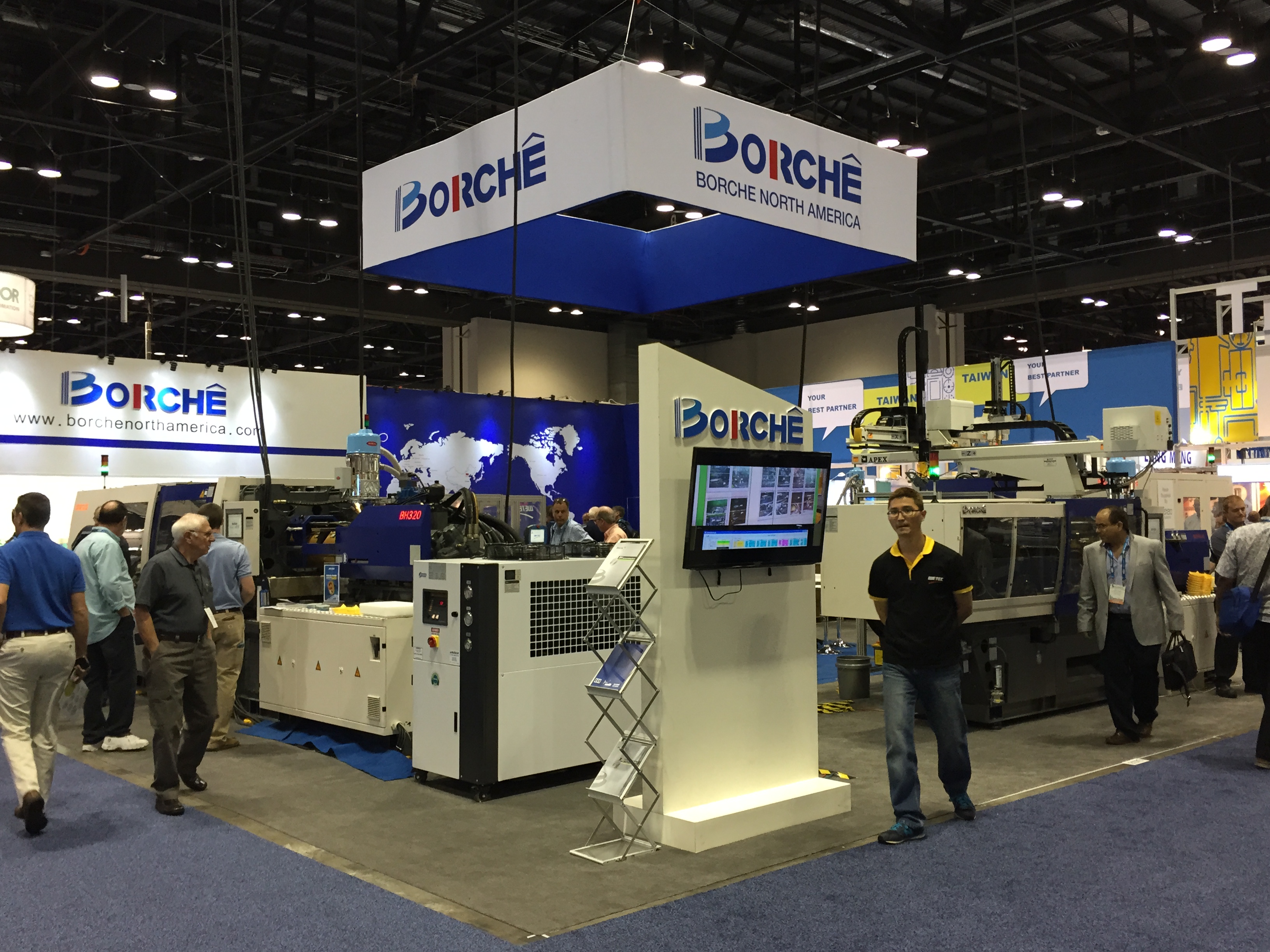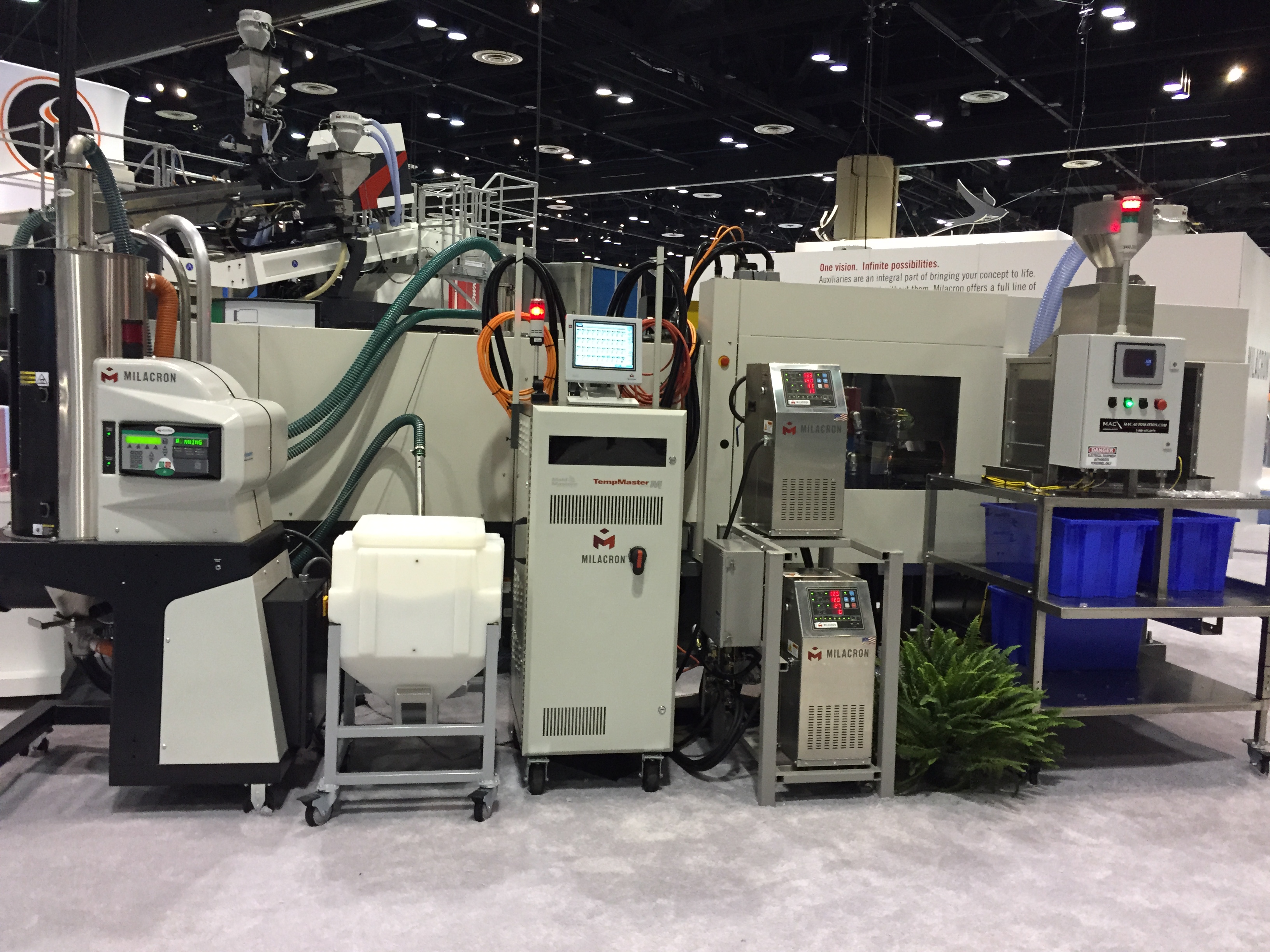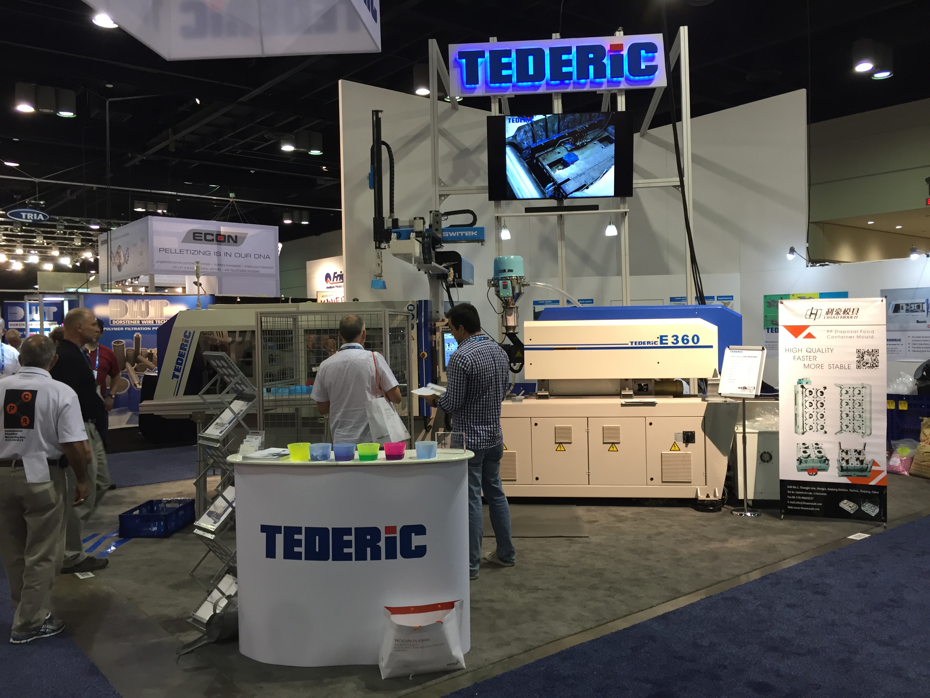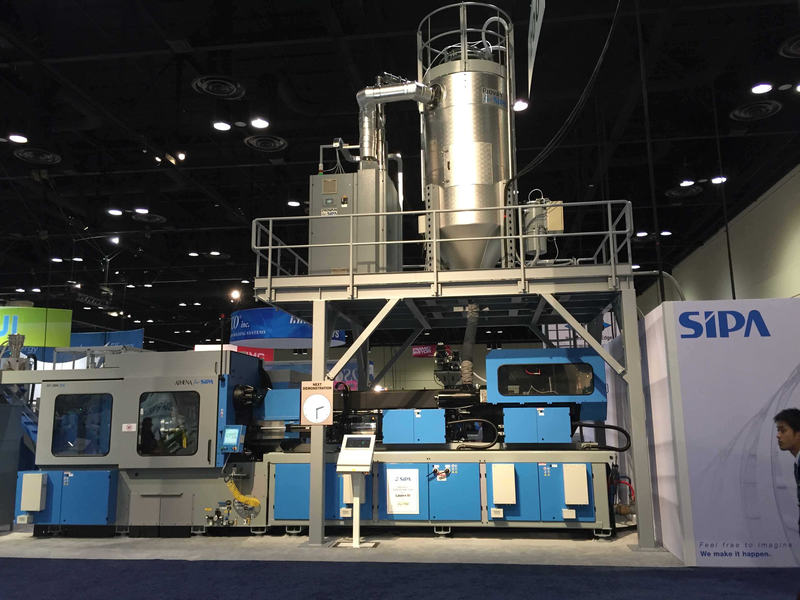 Много высокотехнологичного вспомогательного оборудования ожидаемо показал американский лидер Maguire, который предлагал 5 лет гарантии на всё оборудование. Их американский же конкурент AEC, работающий в нише low-cost тоже не подкачал, а вот европейские лидеры как-то потерялись. Слабо выступил Piovan, Motan, не видно было компании Koch. Единственное исключение – как всегда огромный стенд, полный всевозможного оборудования от Moretto. Сам основатель компании сеньор Ренато присутствовал на стенде и активно рассказывал о своих системах сушки Eureka, совершивших революцию в этом важном процессе. Китайских производителей периферии, похоже в Америке не воспринимают всерьез. Дошло до того, что славная компания Shini выступила на NPE в непривычной роли изготовителя… роботов. Да.