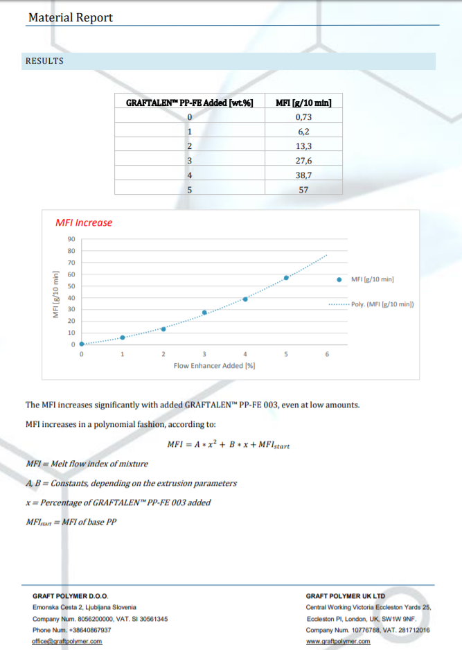 РЕПОРТ: эффективность и дозировка GRAFTALEN ™ PP-FE 003 для снижения вязкости (увеличения ПТР) полипропилена (PP).