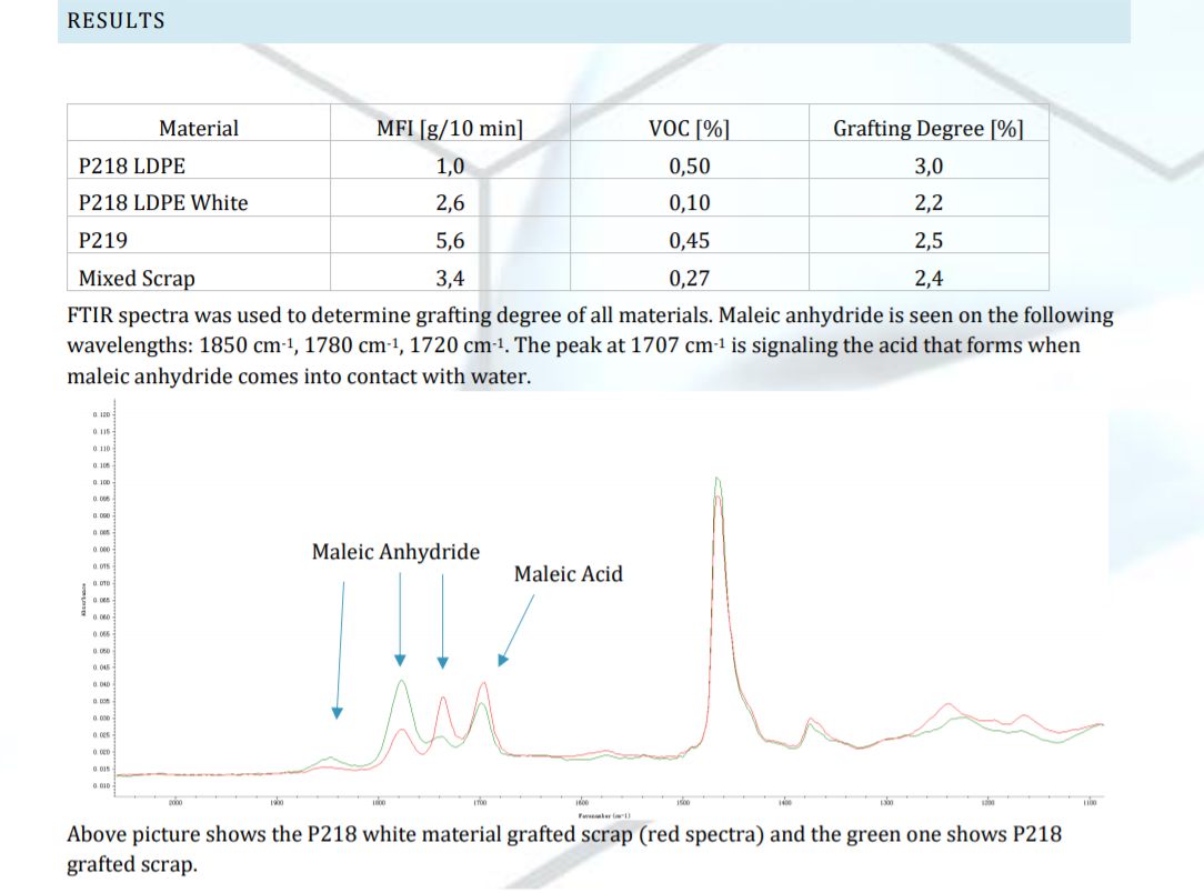 GRAFTALEN ™ HMFI-PP 5000 для полипропилена и GRAFTABOND ™ LD-MAH 11530 CA на основе LLDPE (ЛПЭВД), используемые для увеличения ПТР полиолефинов.