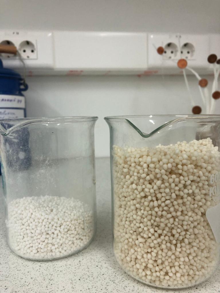 - Гранулы овальной формы, сделанные подводным гранулированием
