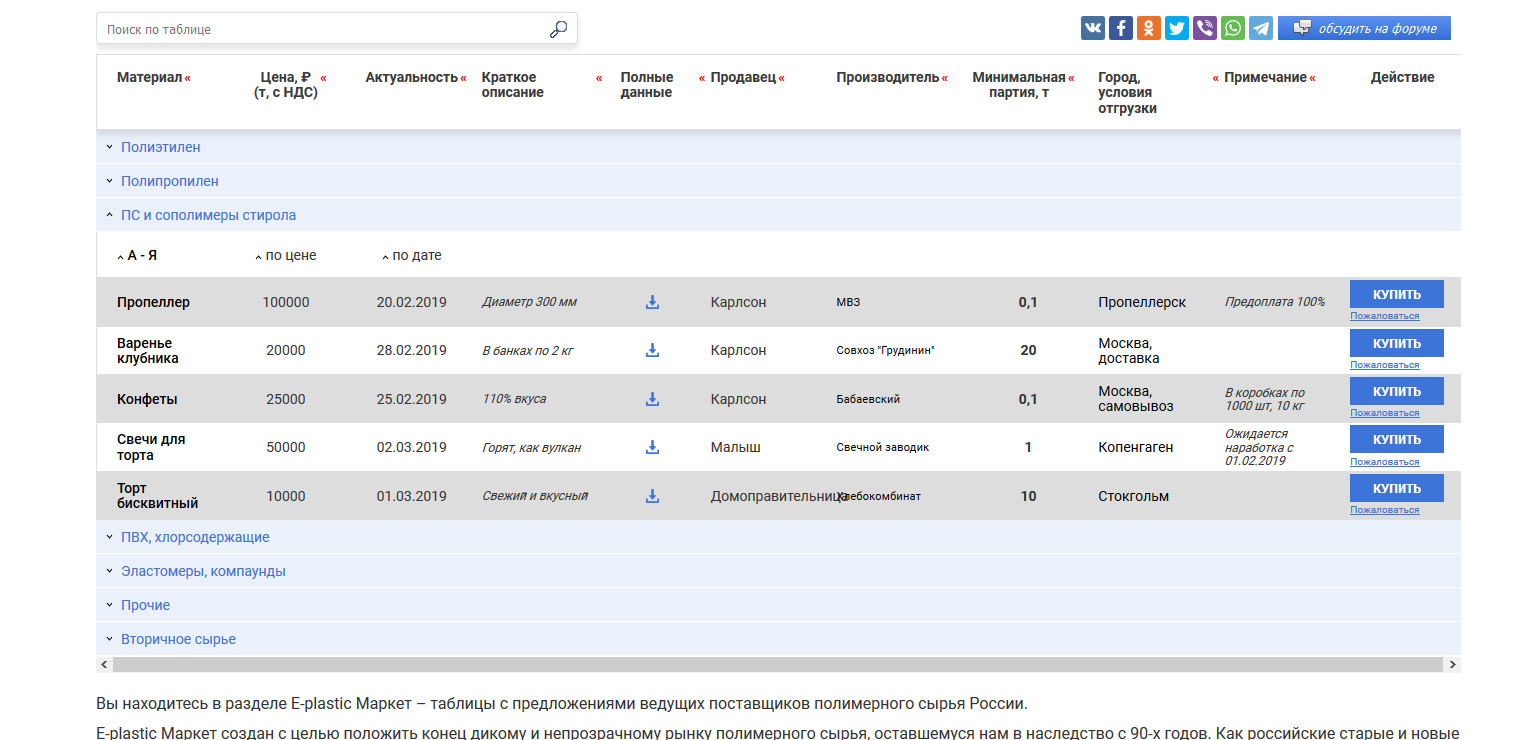 Re: E-plastic Маркет - торговая площадка по полимерам и добавкам