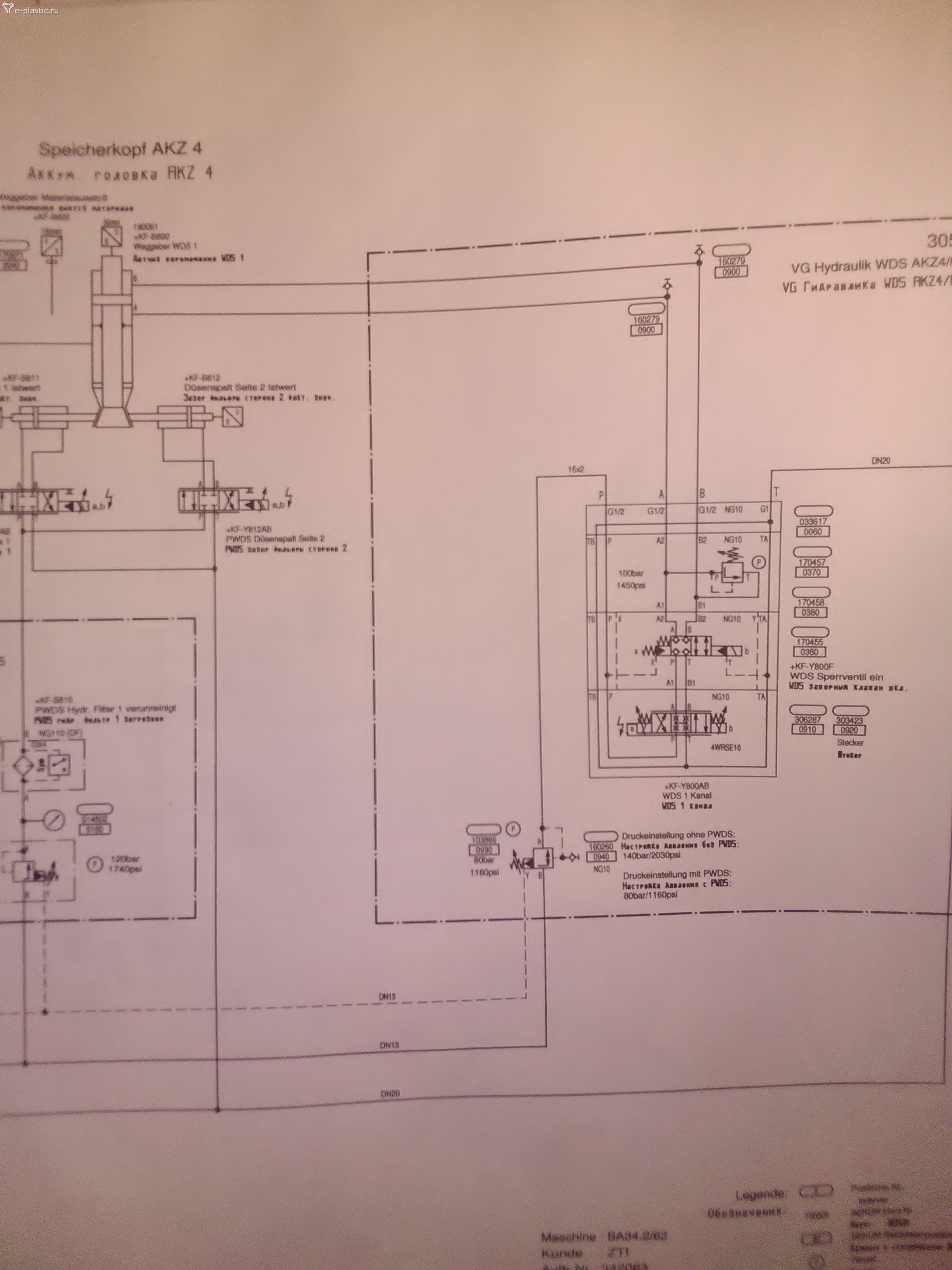 Поступить можно следующим образом: Нужны два помошника. 1) Включаем гидравлику. 2) Нажимаем в ручную по порядку по пути движения масла насоса Р3- 26 литров. Давление предохранительного клапана 1.030 можно сбросить до 50 -100 бар. Далее нажимаем и удерживаем 1)1.050 2) 1.160 3) 1.120а 4)1.140в 5) 1.130а следим с каждым дополнительным нажатием за манометром 0.410 левым около аккумулятора. Фиксируем момент исчезновения давления если это произойдет. Что проверять если давление исчезло ? Тот аппарат при нажатии на который давление исчезло и далее по пути потока Границы в синию линию слива на расстоянии от 2,5 мм. (Скол перемычек в корпусе, трещины, засор запавший в углублениях....) Затем проверяем запорную и распределительную аппаратуру согласно схемы. Это: 1)1.090 2)1.400 3)1.130 4)1.120 5)1.200. На старте. При включении гидропривода обратить внимание что активно по эл магнитам в системе проанализировать не будет ли помех при проверке. Все пока. Так поступают три слесаря которые не бум бум в системе управления и электротехнике. Необходимо точно знать расположение перечисленных клапанов. Приготовить удобные нажималки что бы не повредить кнопки принудительного включения эл магнитов. Потом проверить вернулась ли кнопка в исходное положение. Давление сбросить. Ни к чему напрягать в 200 бар. Разьемы на будущее подписать. Поток будет направлен в единственный порт HD к блоку управления гидрогайкой и цилиндром смыкания. Там ни чего не нажимаем. Каналы на входе в блоки перекрыты. Проверить, обдумать. Мы бы попробовали. Если есть электронщик, пригласить в команду в помощь. Если насос Р1 будет мешать . Сбросить на нем давление ручной регулировкой 1.020 до уровня ниже давления насоса Р1