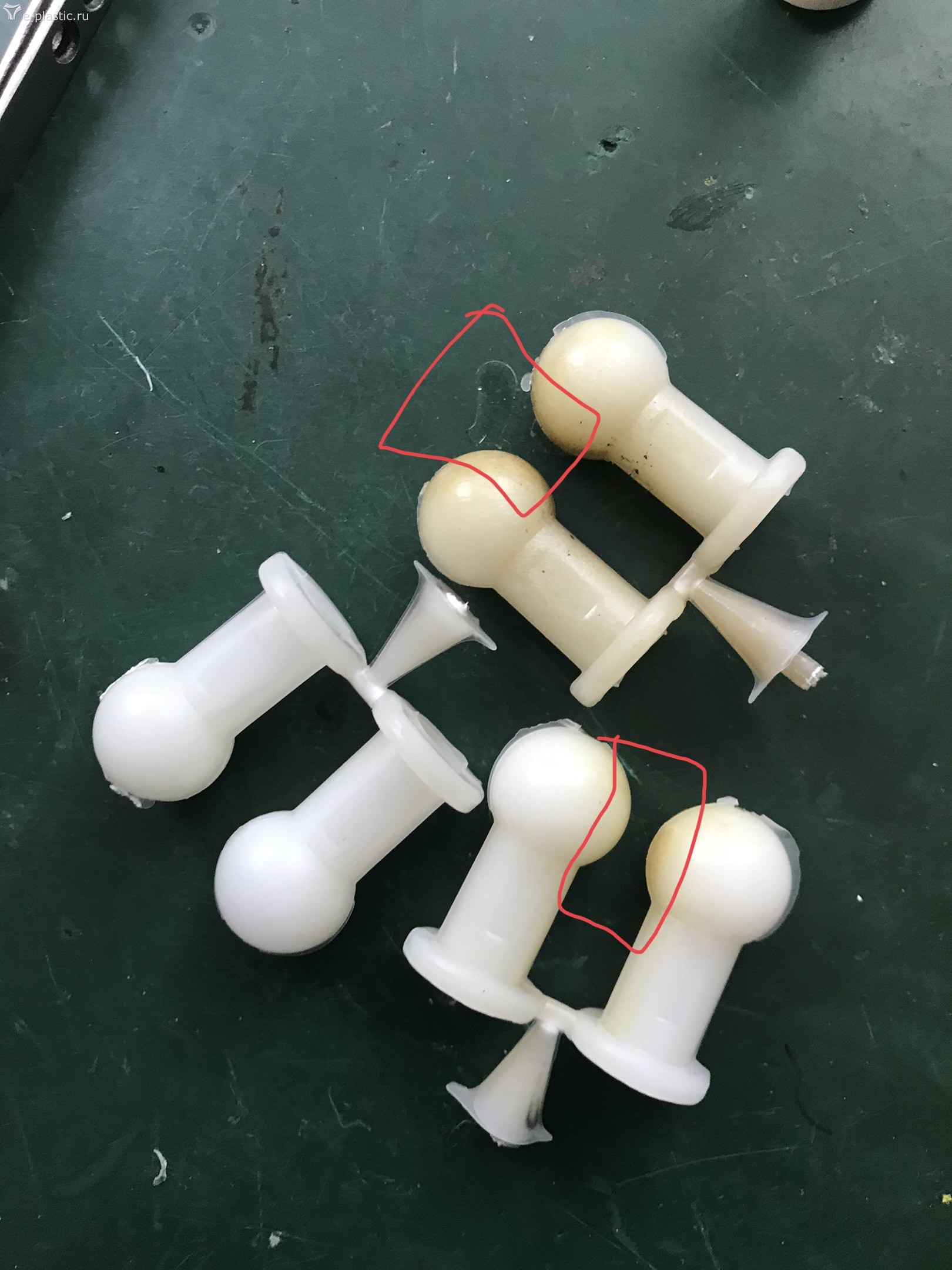 По поводу что перепутал спай и пригары может но как я понял спай это лишний пластик в месте стыковки двух половинок формы, а пригары у меня на шарике изделия пластик более темным пятном получается.