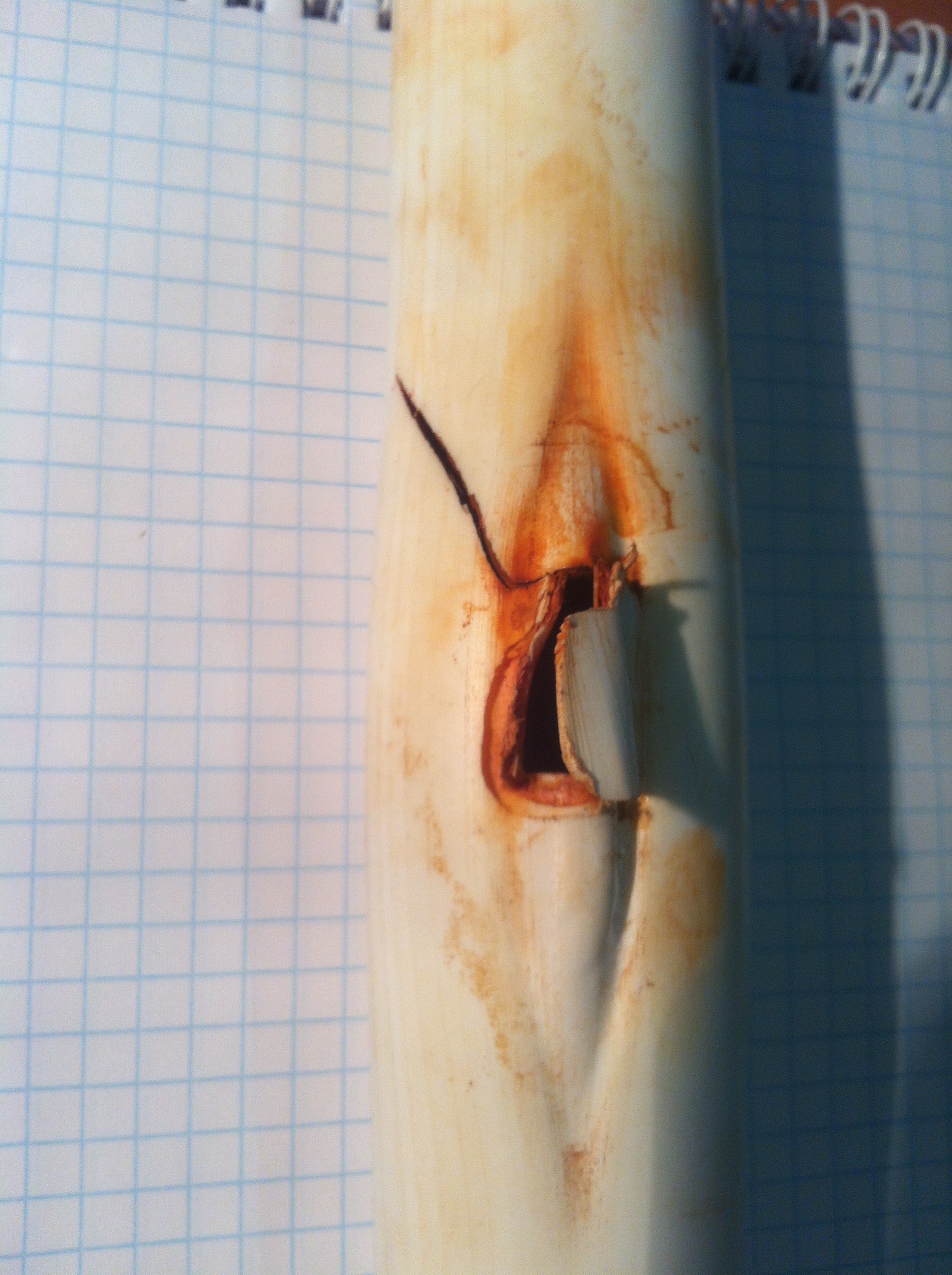 Здравствуйте! Получили стройки образец лопнувшей полипропиленовой трубы, армированной стекловолокном, диаметр 32 мм.