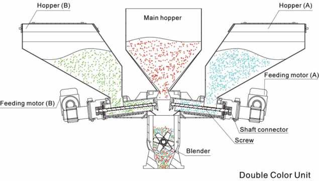 Думаю подобрать дозатор. Но чувствую, что и тут столкнусь с трудностью, так как гранулы агломерата имеют размер 10мм, а краситель 0.25 мм. И проценты 0.35. Ещё добавка до 3 мм гранулы. И нужно 3 потока объединить с автоматической дозировкой о весу.