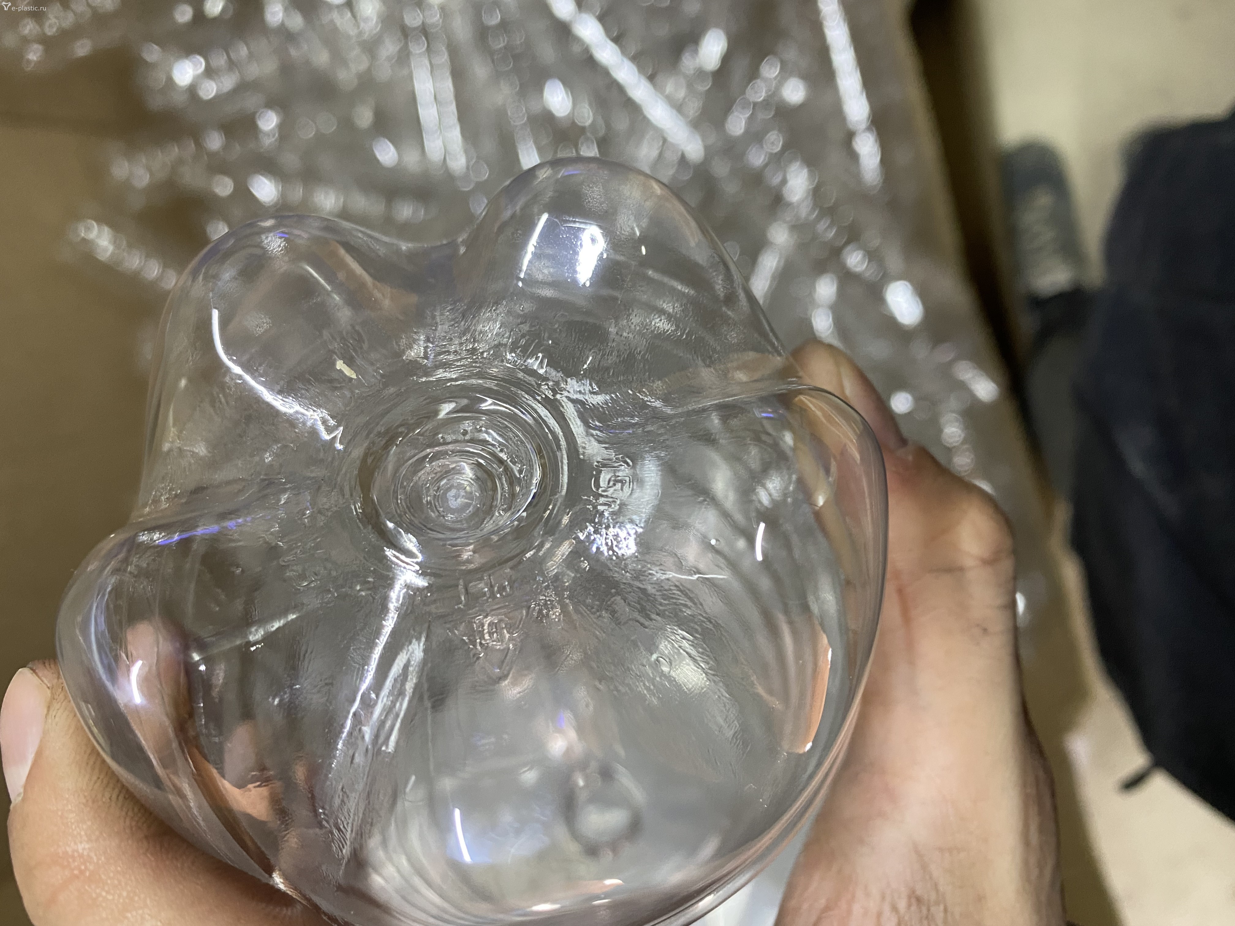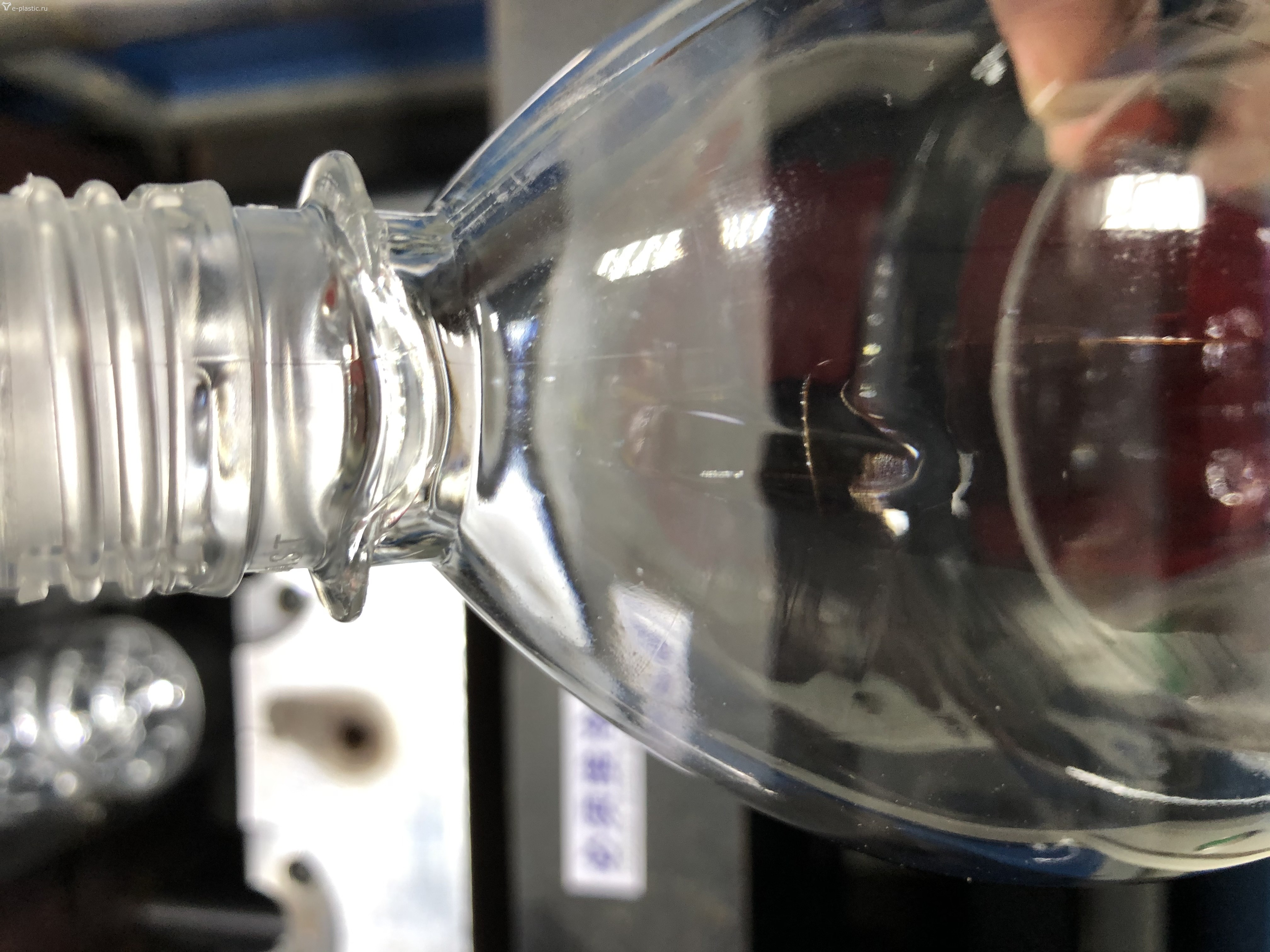 Последний случай - был связан с литьевым дефектом преформ, т. е. на выдуве дефект оказался неустраним.