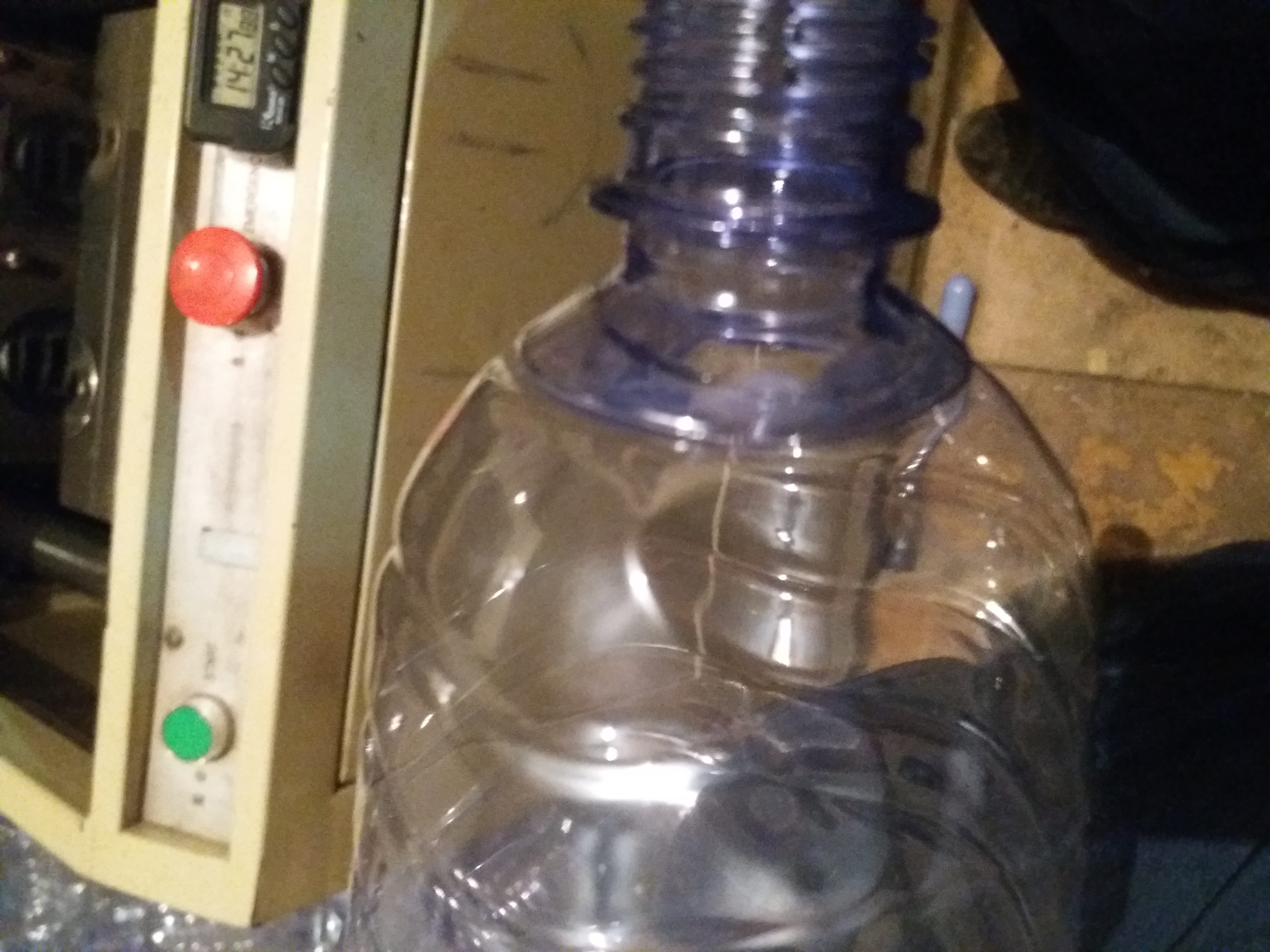 Вообще же для получения 1,5 литровой бутылки на вашем станке (с вашей печью) желательно брать преформы большего веса и толщиной стенки не более 3,4 мм.