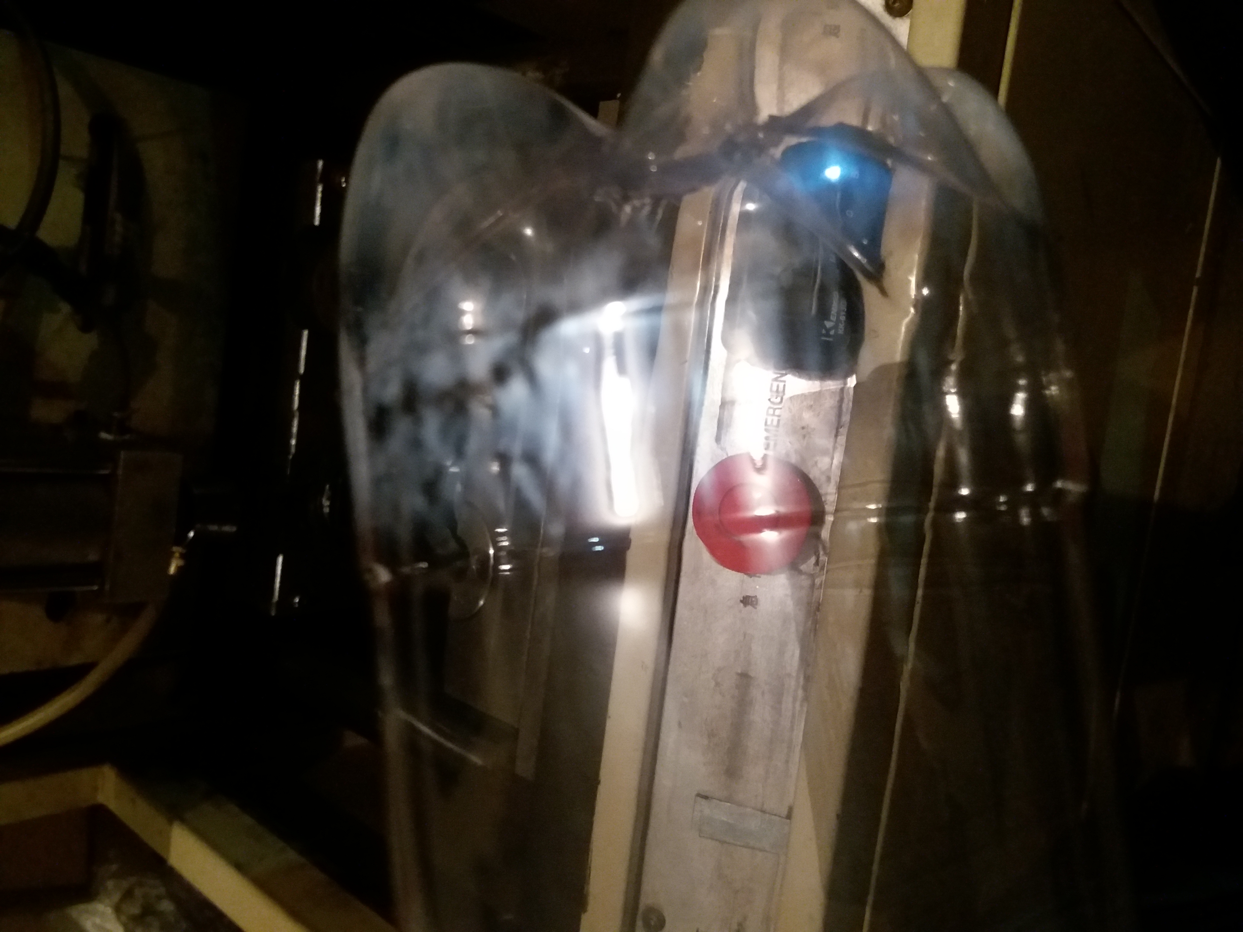2.Снижайте скорость конвейера печи примерно по 5-10%, до начала помутнения преформ (начало кристаллизации) на выходе - это ваша отправная точка. От такого помутнения чуть снижаете нагрев, ищете момент когда кристаллизоваться ПЭТ не будет. При этом смотрите, чтобы преформы в донной части проминалась с большим усилием чем около горла.