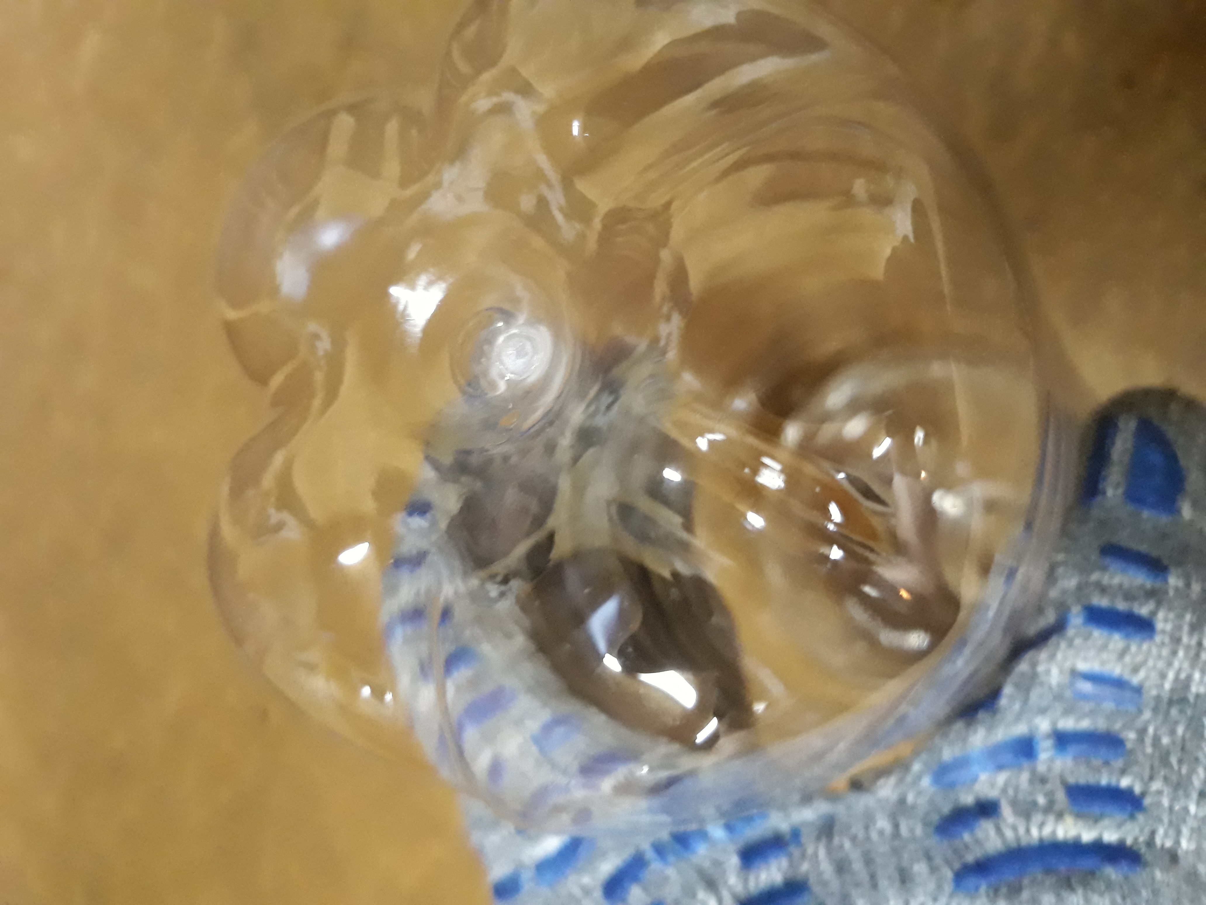 почему получается возле горлышка кольцо. и по спмой бутылки пятна