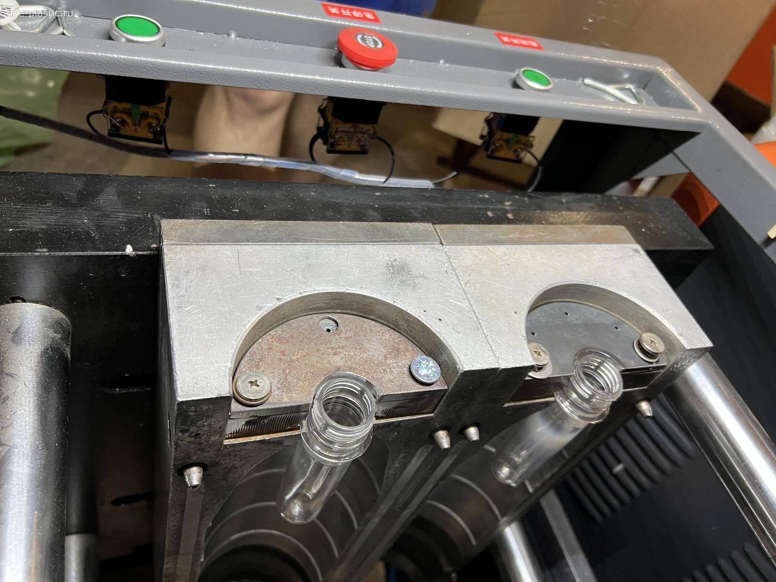 При выдуве на китайском автомате я так понимаю J88, не получается стянуть материал с горловой части бутылки