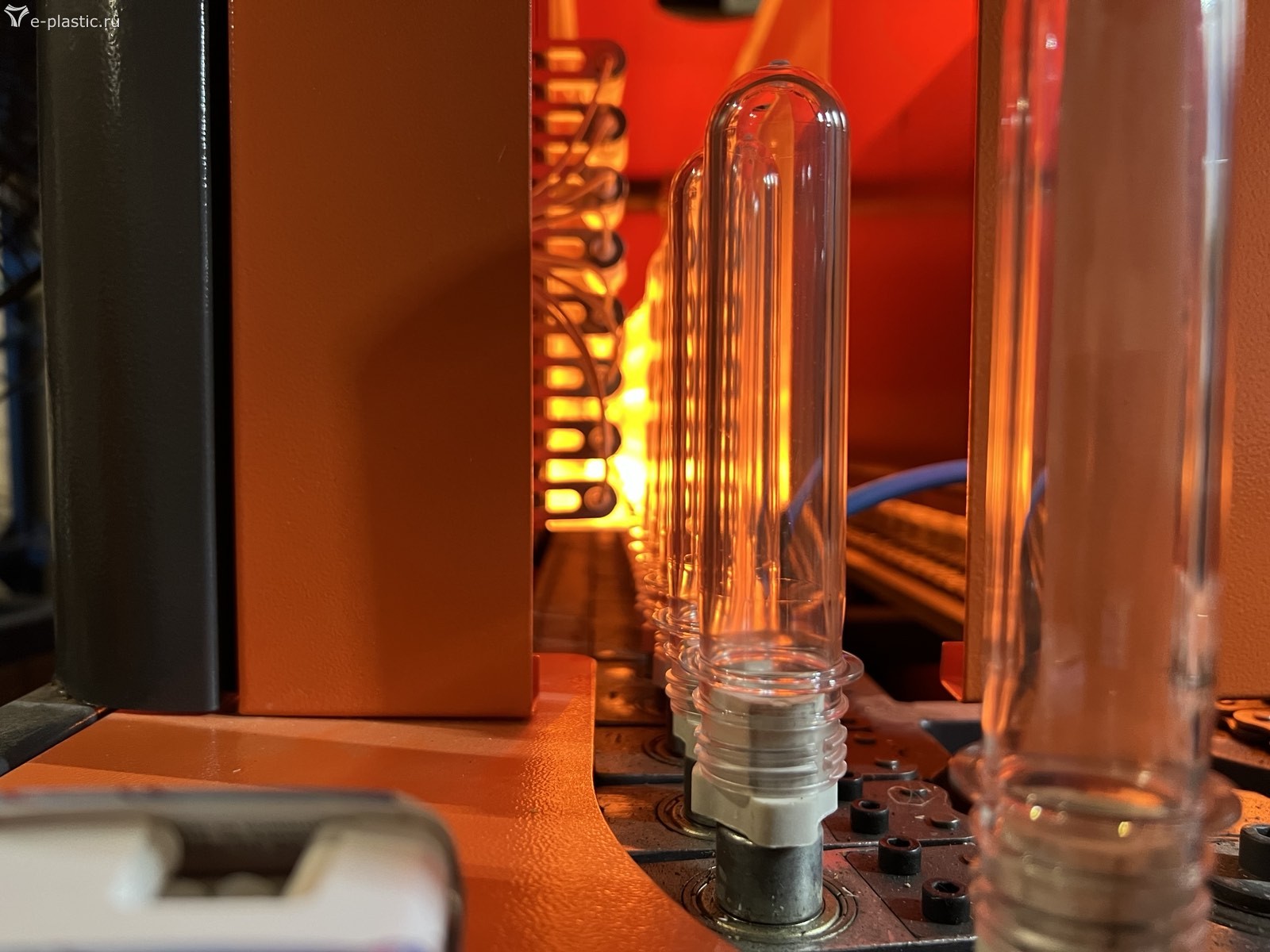 Фото 1-2 преформ напротив включенных ламп в печи.