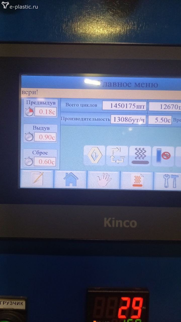 дефекты обнаружились под конец августа, так как примерно в конце июля приезжал специалист по машине заменили штока, картридж предвыдува, добавили провод большего сечения чтоб не так сильно чувствовались перепады напряжения, так же иногда бывает в процессе работы когда идет выдув бывает такое что останавливается привод печи уходит в ошибку захват преформы.