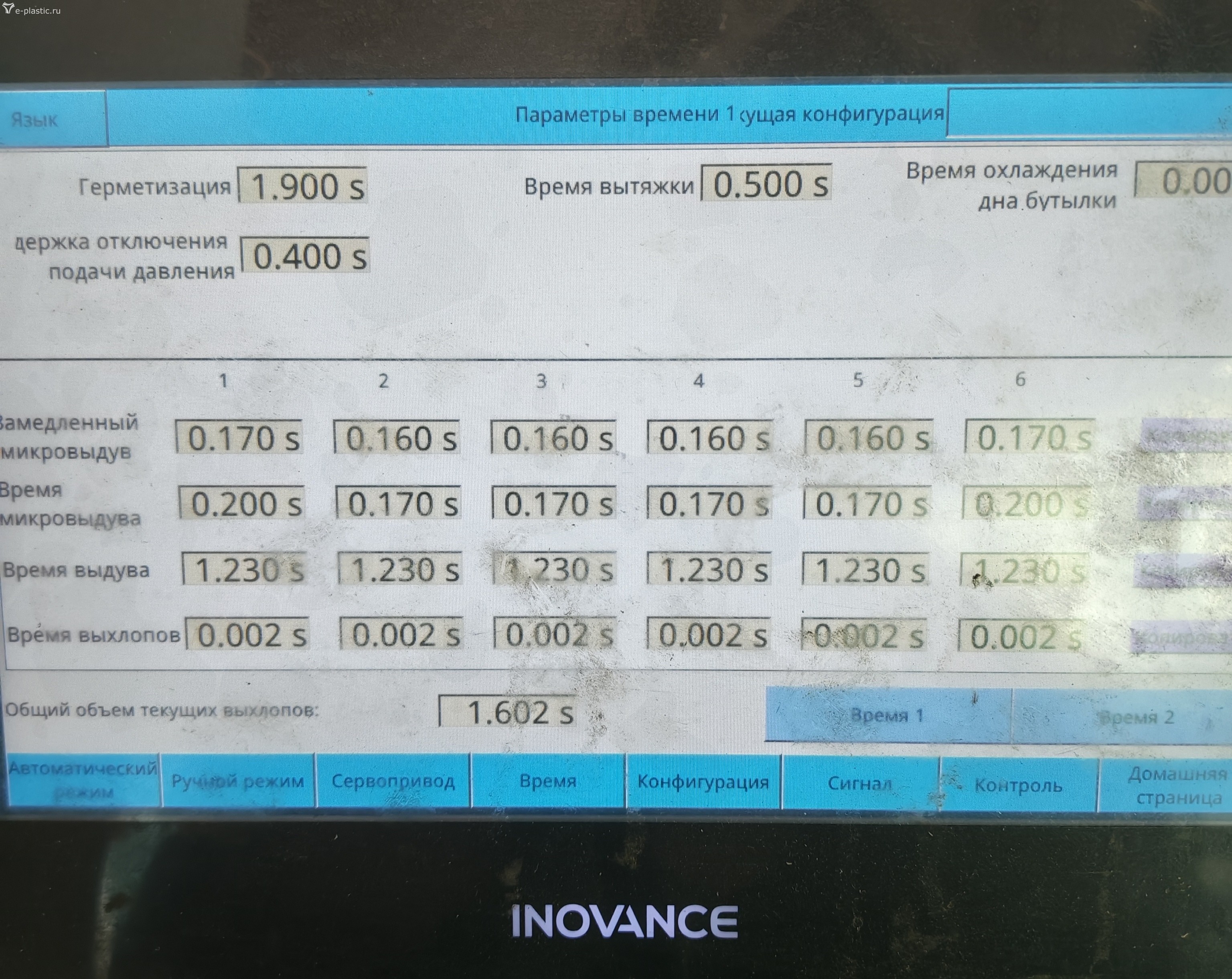 Длительность предвыдува (в меню вашей машины "микровыдув") увеличьте на всех гнездах до 0,20±0,01.