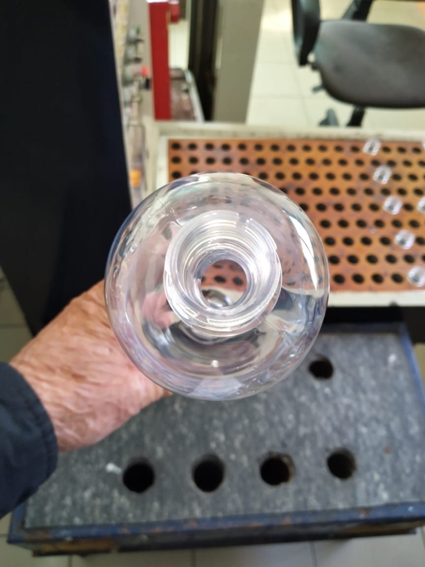 С дефектом почти каждая 8-10 бутылка из недостатков есть еще не полное формирование донной части (ножки не полностью додуты)