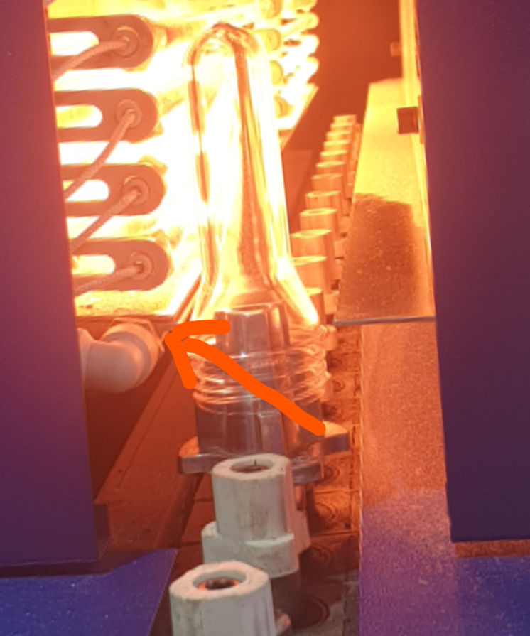 Здравствуйте дорогие форумчане! Подскажите пожалуйста, столкнулись с такой проблемой. В печи разогрева поменяли держатели преформ с 28мм горловины на 38мм. Производитель в комплекте дал держатели из текстолита. Материал очень сильно нагревается, и у него плохая теплопроводность. Капсулы соответственно очень сильно греются в горловой части, и при выдуве деформируются. Если снижать температуру то по всё бутылке появляется белизна, которую раньше убирали хорошим нагревом.