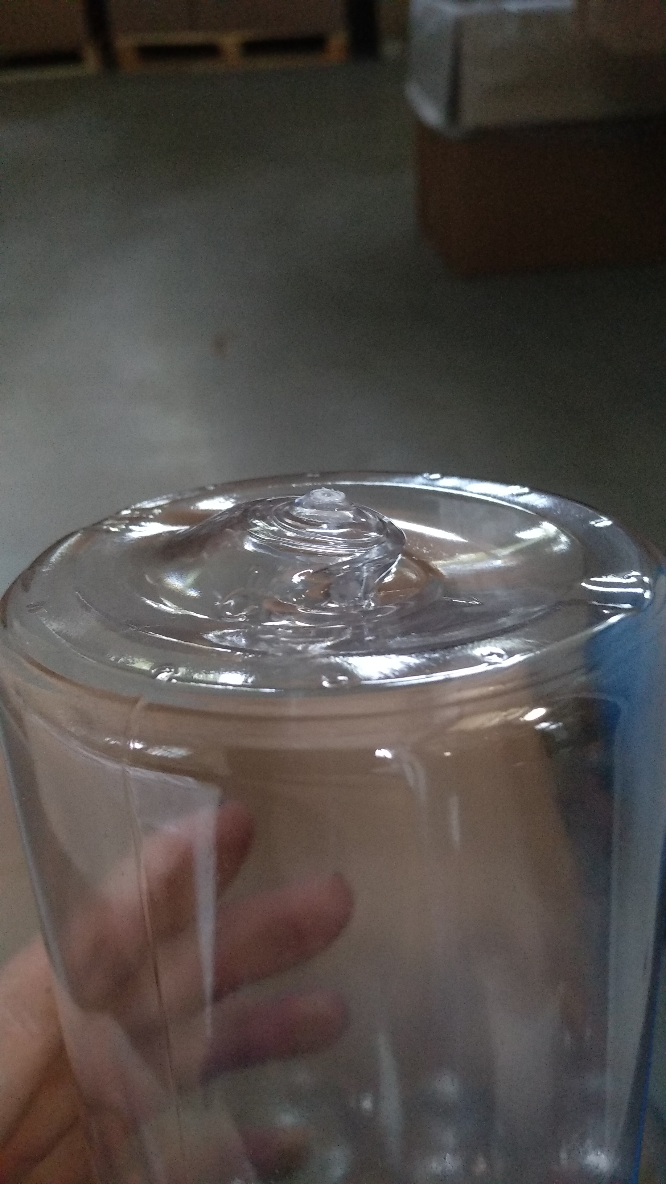 Основной проблемой является скопление материала на дне флакона в виде складки ( фото во вложении ).