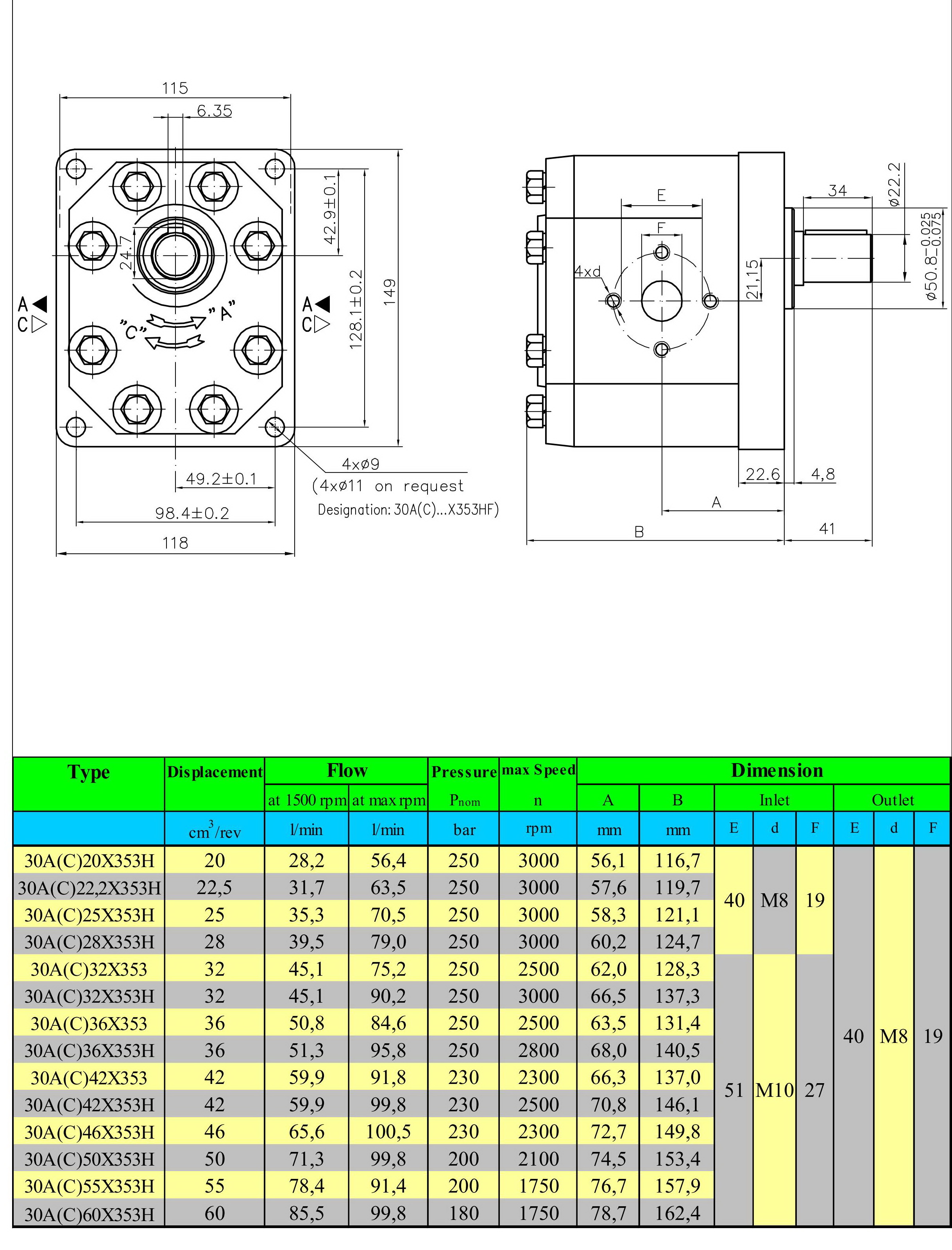 Чуто не забыл: Номинальная подача: л/мин, при частоте вращения 40с-1: 57,6/21/21