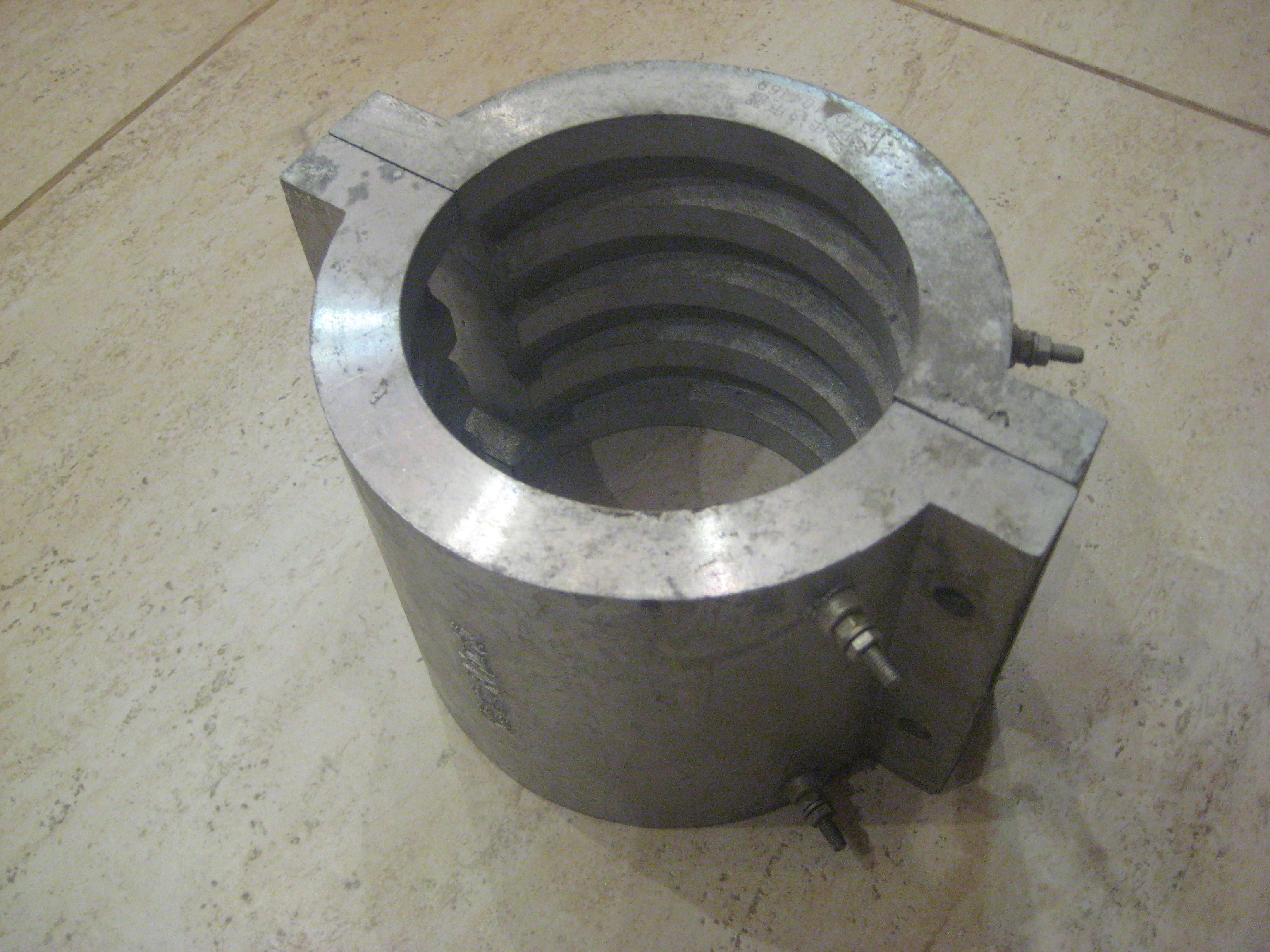 1. Алюминиевые полукольцевые нагреватели для материального цилиндра экструдера. Новые, ни разу не использованные. Внутренний диаметр 120 мм, ширина 150 мм. Мощность 0.6 кВт. Выводы - клеммы. Цена 10000 за 2 пары.