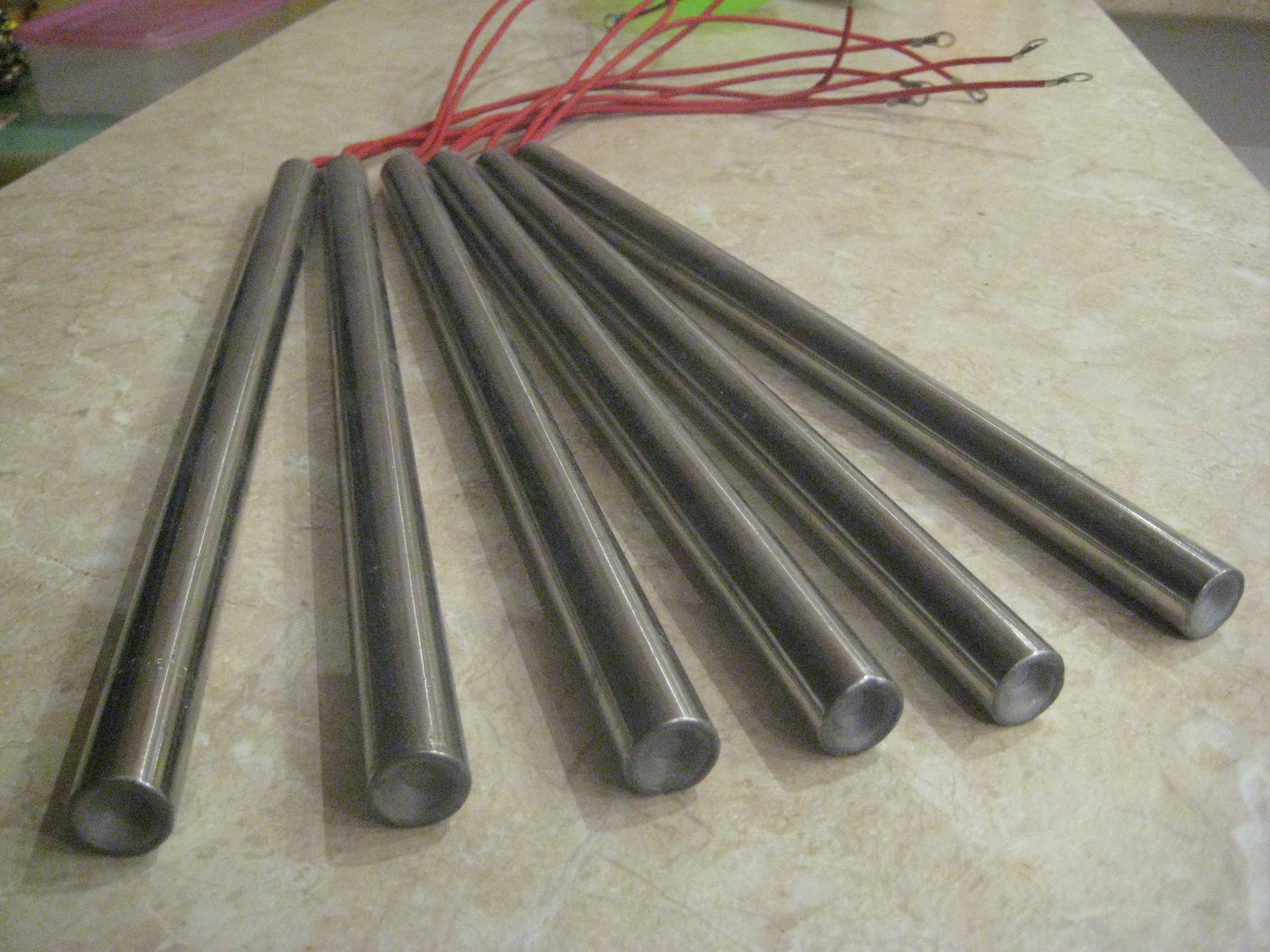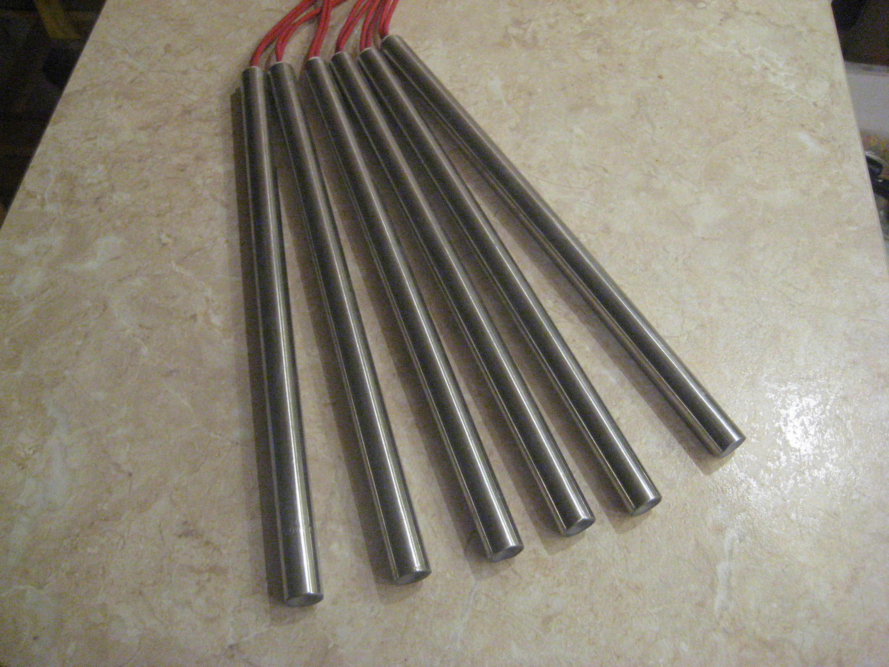 2.Патронные нагреватели диаметром 15 мм, длина 300 мм, мощность 600 Вт. Новые ни разу не использованные. Количество 6 шт. По 1000 руб\шт