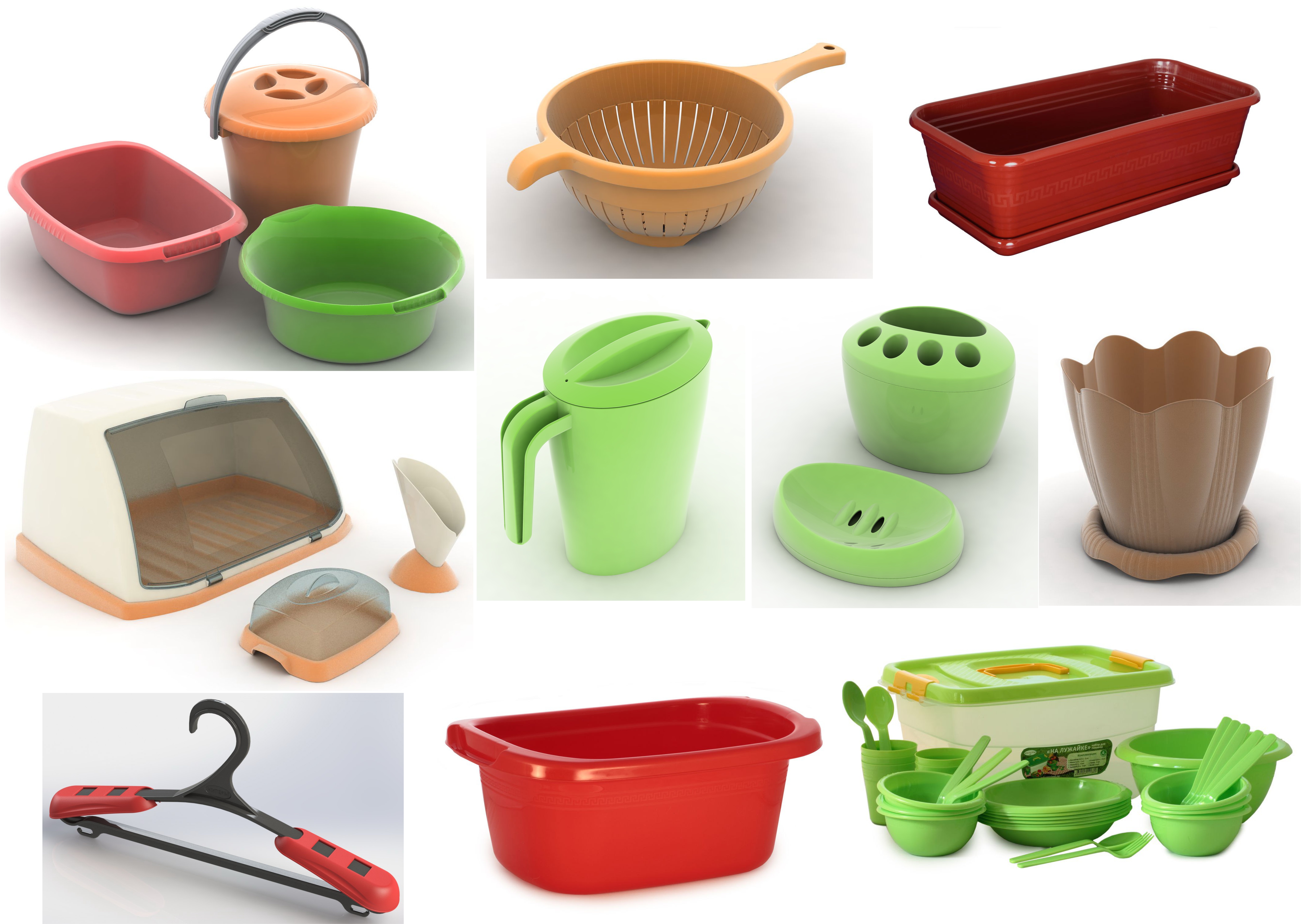 - товары хозяйственного назначения (ведра, тазы, горшки, контейнеры, миски, тарелки и т.д.);