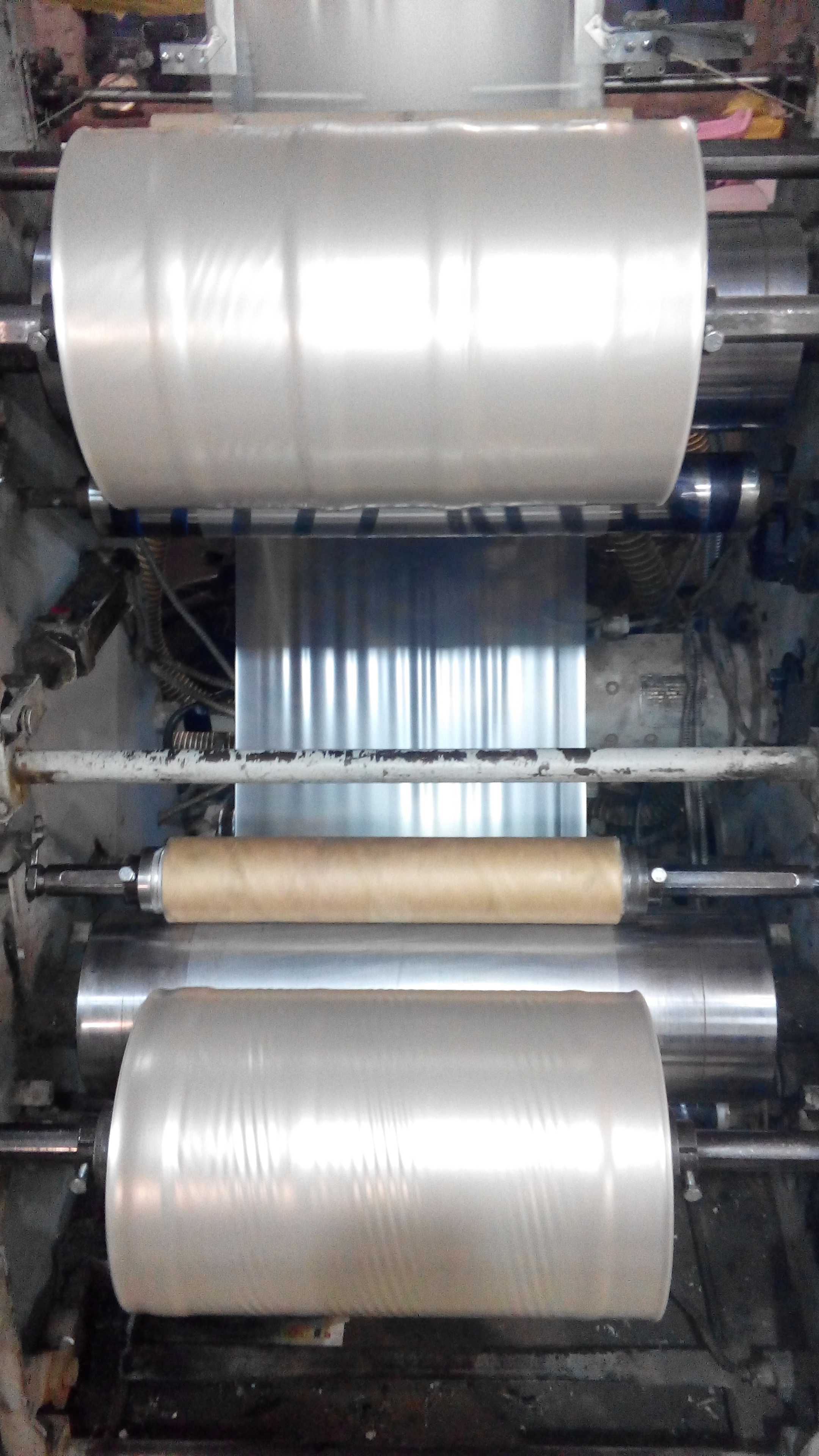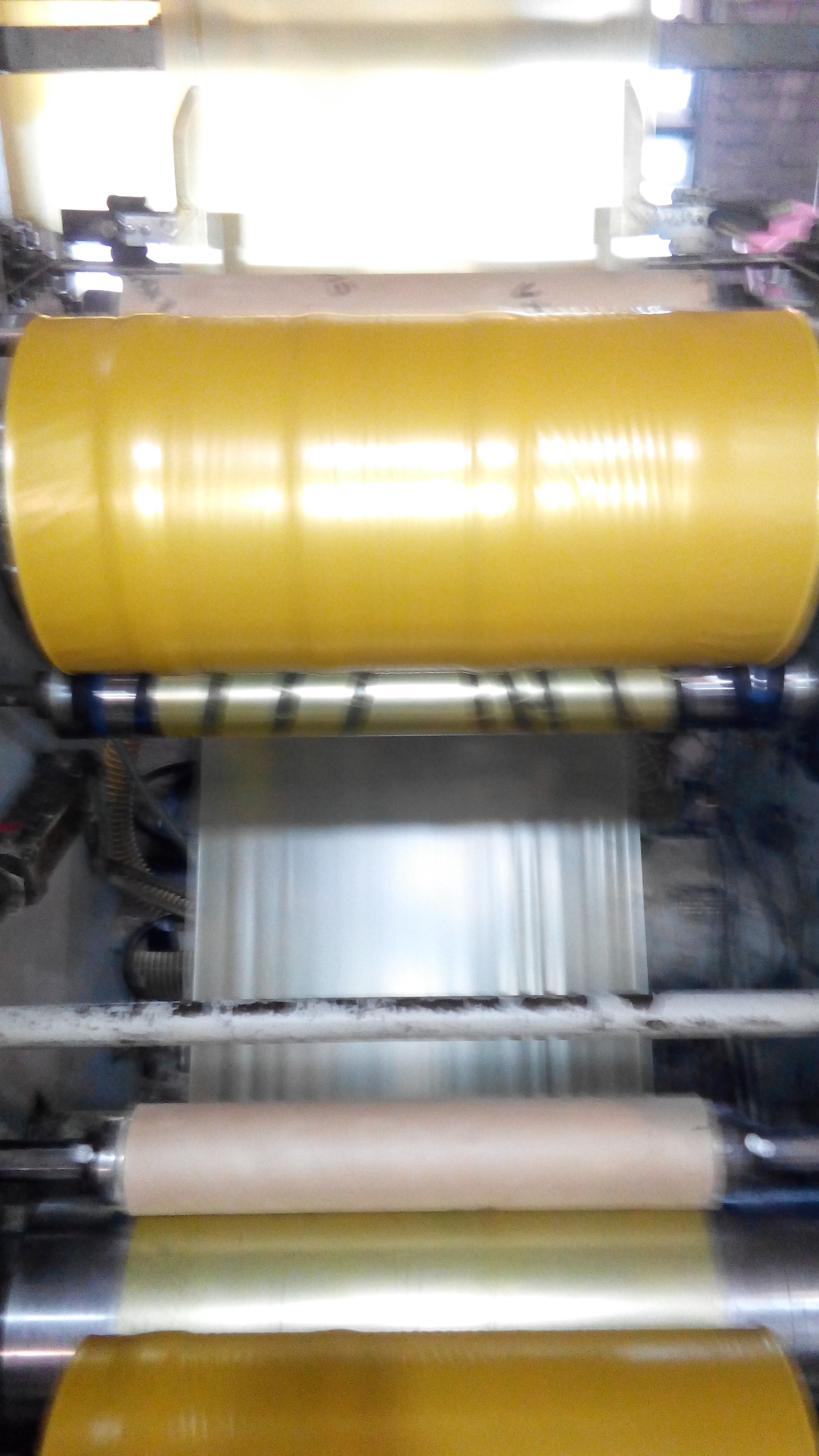 Такая ситуация. Раздуваем ПВД и сразу из головы выходит равномерно по всей окружности равномерно порядка восьми полос небольших, видно по окрашенной плёнке. В итоге на ролике получаются местные утолщения равномерно. Пробовал повернуть голову утолщения соответственно сдвигаются. Температуры стоят, шнек 120 - 161 - 165, перед сеткой 184, сетка 180, поворот 182, низ головы 178, верх голова 170. Вращением очень гуляет край, симметрия пузыря в норме, геометрия всех валов в норме, геометрия экструдера тоже в норме. Такое ощущение что спиральный раздатчик на нижней голове даёт эти полосы, дорн на верхней голове чистый без нагара, используем процессинговую добавку она не даёт нагара. Работаем на вторичке добавляя стрейч 30%. Кто сталкивался с такой ситуацией? Подскажите пожалуйста в чём может причина.