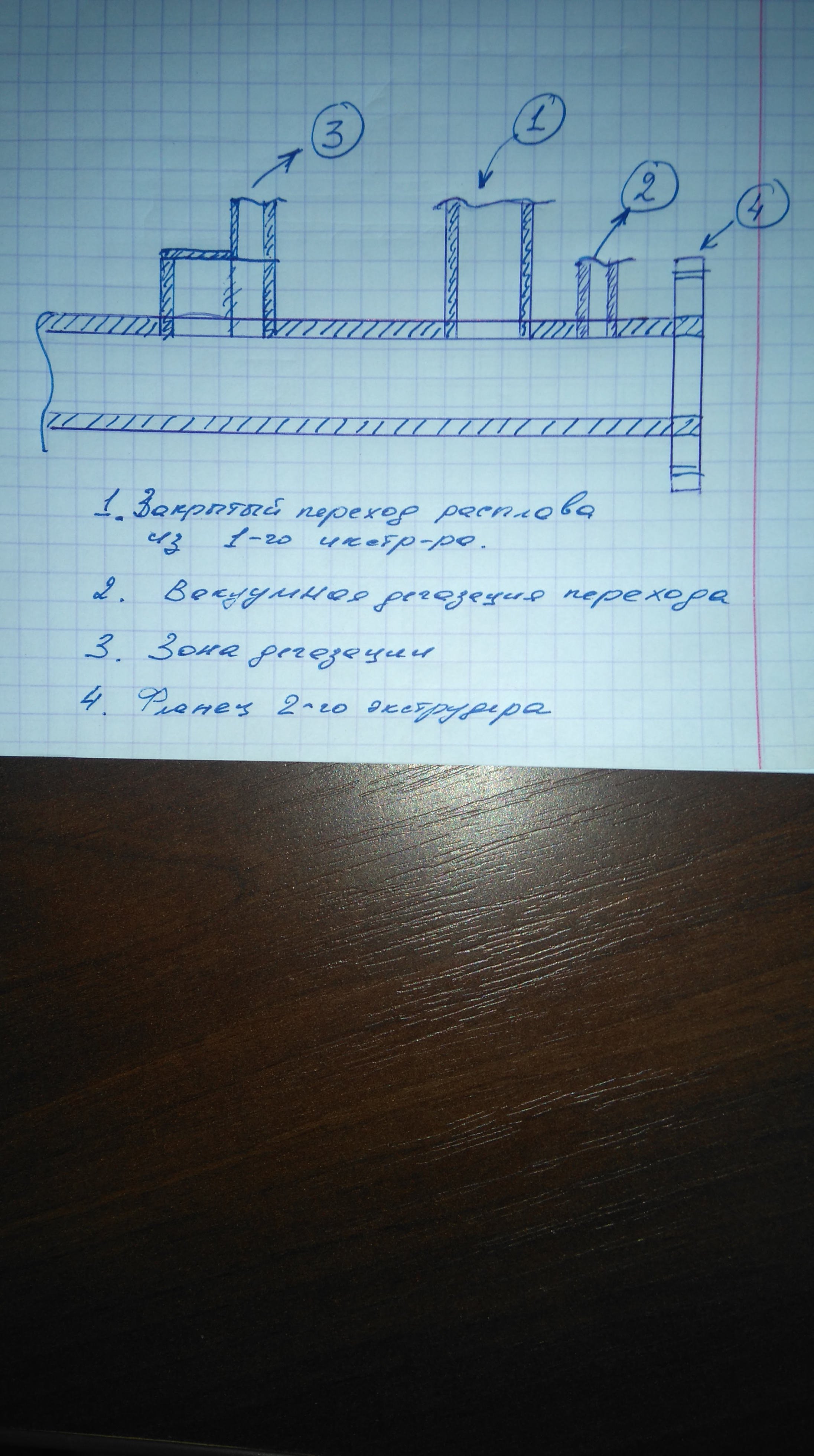 Пытаюсь определиться со схемой второго экструдера двухкаскадника с вакуумной дегазацией. Хочется услышать мнение касательно приложенного рисунка)))