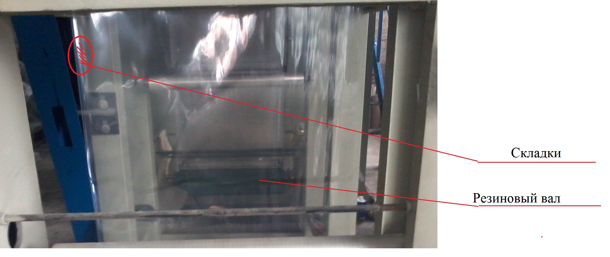 Добрый день, В узле первичного прижима пленки обнаружили возможную ошибку, (рис.1) там по нашему мнению были не правильно установлены валы. Ведущий вал был установлен позади прижимного тем самым он как бы не вытягивал пленку, а проталкивал ее под прижимной, на рисунке указанно так как мы их сейчас установили, верно ли? Так же есть еще один вопрос рис.2 там на щеках перед первичным прижимом отсутствуют отверстия для отвода воды, хотим просверлить, точнее уже начали, верно ли мы поступаем?