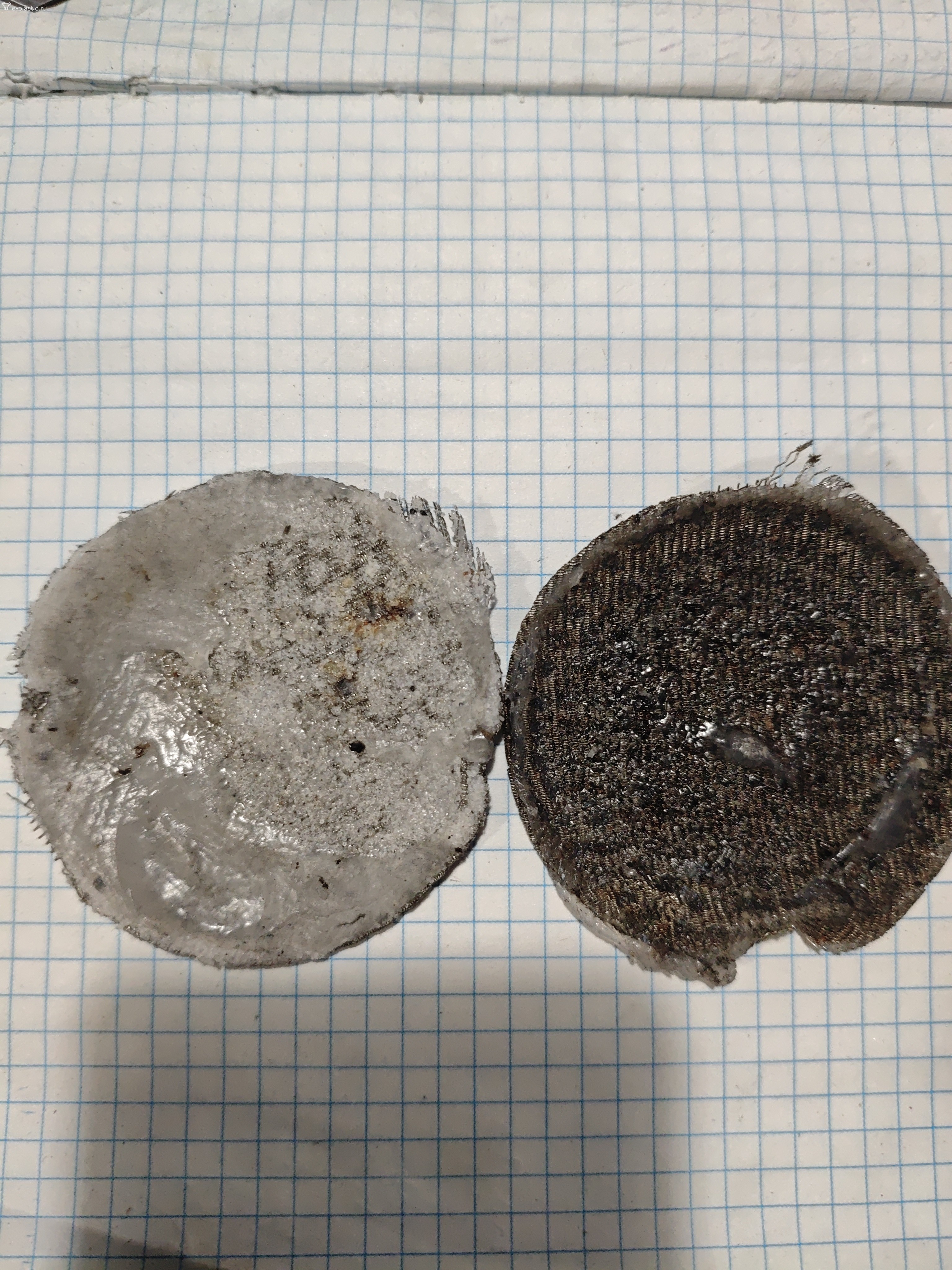 И сного Доброго Времени суток, 1 Экструдер работает ведь на таких же параметрах, а второй никак,но сейчас дело в другом, всё те же Гелики, только помогите найти истину в этом фото, справа фильтр нормальный, ну обычный, а слева какой-то непонятный, из-за чего это может быть, температуры маленькие?