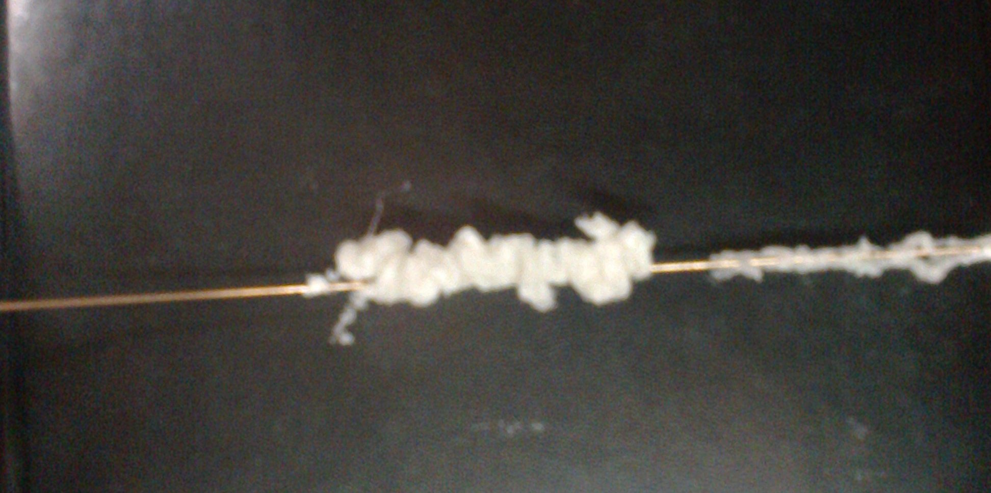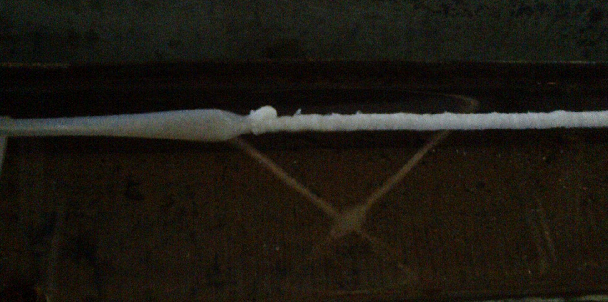- после того, как вышел расплав, который находится в головке после компрессионной сетки, резкий переход на сухой расплав - фото 2 - наложение на провод