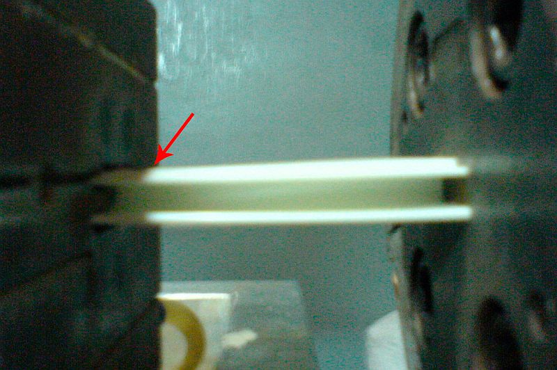 Насамом деле он не так важен то что искажение багета идет, дело в том что выходя из головы он как бы расширен и когда он в "вафельницу" заходит - там он приобретает свою форму остывая в воде... но этой выпуклости кудато деваться нужно и она вдавливается в бока, из-за этого получается волнистая кромка. Чтоб более понятно было, на фото срелка показывает направление куда заходит:
