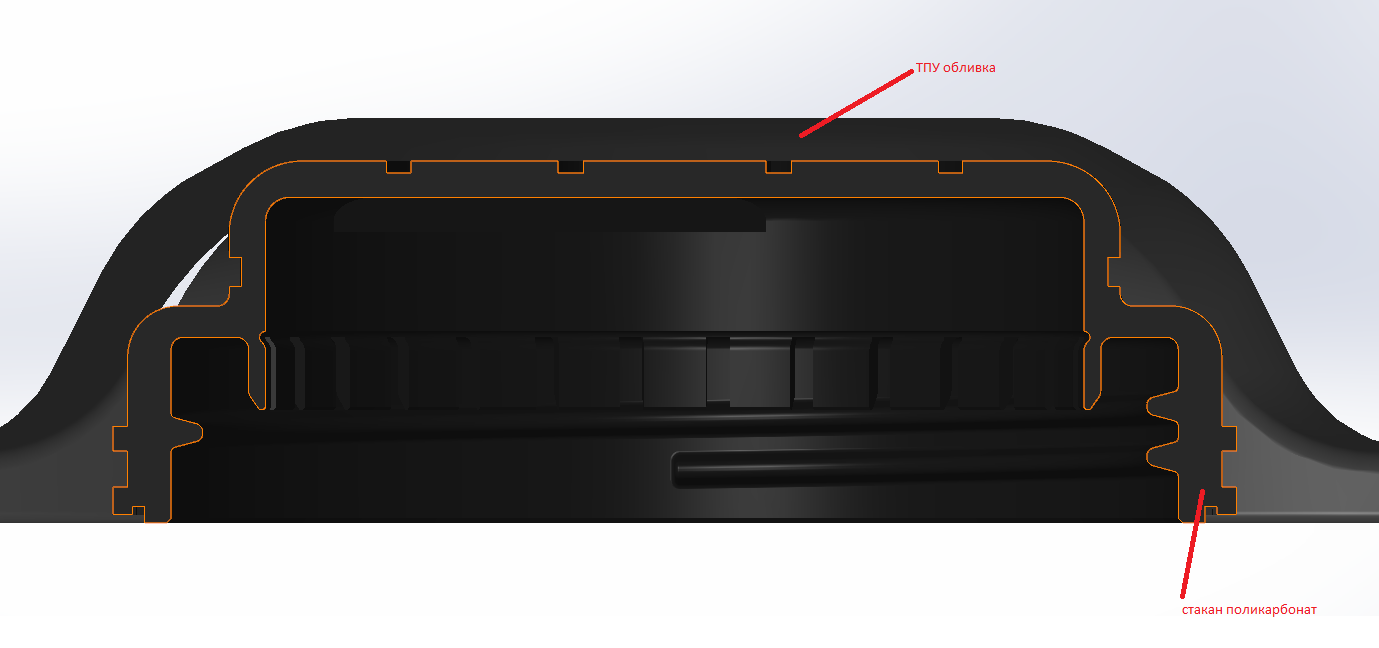 Добрый день. Изготавливаем изделие, которое состоит из двух частей, стакана, который отливается из поликарбоната, а поверх обливается полиуретаном (жесткость по Шору 92A)/ Получается такой себе браслет. Есть две проблемы: