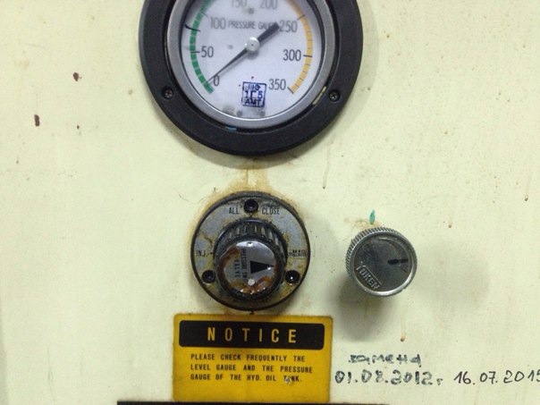 пробовал метод включаю насос на манометре (В) всегда показывает 10-13 бар переключаю манометр на (С) чуть больше нуля может 3-5 бар ( единицы измерения на манометре по 10 бар) подвел впрыск в упор манометр (В) выкрутил 1Р4 как было 10-13 так и есть манометр на (С) жму принудительно на 5Н2 и закручиваю винт 1Р4 как было 3-5 так и осталось менялось только если ставил манометр на (В) и включал загрузку 100 скорости выкрученный 1Р4 10-13 закручиваю 1Р4 давление поднимается поднял давление 40-45 а дальше методом тыка выталкиватель вперед назад и подкручивал чтоб рывки пропали Кстати пробовал как до этого говорили давление ставить по 10% только не сопло упер а впрыск в упор ставил короче поставил 0 на манометре без изменений 10-13 как и при включении насоса поставил 10 тоже самое без изменений доже стрелка не колыхнулась 10-13 поставил 20 на манометре 20 50=50 140=140 Еще пробовал что при выкрученном что при завернутом 1Р4 жал принудительно 1Н4 давление 140