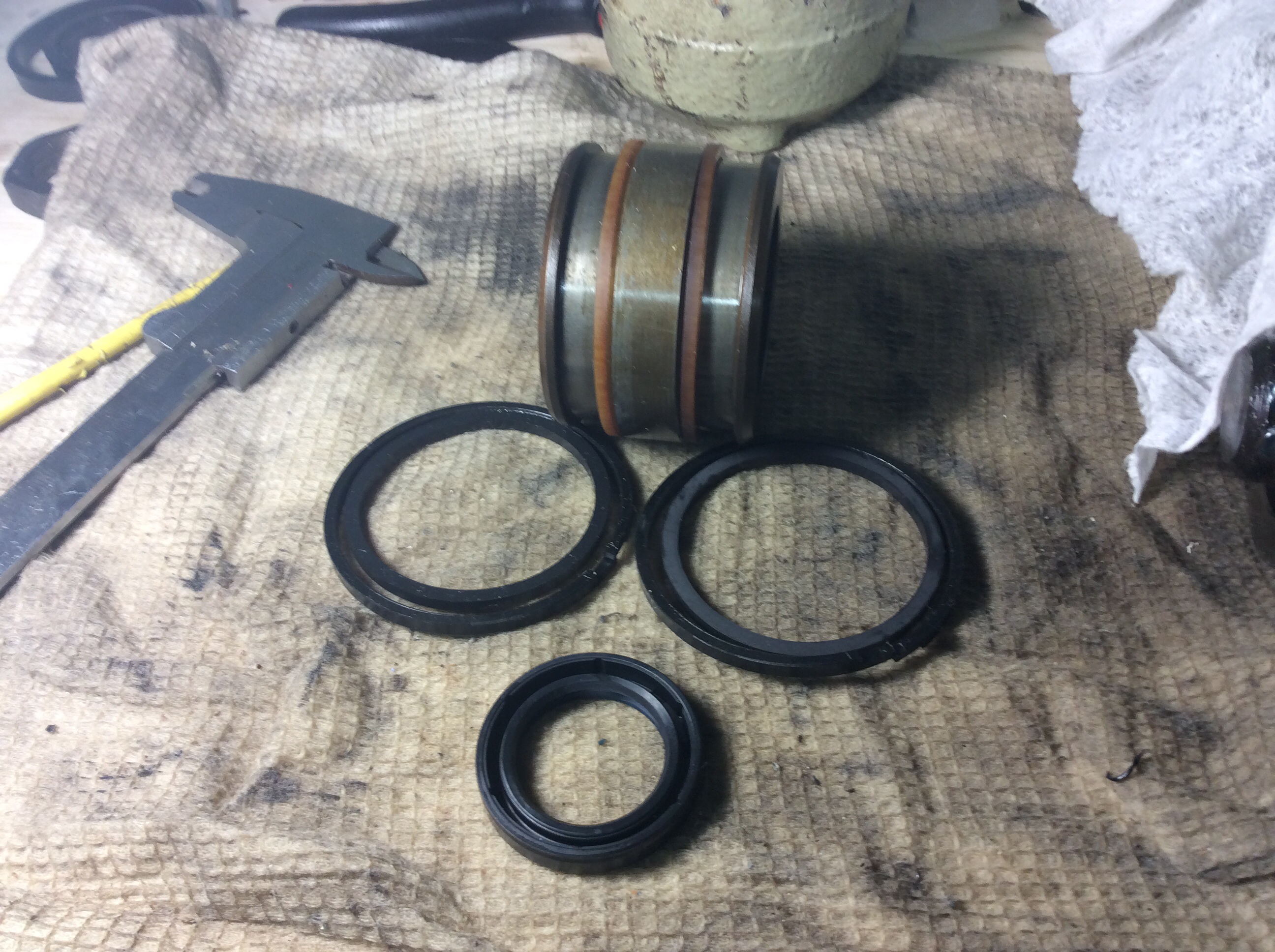 Если оставить опорные кольца, остается 8,5 мм. Влезает как раз 2 манжеты по 4,2 мм шириной. Там вообще зазора не останется, а если останется, то воткну еще кольцо 1,5 мм шириной.