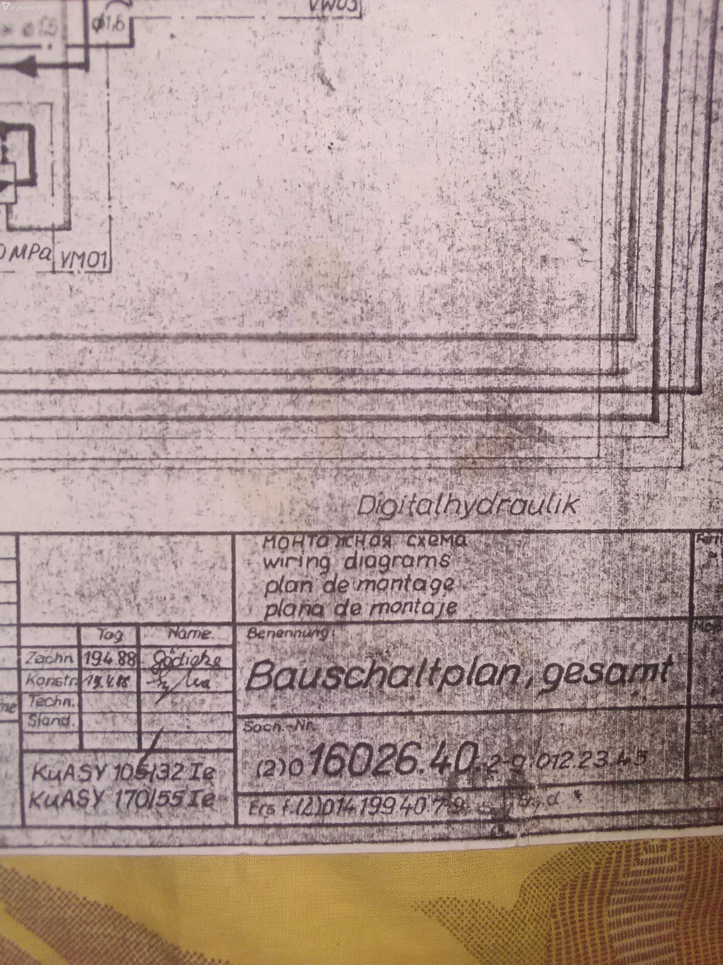 И все таки разночтение присутствует. Редукционный клапан на толкатель стоит на двух моделях. Просто на одной он регулирует высокое давление только вперед. А назад по Y26 , а на другой модели редукционный регулирует и вперед и назад. То есть, поставили давление 100 , оно работает и вперед и назад. Второй аргумент. Если сзади на среднем распределителе магнитом вниз установлен на шильдике 574 схема. Это машина Куаси 170/55 Ie. Если стоит 44 схема то это Y 351/2. А распределитель Y26 напрочь отсутствует. Вот и вся разница. Отмыть шильдики осторожно и дать фото.!!!!!!!! попрошу. И плитки под ним с VD 02 быть не должно. Иначе так и будем всех в заблуждение вводить. В подтверждение своих слов высылаю куски схемы близнеца двойнявого. Может это твой вариант. А то что до этого грузили НЕТ. Схемы лучше нет.