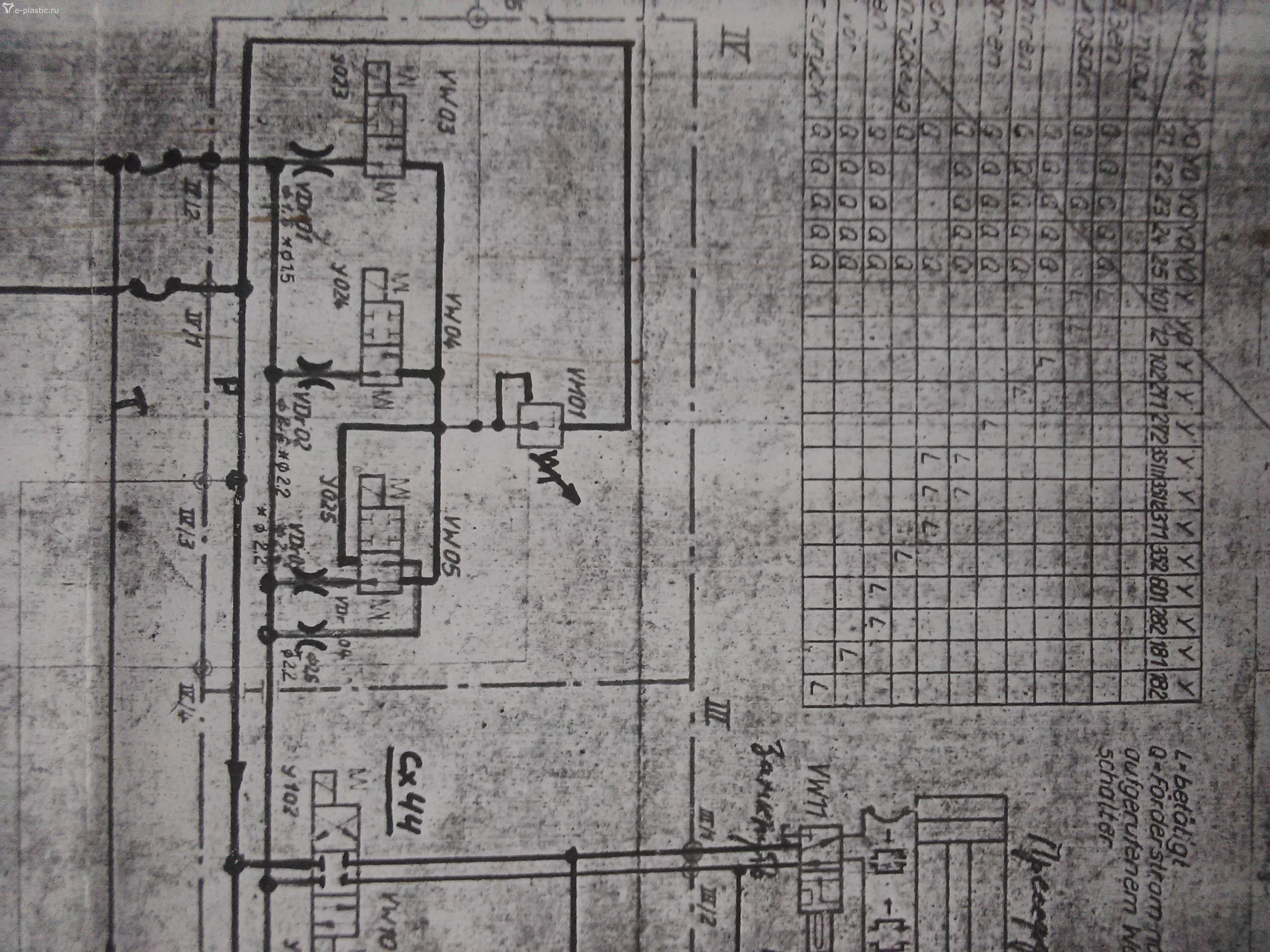 Поправка: Y26 не включён в трёх моментах. 1) Сопло назад. 2) Шнек назад 3) Толкатель назад. Тогда давление системы от0 - 50 три. А я сказал выше о двух моментах Вот что значит не глянуть в циклограмму. В твоём случае схема и циклограмма в бумажном варианте должна быть рядом. Можно подписать пометки сделать. А ещё лучше распечатать на формат побольше. Фламастерами все сливы синим. Напорные линии красным. Управление жёлтым зелёным. Намного легче станет. А с телефоном это гимор.