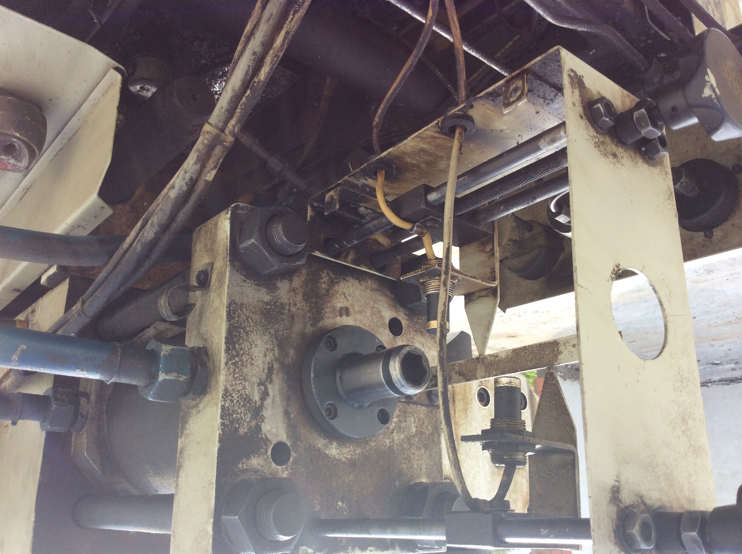 4) Открутить левую верхнюю крышку редуктора. Винт на торце штока цилиндра (где конечники положения впрыска) соединяет шнек и гидроцилиндр;