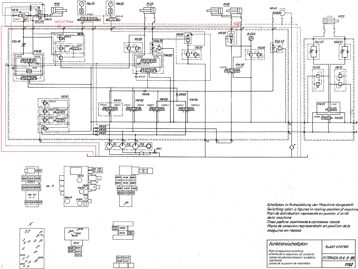 Дмитрий О писал(а):вот еще идея, но сообразить не могу, давайте коллективно- отличие 410(на чертеже к нему 2 резинки и там и там) от 400 в наличие у 400го клапана v030(при открытой прессформе печь не сдвинется),как раз такой же стоит на 105,170( одна резинка и 2)даю 2 схемы 410 и 400( это схема именно моего станка(качать ее не надо), поэтому некоторых узлов нет, но нам они не важны), может в этом дело.