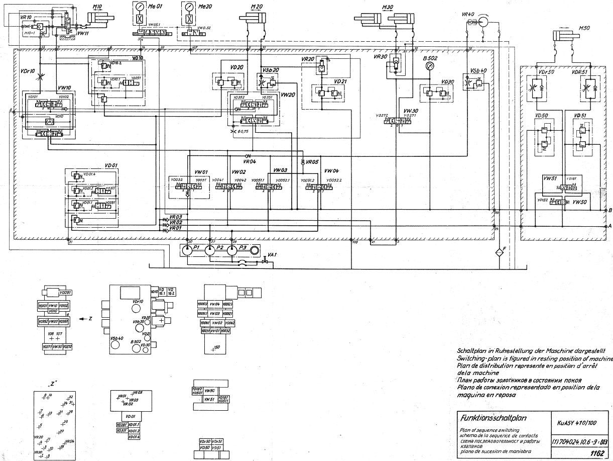 зюм спасибо большое, что откликнулись на мою проблему.Начну с начало как и , что у меня обстоит, достались мне в наследство от старого слесаря 2 400ки( док. часть, очень интересует страницы с клапанами, дросселями и спецификация на них(пружины,резина) , 3 хмельницких ,105 32 sr(док вообще нет, ну по гидросхеме скаченной здесь разобрался) и напрочь убитый 170\55.(небольшая часть док.) По 400кам , на обоих стоят двух поточные БГшки по 35 литра на поток, много из гидравлики выброшено,убран клапан vr3 т.к нет 3го насоса, я сделал действующию сейчас схему ее и прилагаю. так же прилагаю схему 410(отличие в отсутствие vo 30 и распрелителя толкателя, как я понимаю), кстати забыл про vr10 вот еще один выплыл))),но меня он особо не интересует, за его отсутствием)))(на 170 у меня 4 клапана такого типа -2на насосы с эл упр., один на набор( большой, тоже с эл упр. ) и еще 1 на печь) Вопрос влияет ли отсутствие дросселя 0.75, того, что на vw20,сейчас стоит просто штуцер около 5 мм d( на данный момент он заглушен так как установлено эл. управление). Завтра сфотаю все клапана ,выложу.Разбираться так разбираться, не думаю , что я последний по этому вопросу. и все таки вопрос по обозначению пружин из первого поста я правильно понимаю или нет( проблема в том ,что ставили все , что под руку попадалось.)???