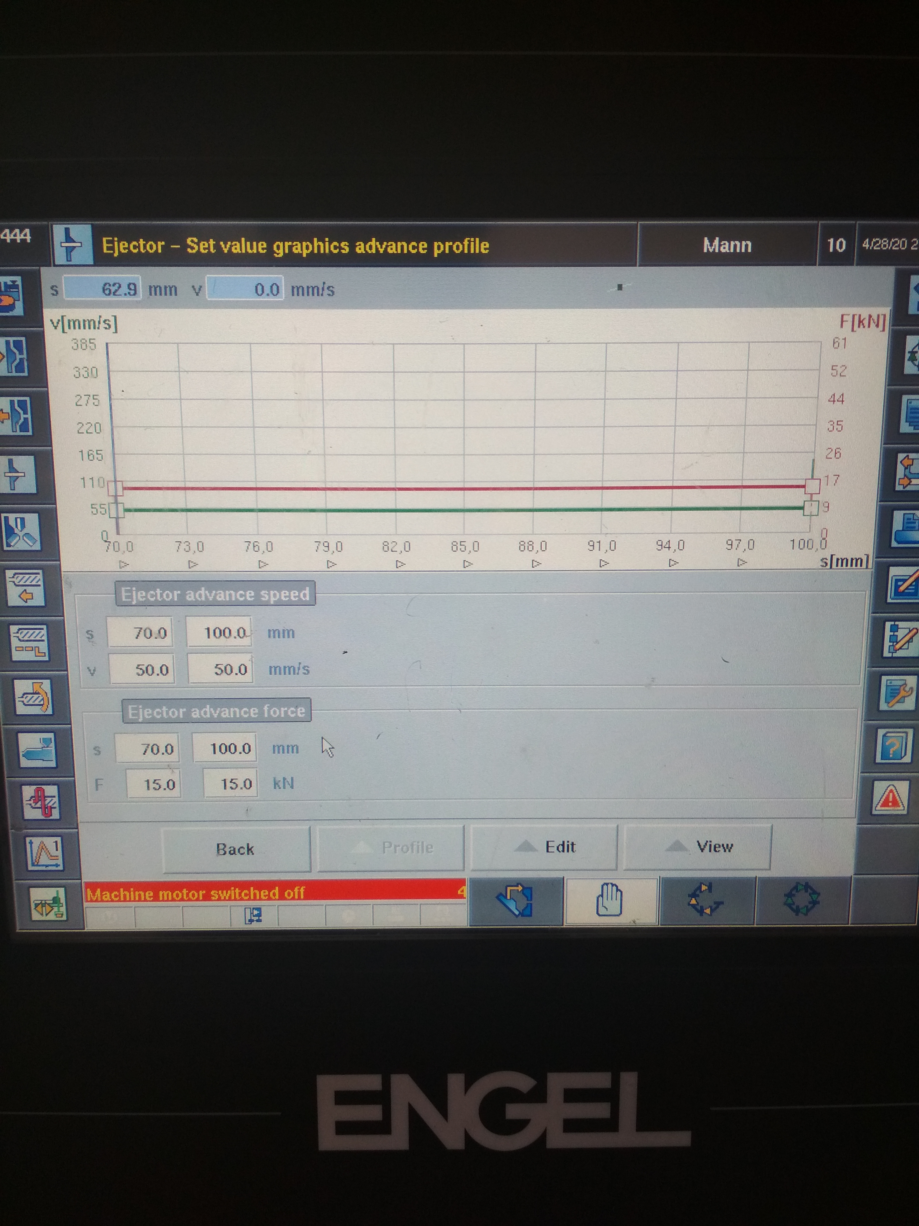 Поставил 1ю скорость и усилие, а позиция "форма открыта" S44 почему нулевая? Куда ехать? Вверху ошибка как раз на этот параметр указывает. Поставь хотя 100 мм. Должна мееедленно открываться до 100. Можно прибавить 1 скорости. 10 это уж совсем минимум.