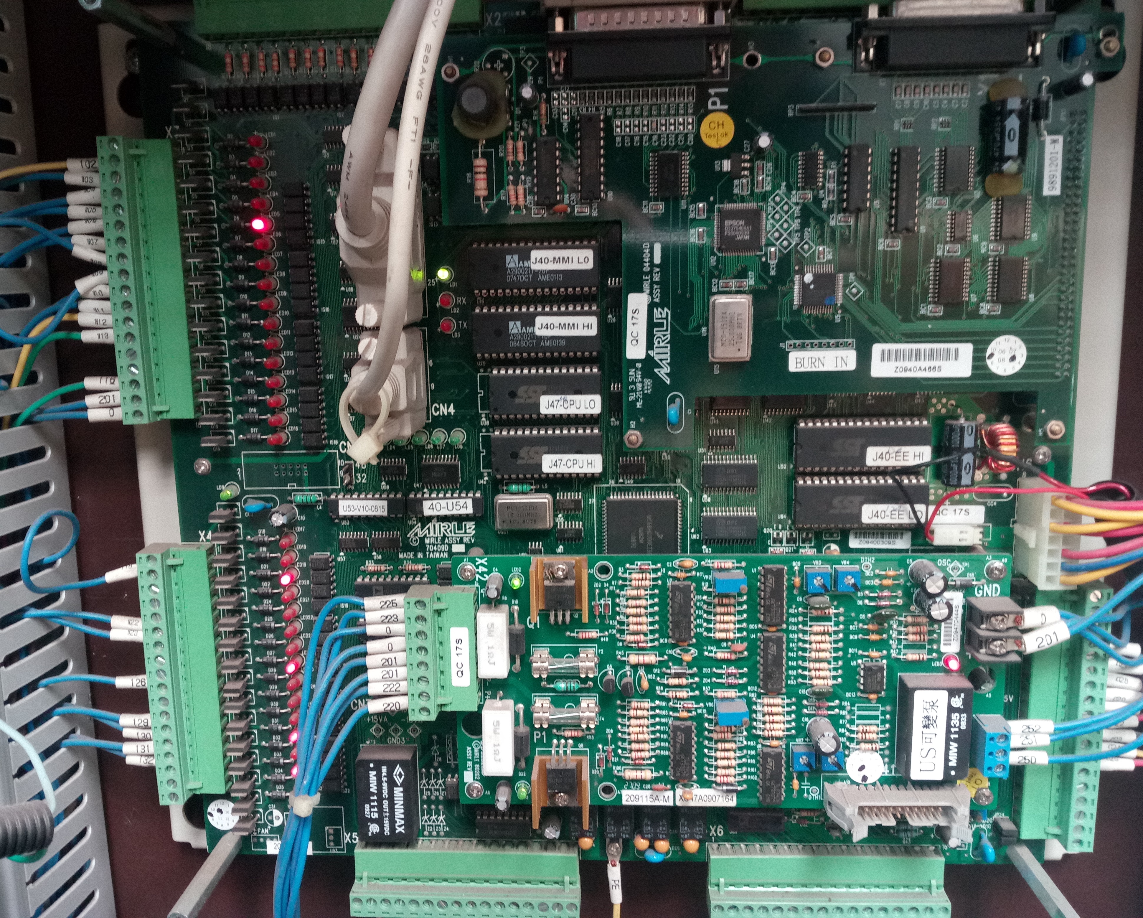 Спасибо за качественные фотки. Похоже на архитектуру контроллеров питерской фирмы "Балтика" с их семейством NC200. Примитивный ПК с самозапускающимися прикладными приложениями. Дёшево и сердито. Здесь даже аналоговый блок пришпандорили на мать, под которой, вероятно, и стандартный БИОС стоит (есть ли батарейка 3-х вольтовая?).
