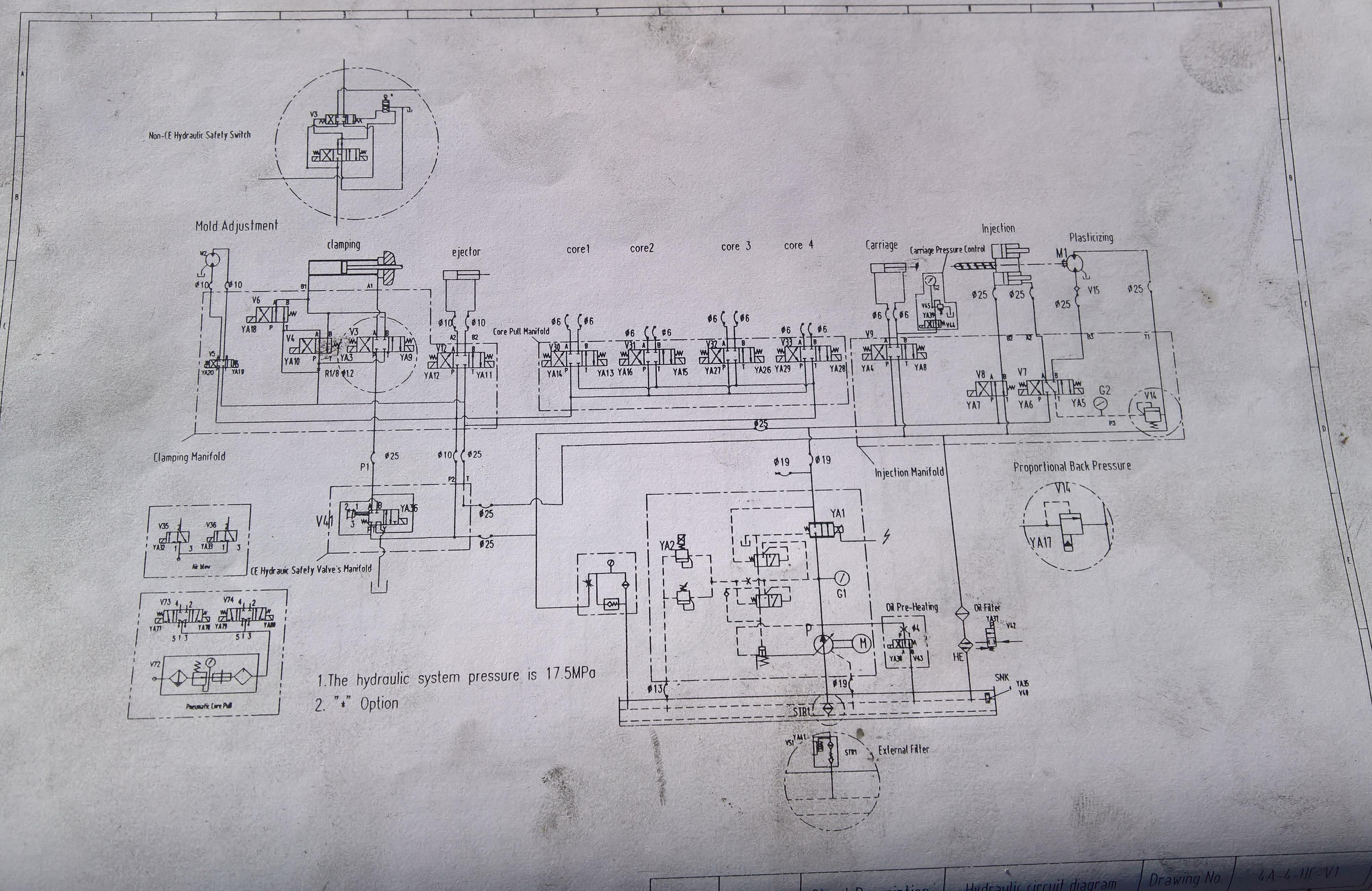 Разбираюсь с гидросхемой на ТПА Chen De EM-180V и не могу понять в чем смысл установки на гидроблок запирания магнитов YA18, YA10. На запирании можно обойтись только YA3, скорость и давление задают пропорциональные клапана YA1, YA2. На раскрытии можно так же обойтись YA9 и пропорциональными клапанами. Через выключенный магнит YA10 осуществляется слив как при запирании так и при раскрытии. На плате что установлена в станке и управляет электромагнитами во время цикла только YA3 и YA9 включаются на запирании и раскрытии соответственно, может кратковременно включаются YA18 и YA10, но по светодиодам на плате я этого не увидел.