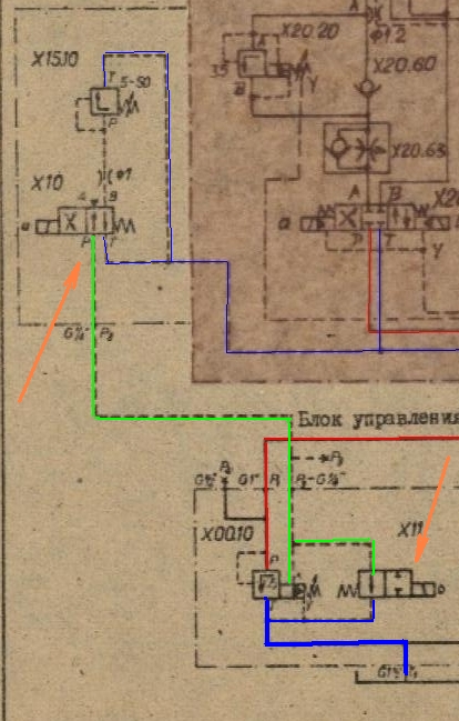 Схему гидравлики приложил, подскажите, пожалуйста, кто сталкивался с данной проблемой...