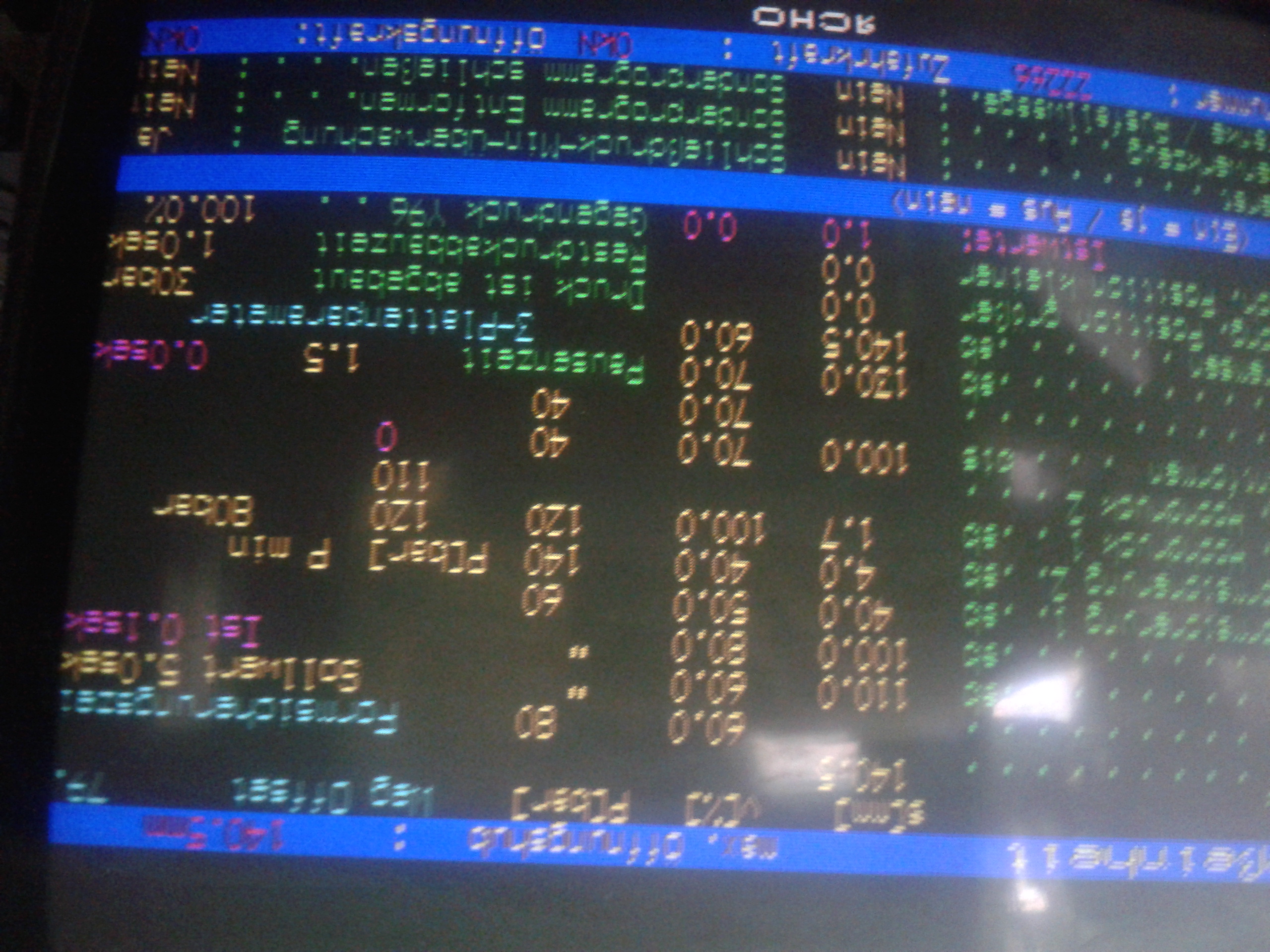 Надо проверить сервисные установки. Через 1403 войдите в сервис и там кажись вторым экраном будут сервисные установки. Даю свои. Проверьте. В правом столбце 4 строчки внизу - максимальные значения путей. Они равны длине соответствующих измерительных линейных резисторов. Длина в обозначении. Или измерьте сами. Остальное отличается не сильно. Перепишите.